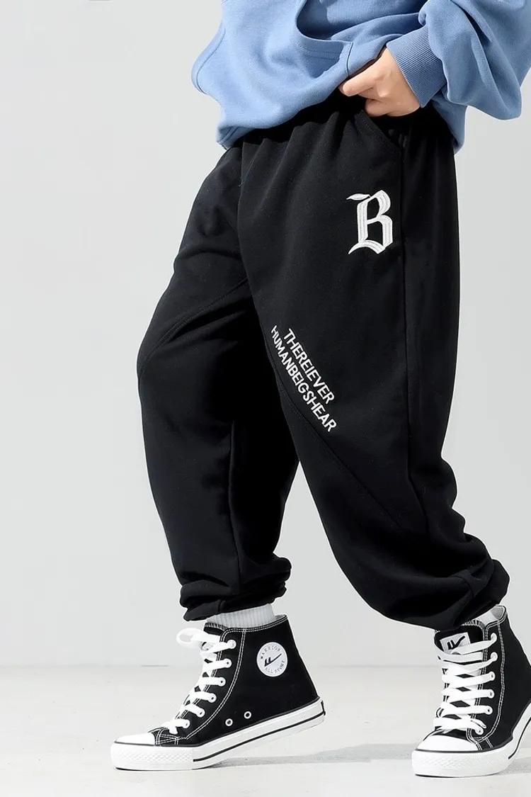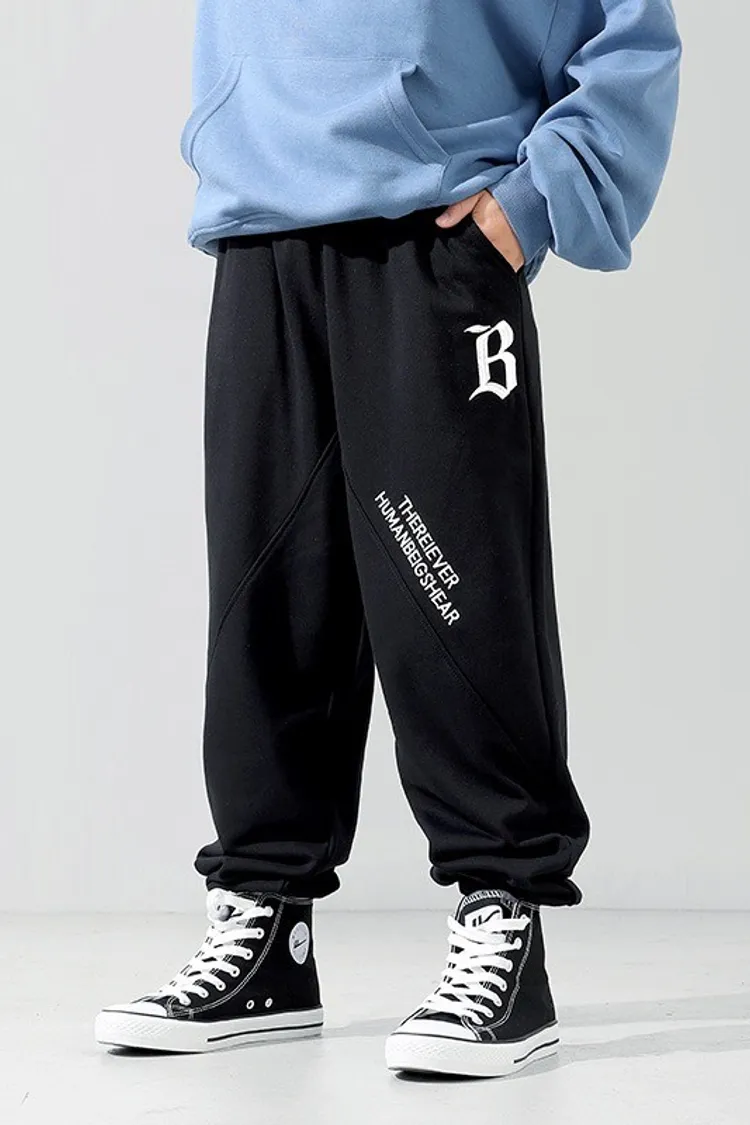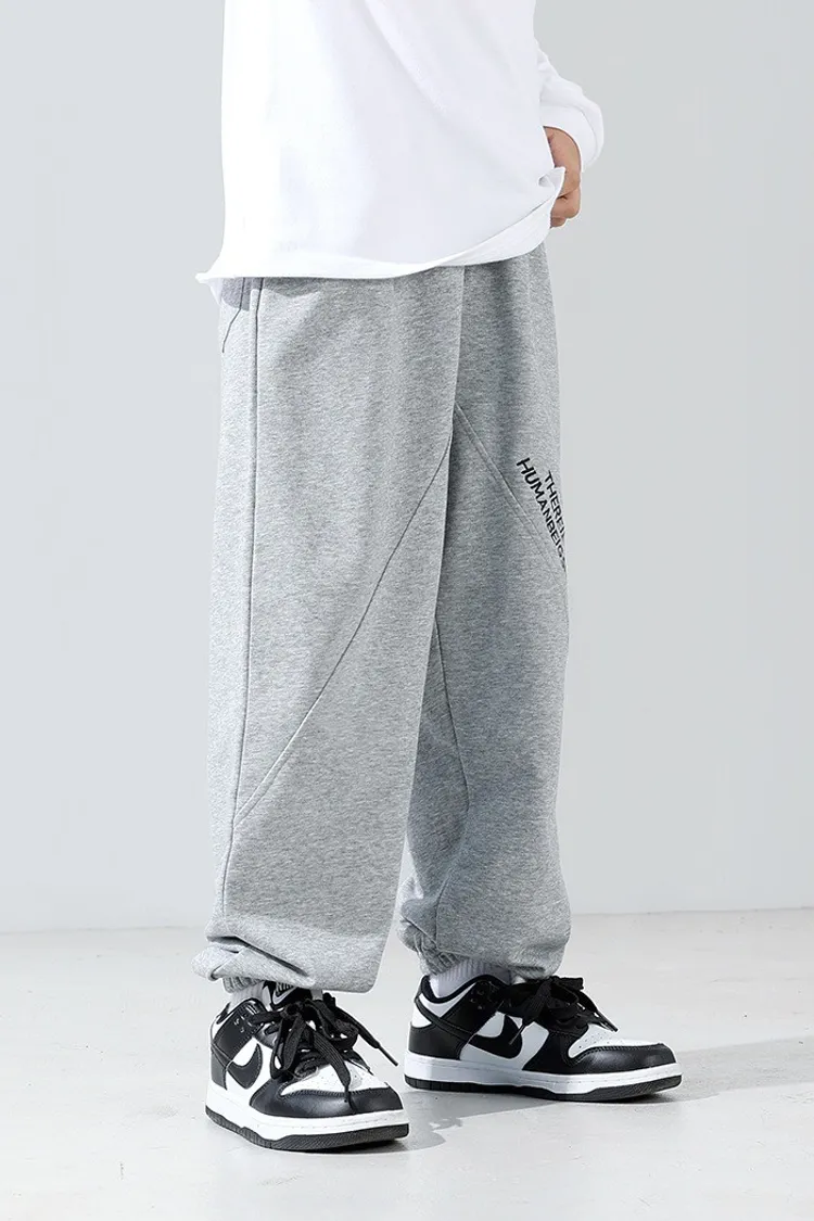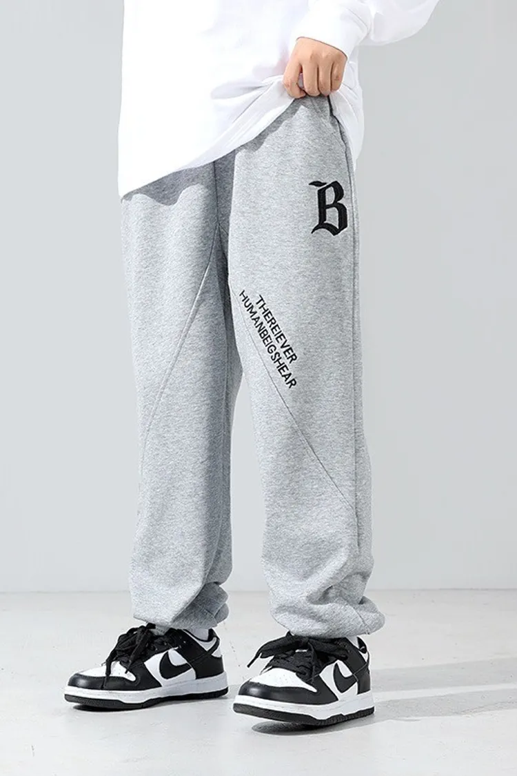 字母刺繡拼接剪裁運動褲