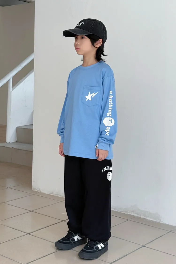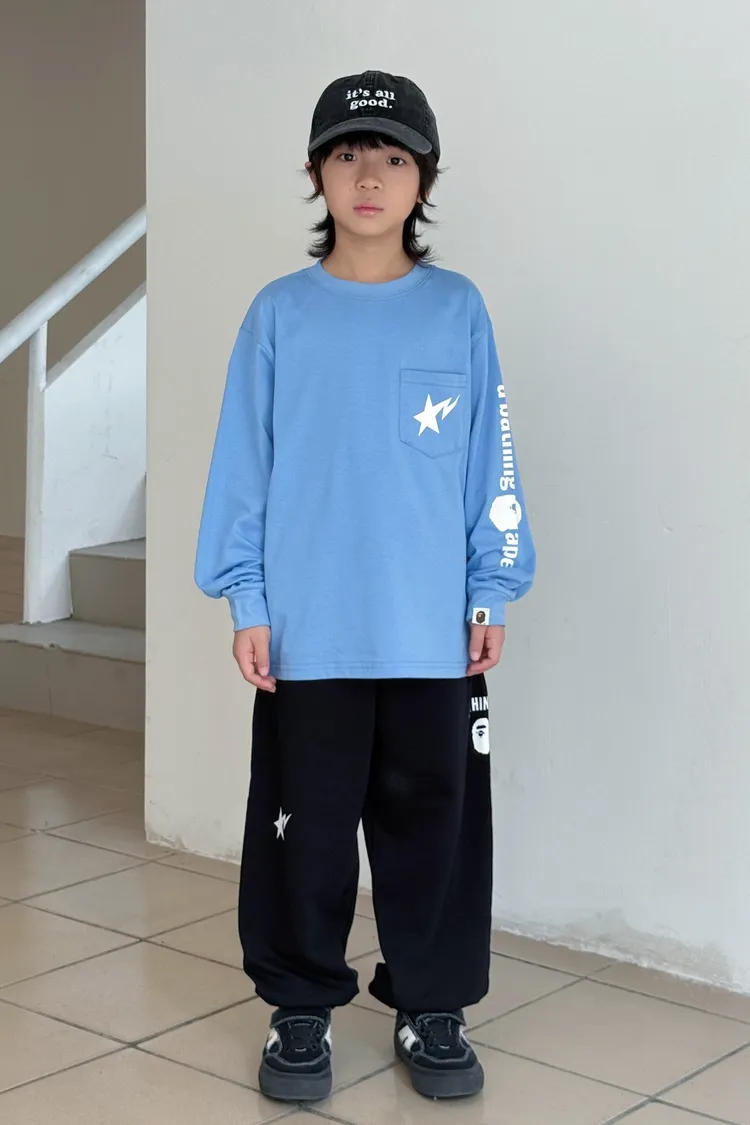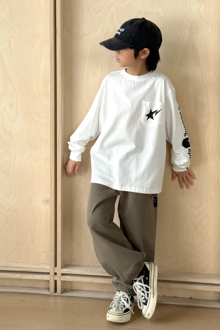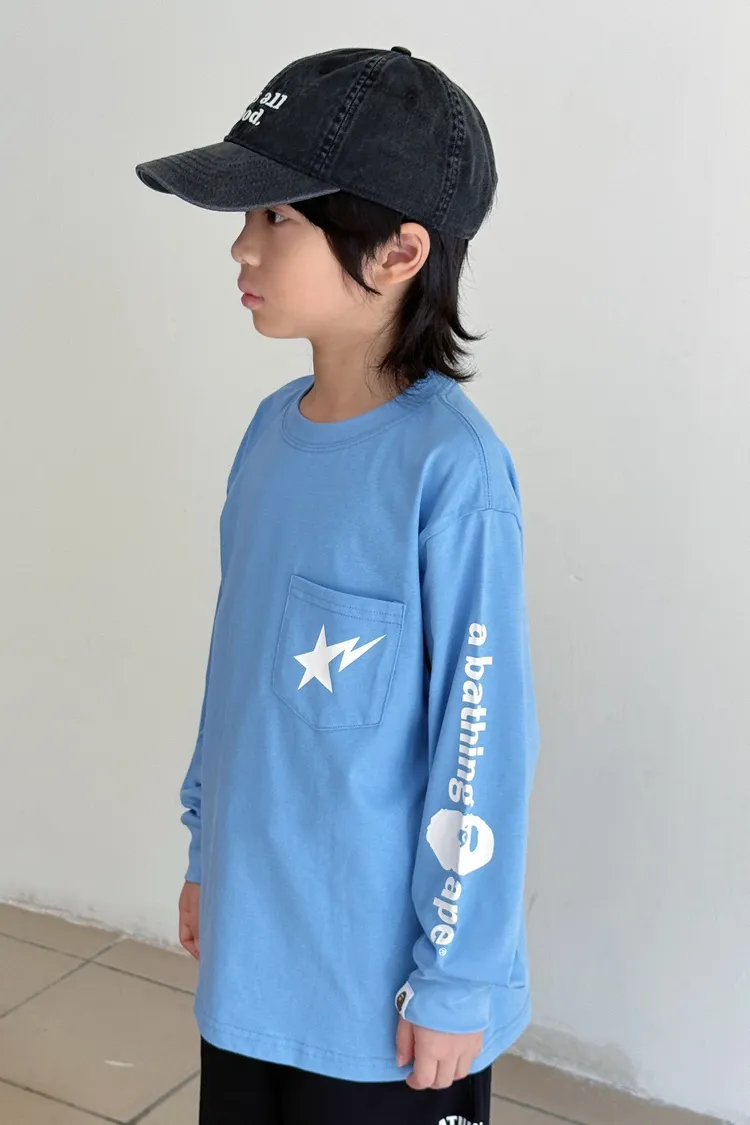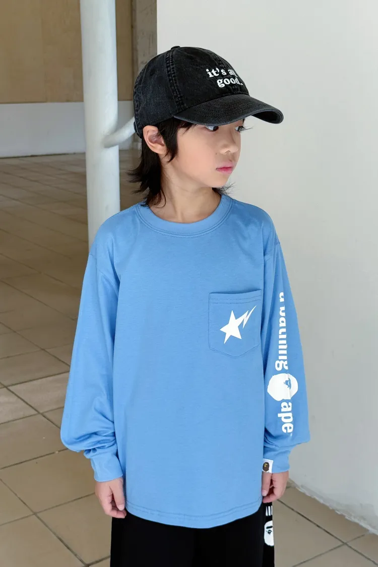 猿家口袋流星印花長袖TEE