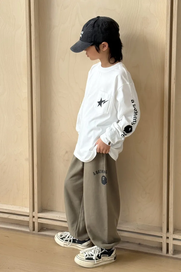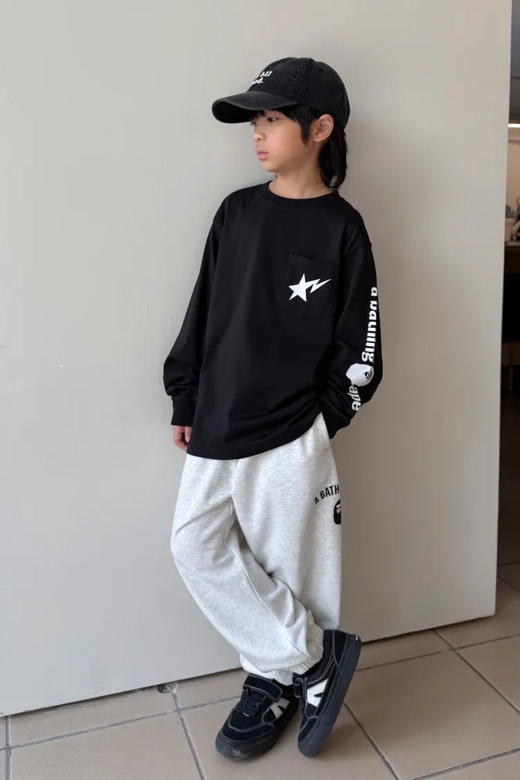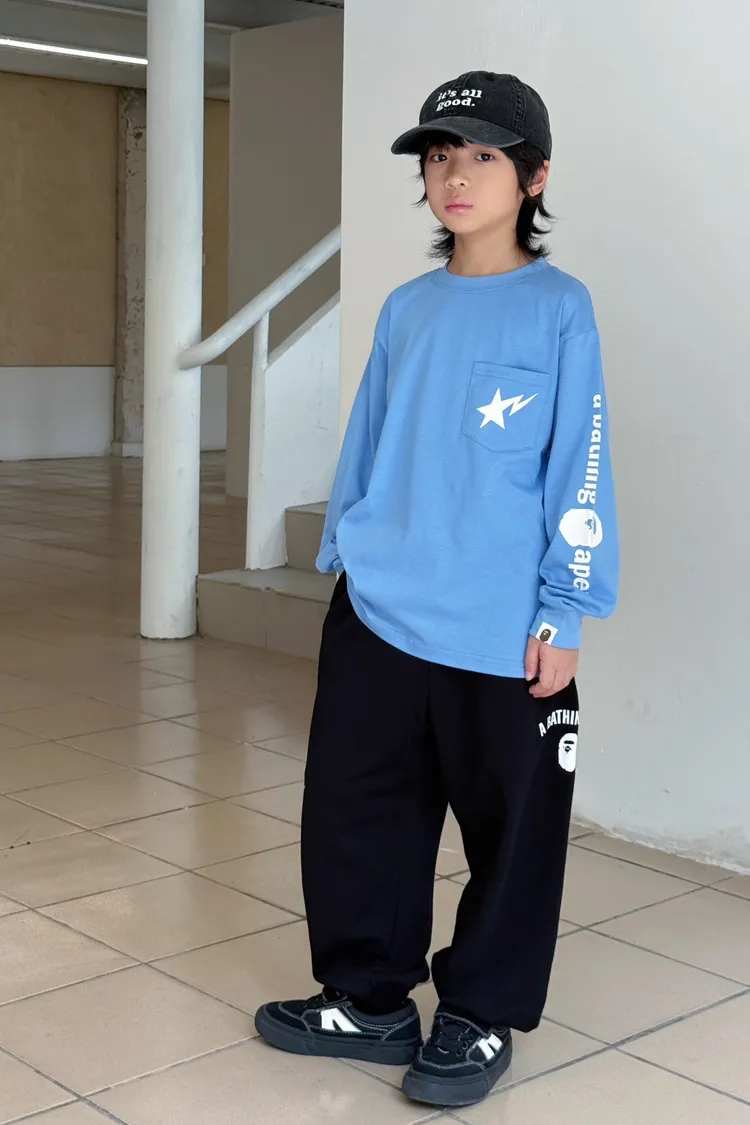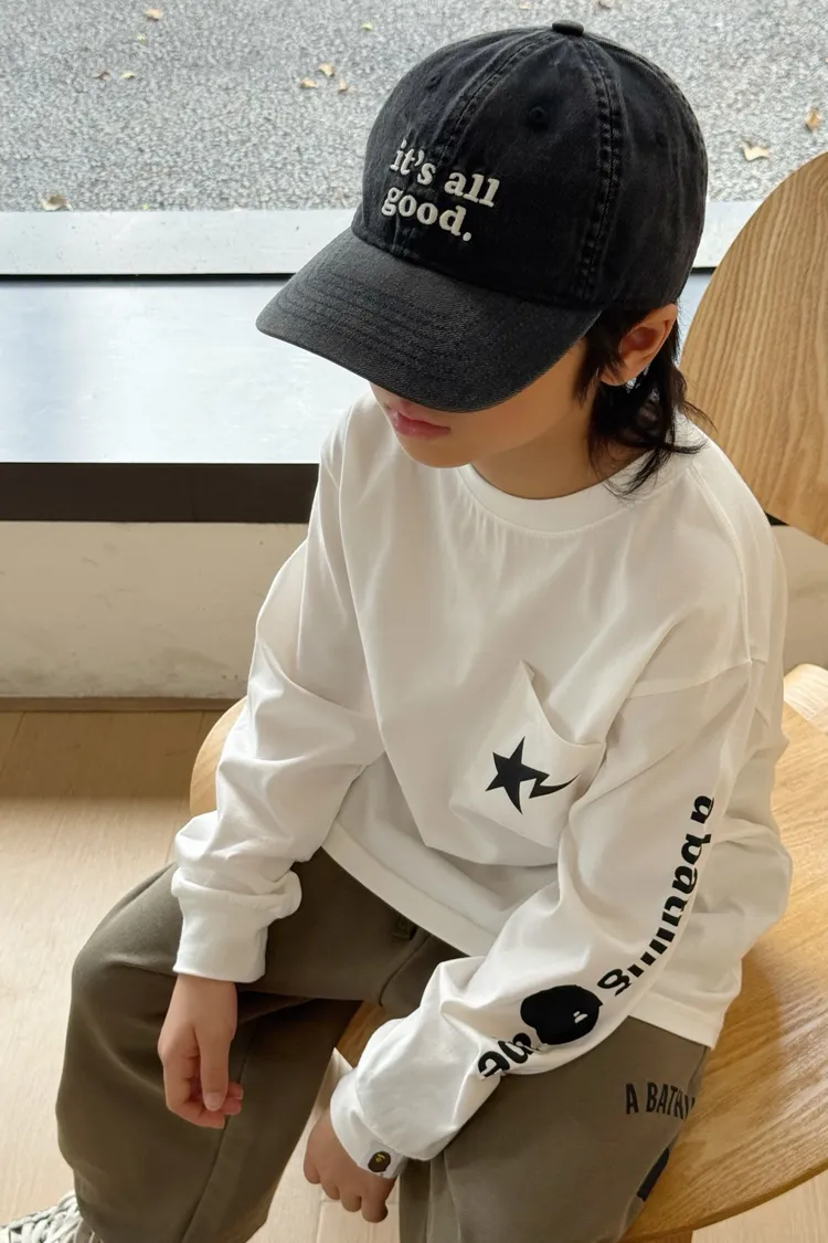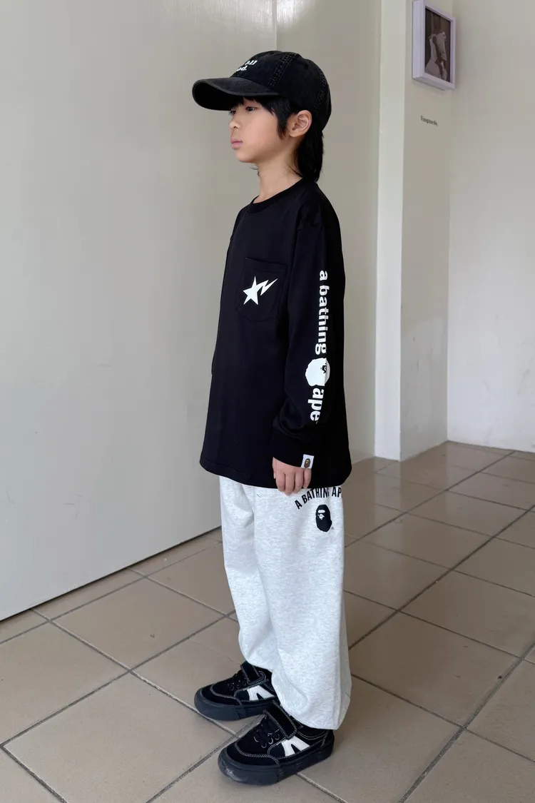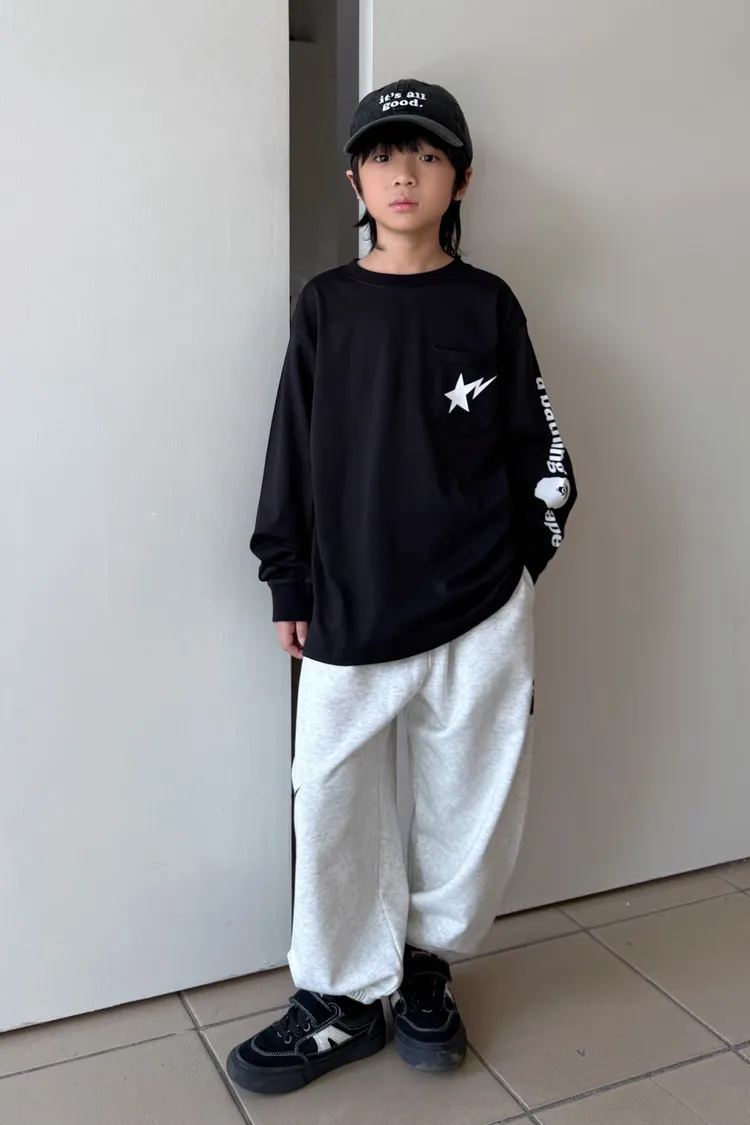 猿家口袋流星印花長袖TEE