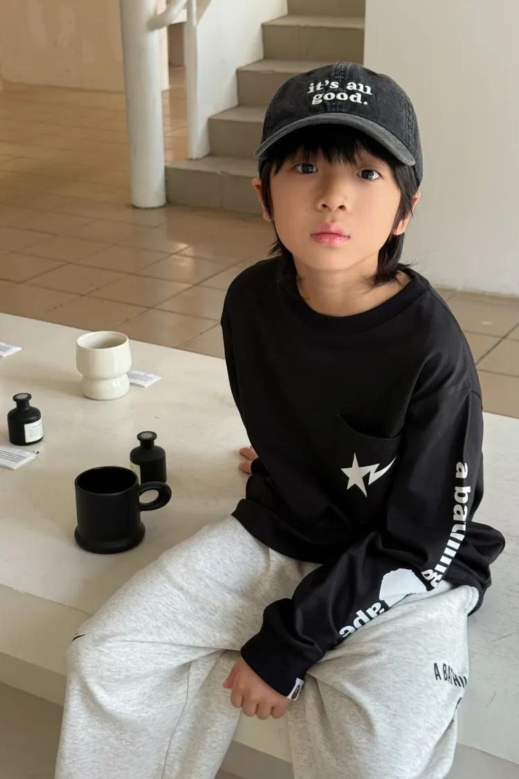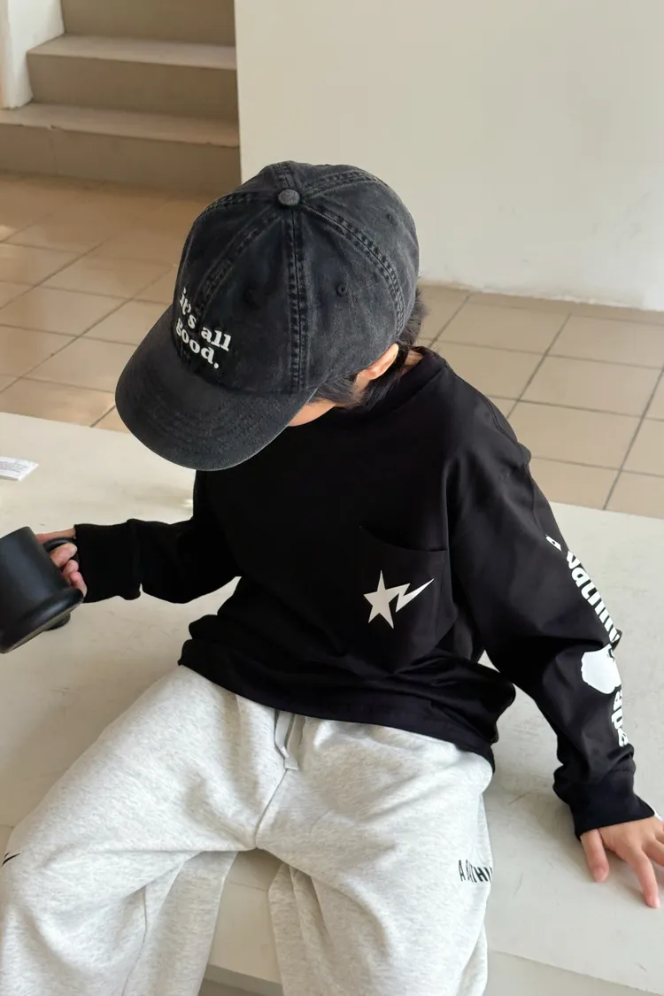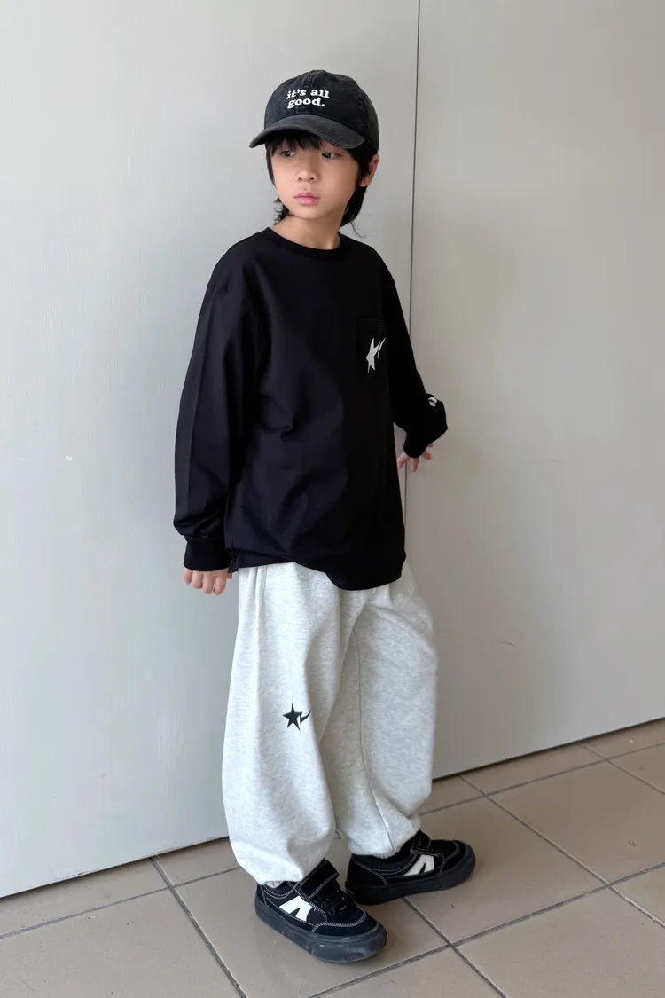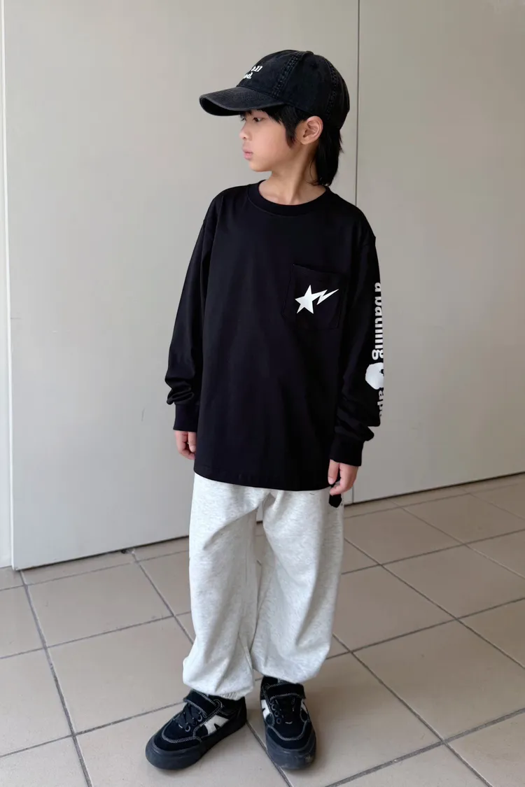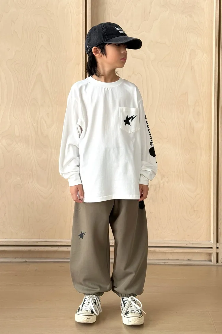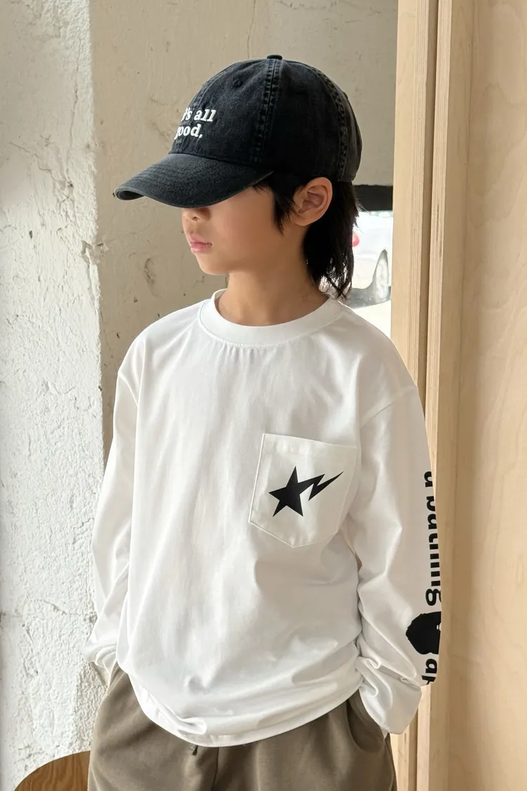 流星口袋印花長袖TEE