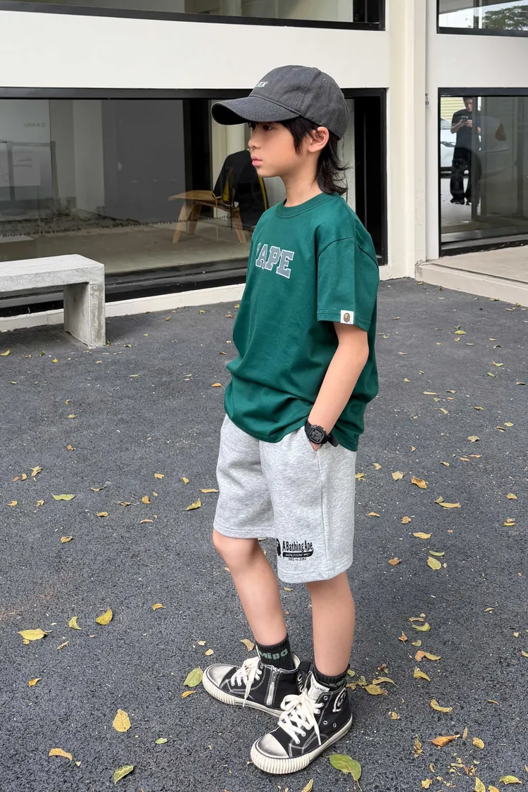 猿家後背大印花雙線短TEE