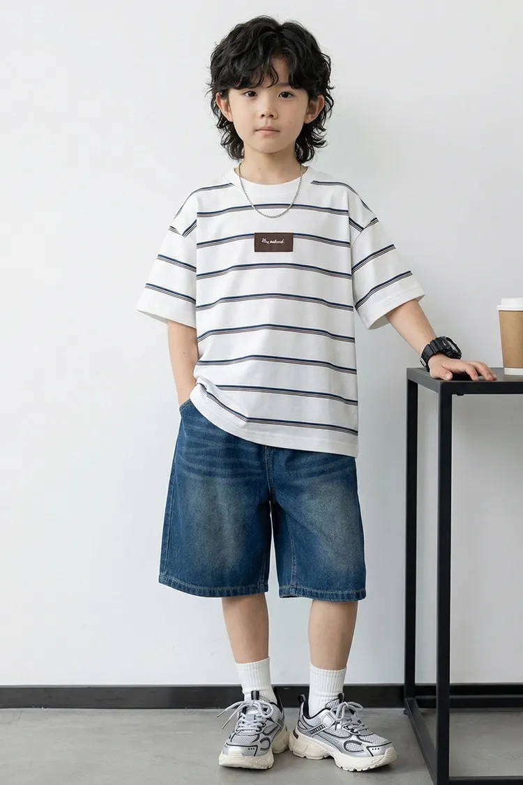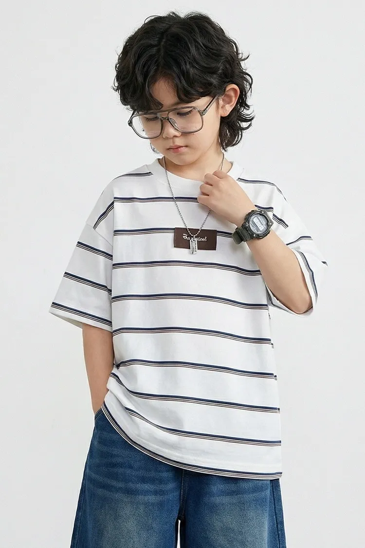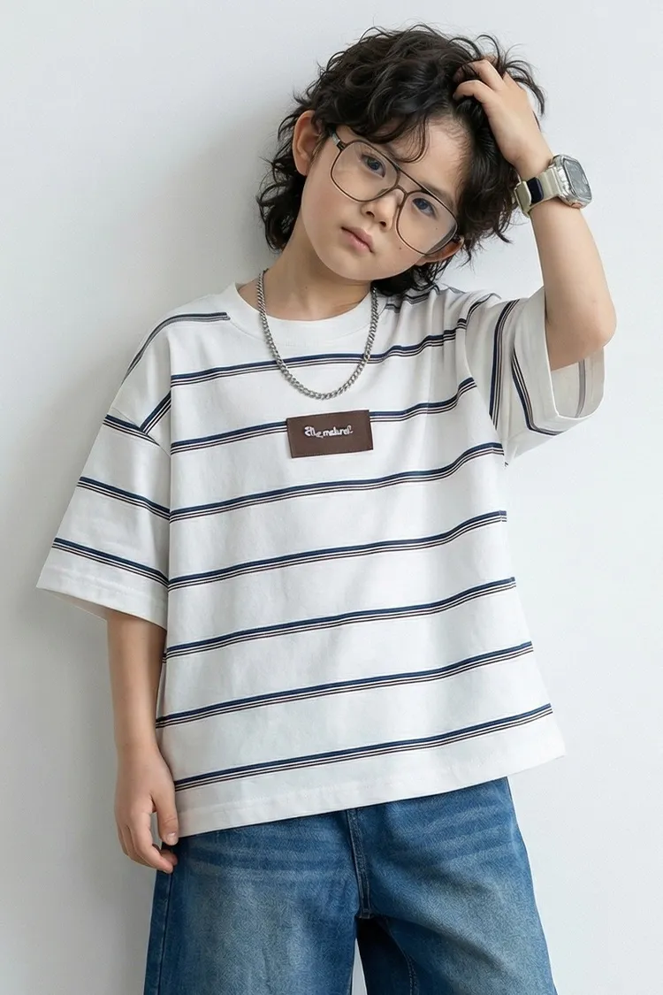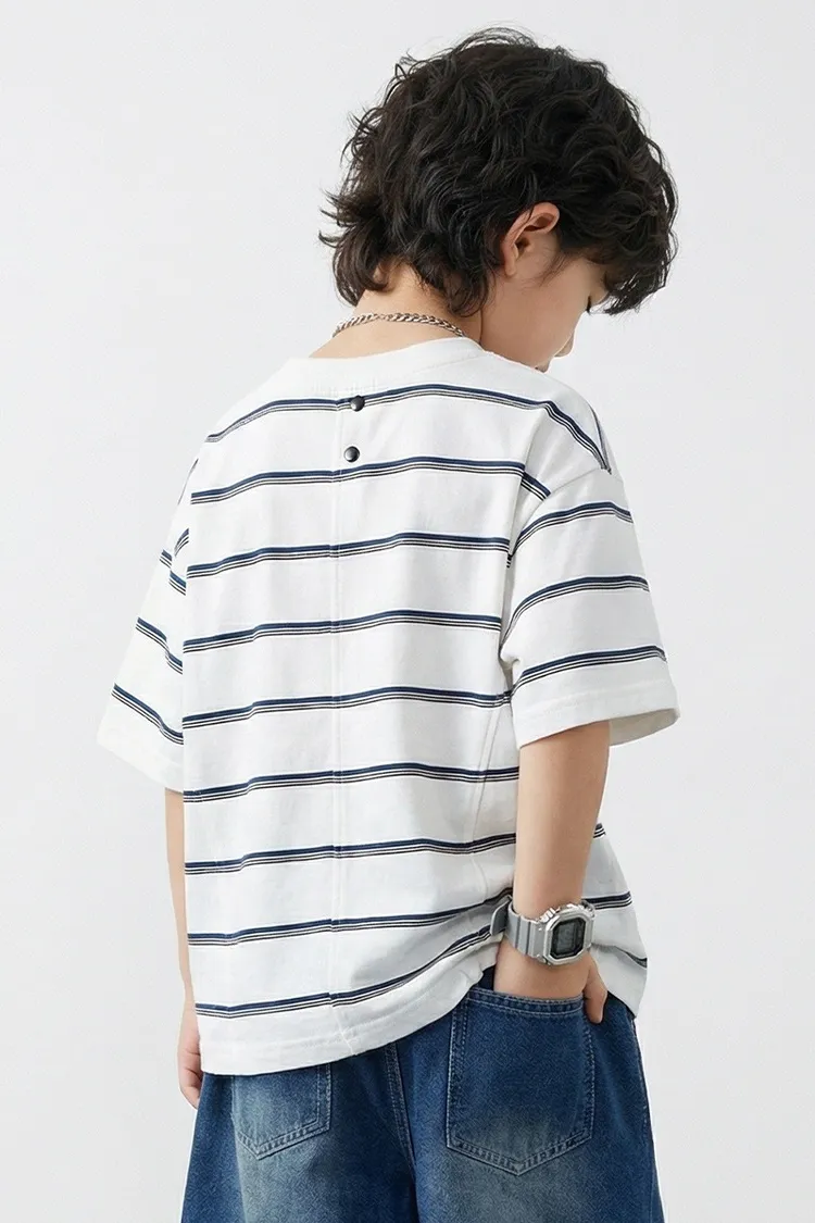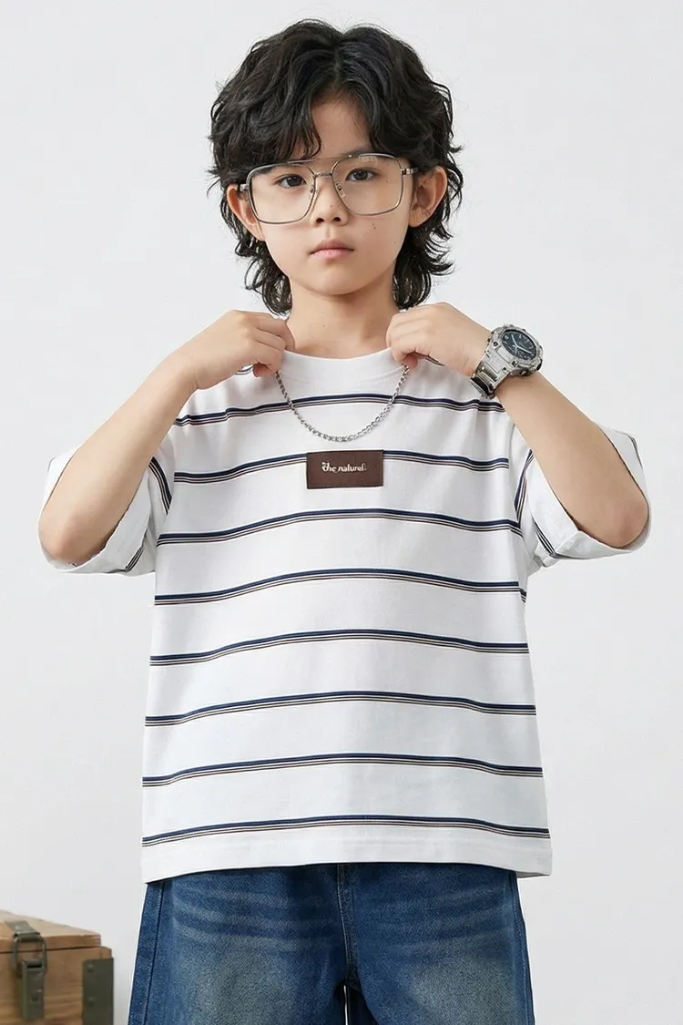 撞色細條紋簡約全棉TEE