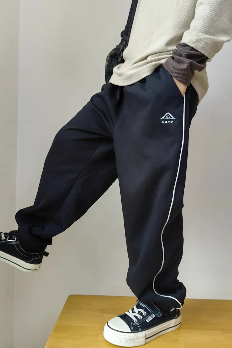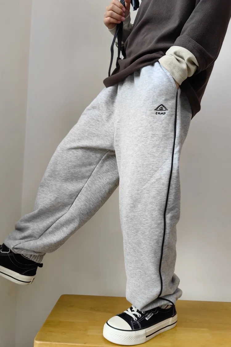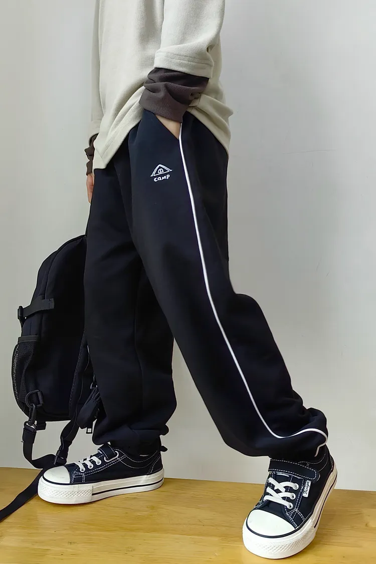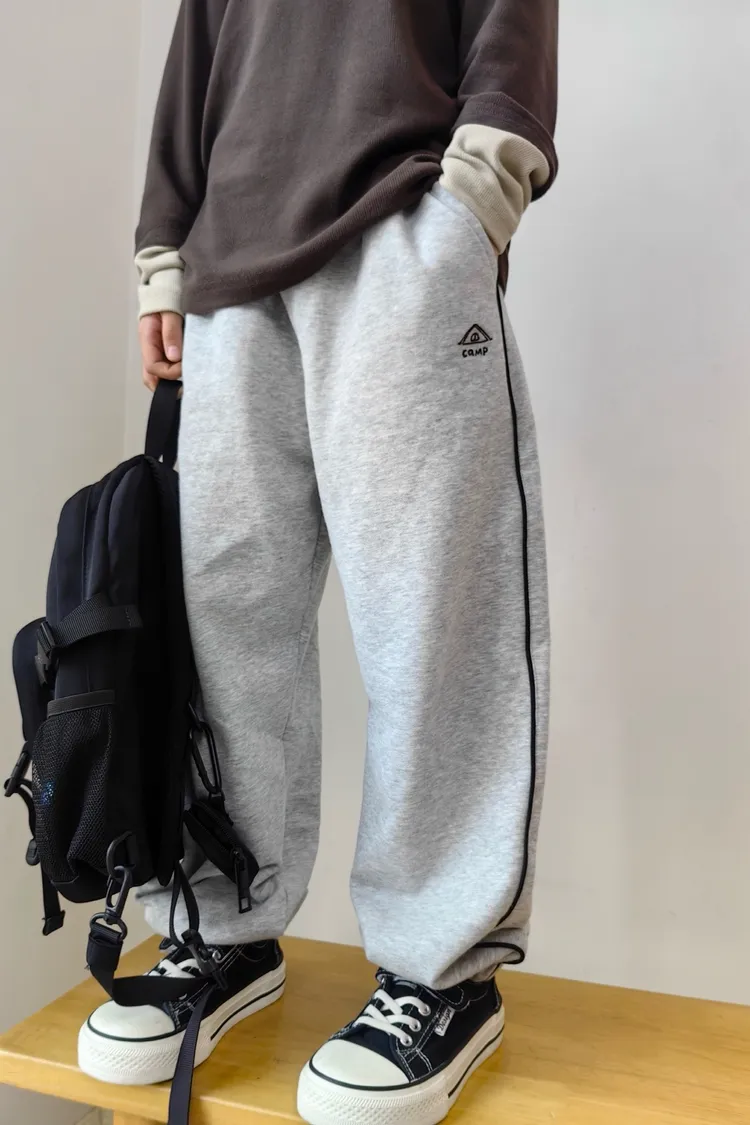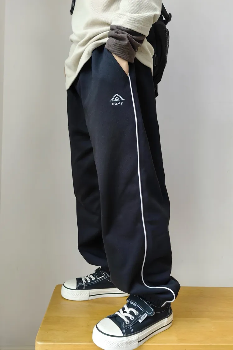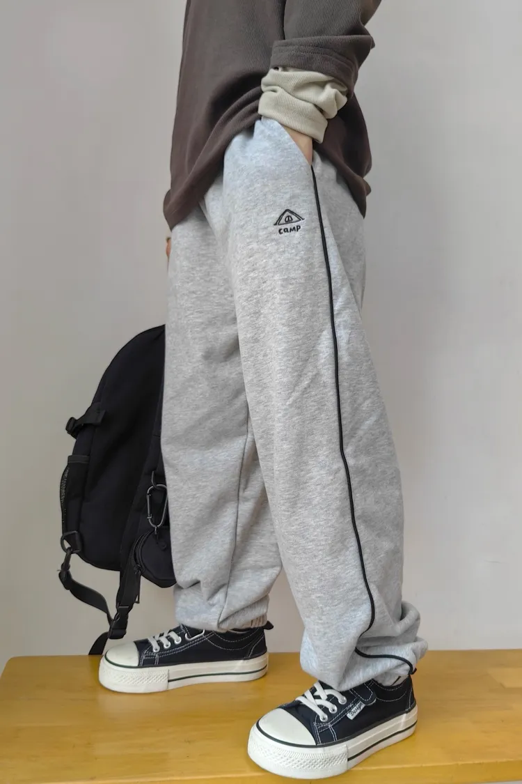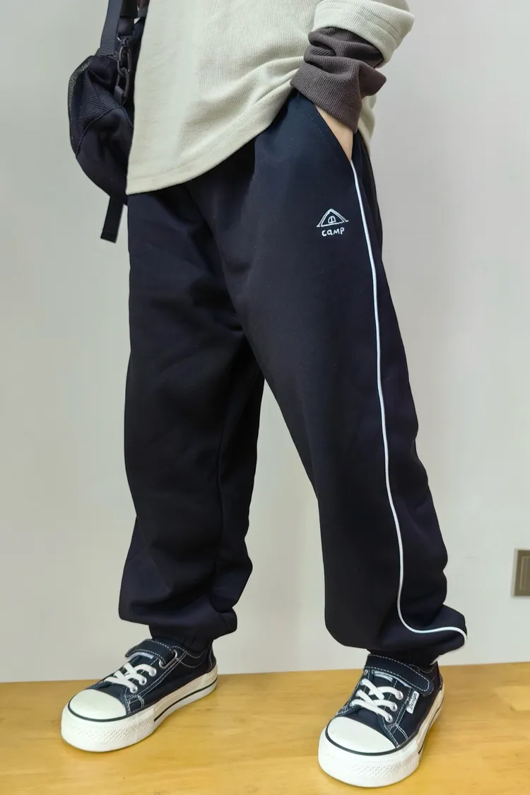 露營風刺繡撞色織帶校園褲