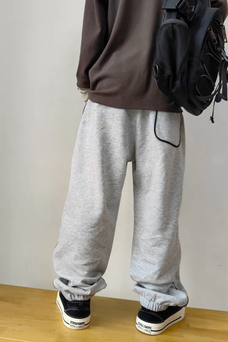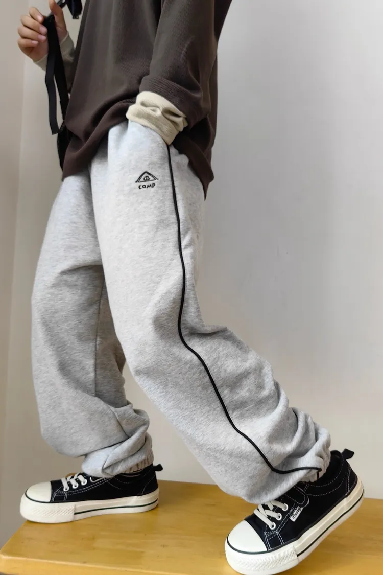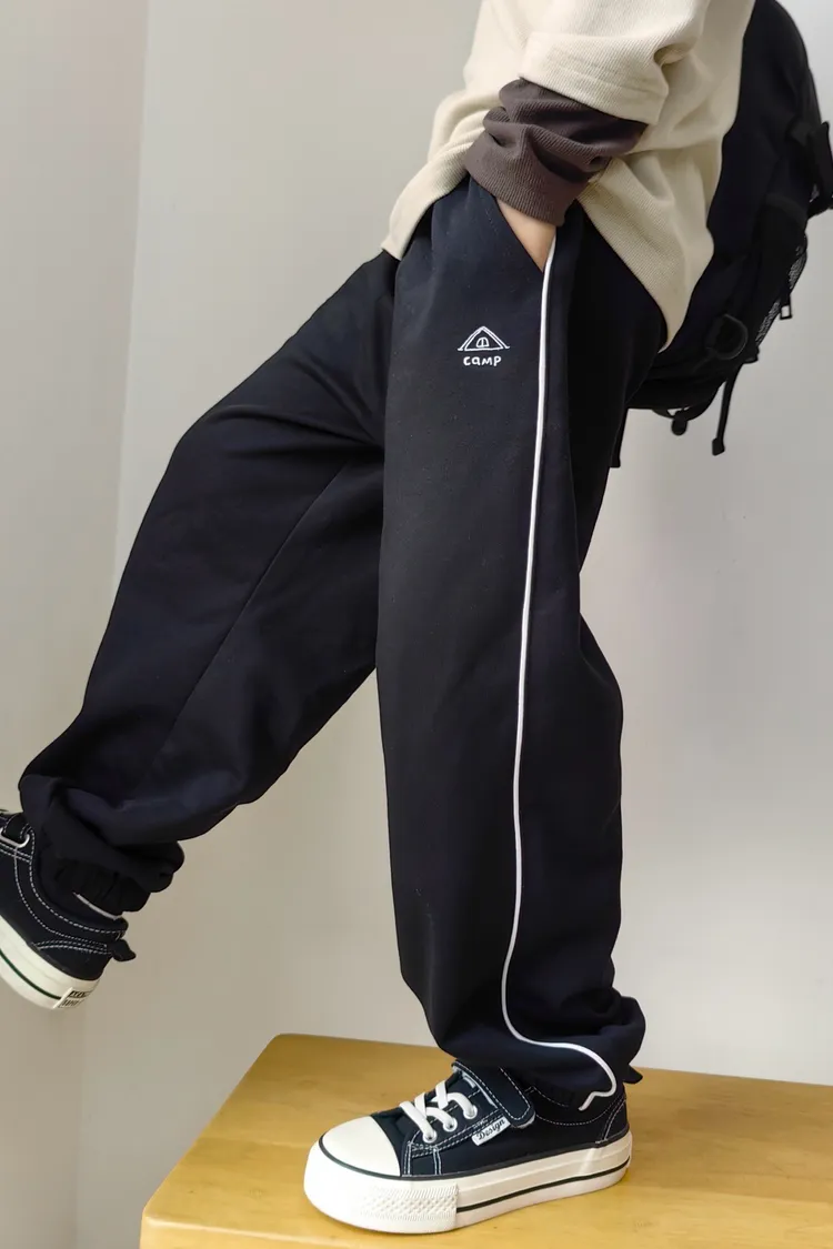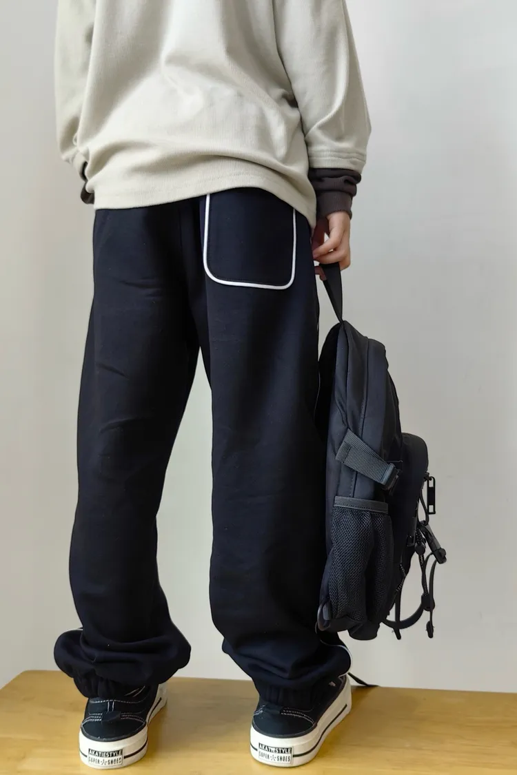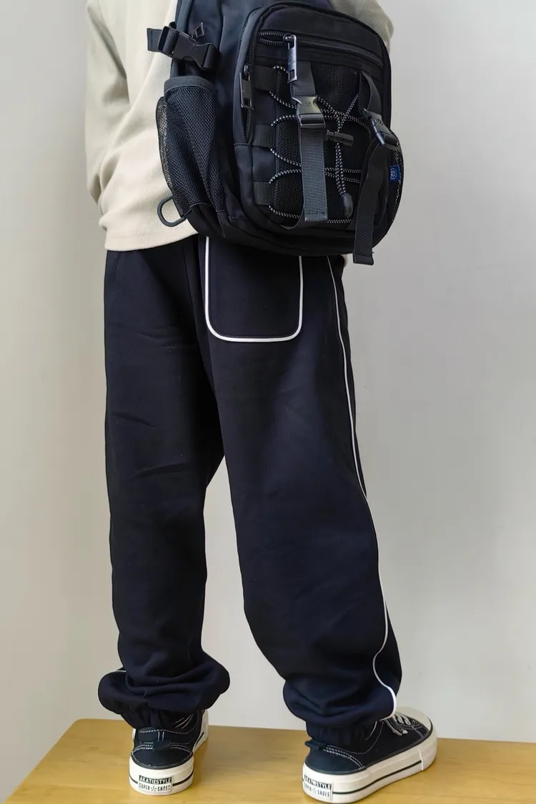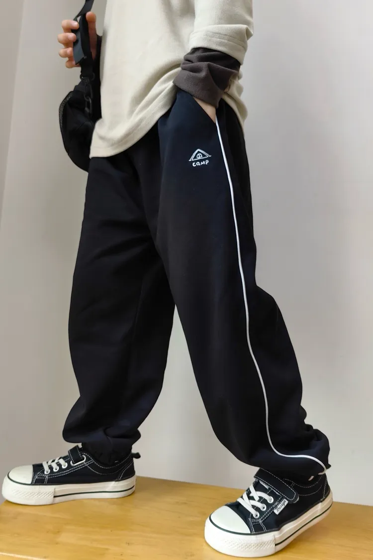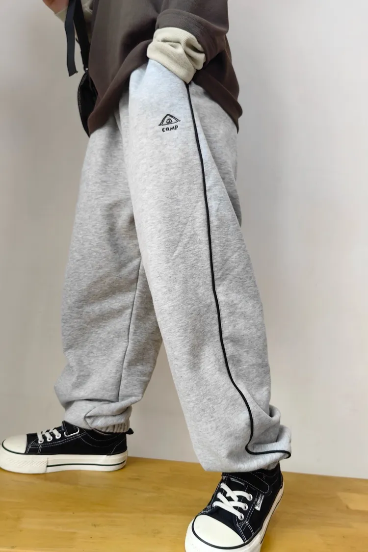 露營風刺繡撞色織帶校園褲