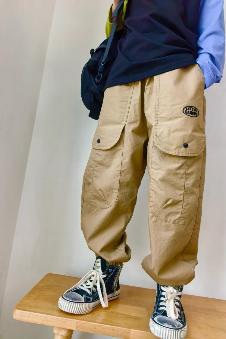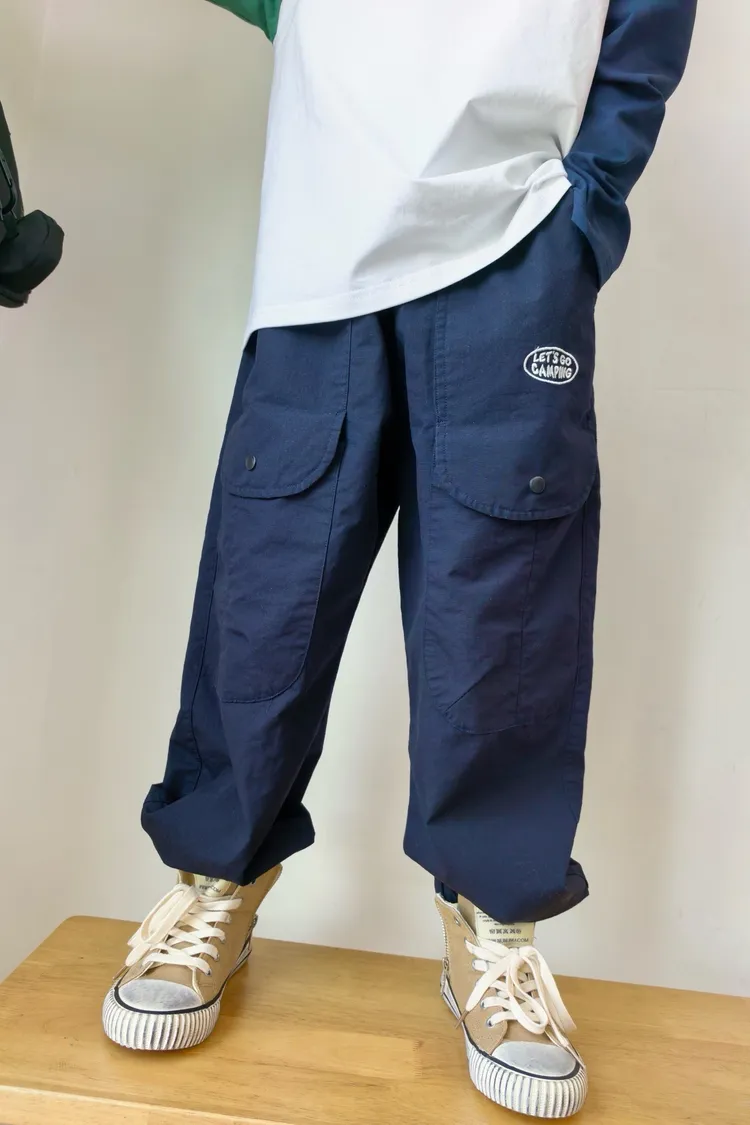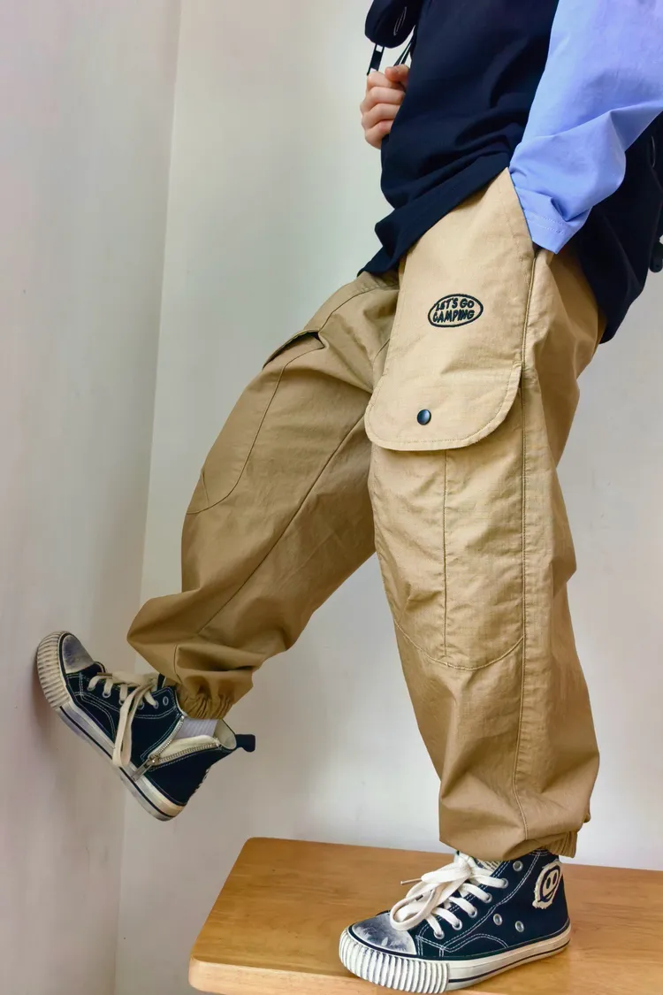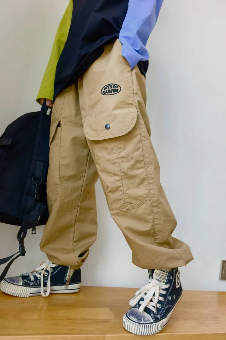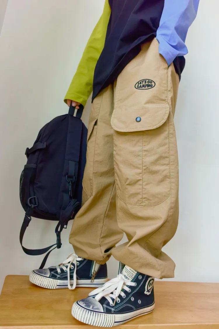字母刺繡大口袋工裝褲