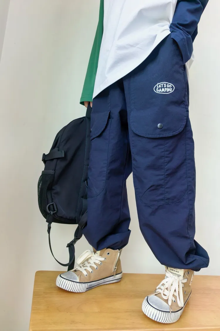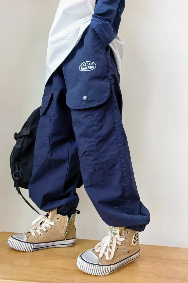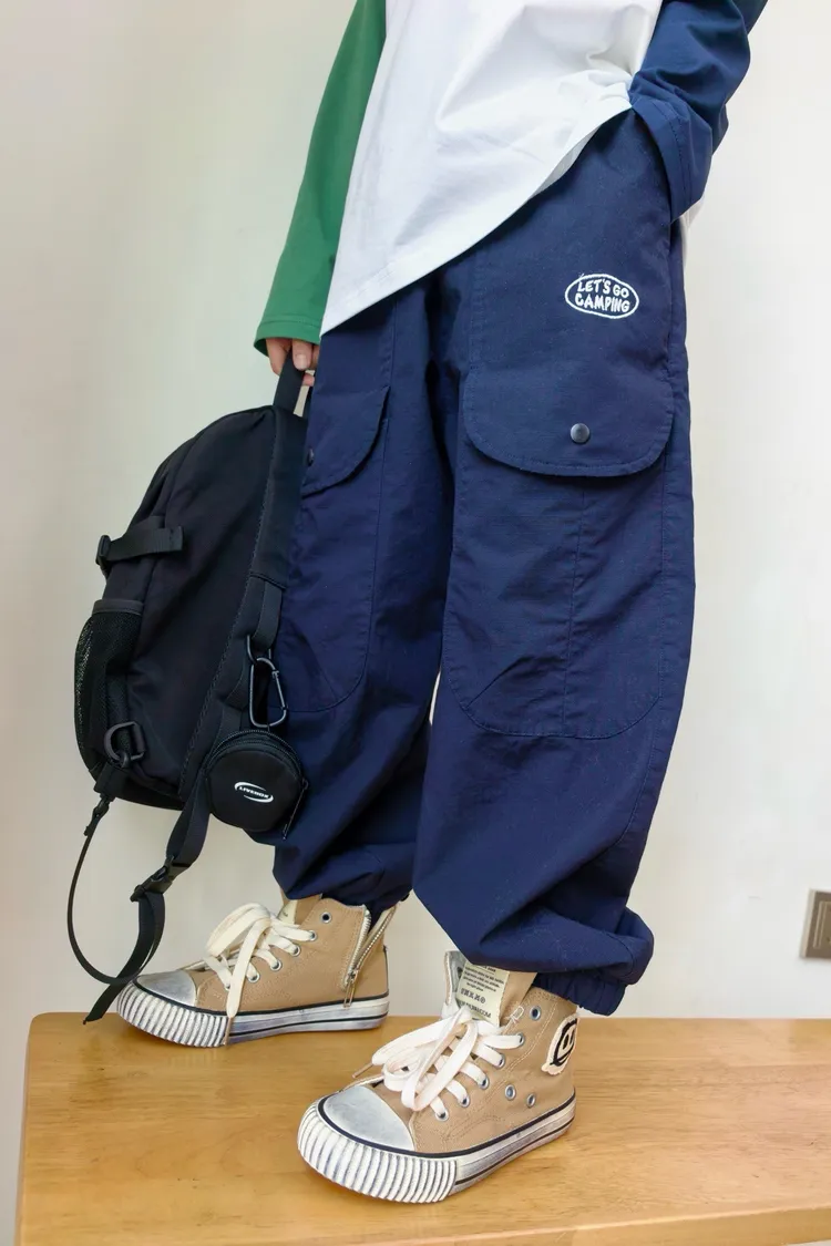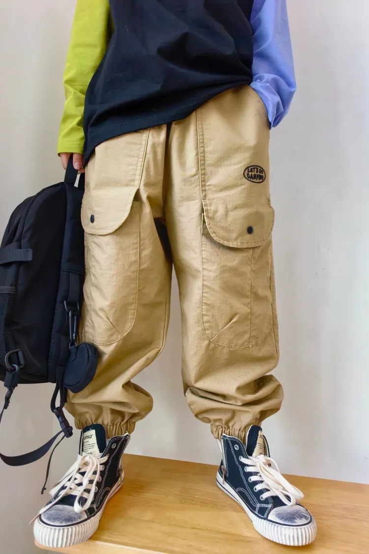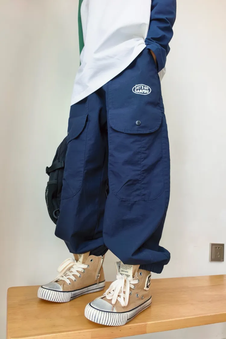 字母刺繡大口袋工裝褲