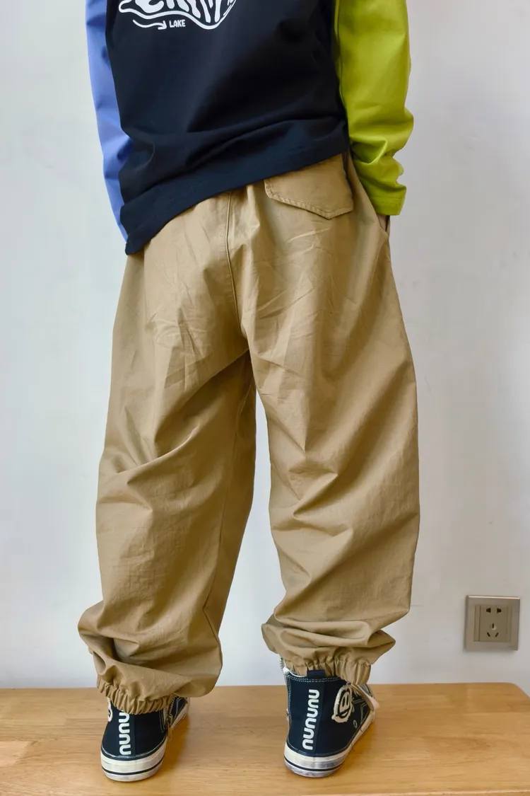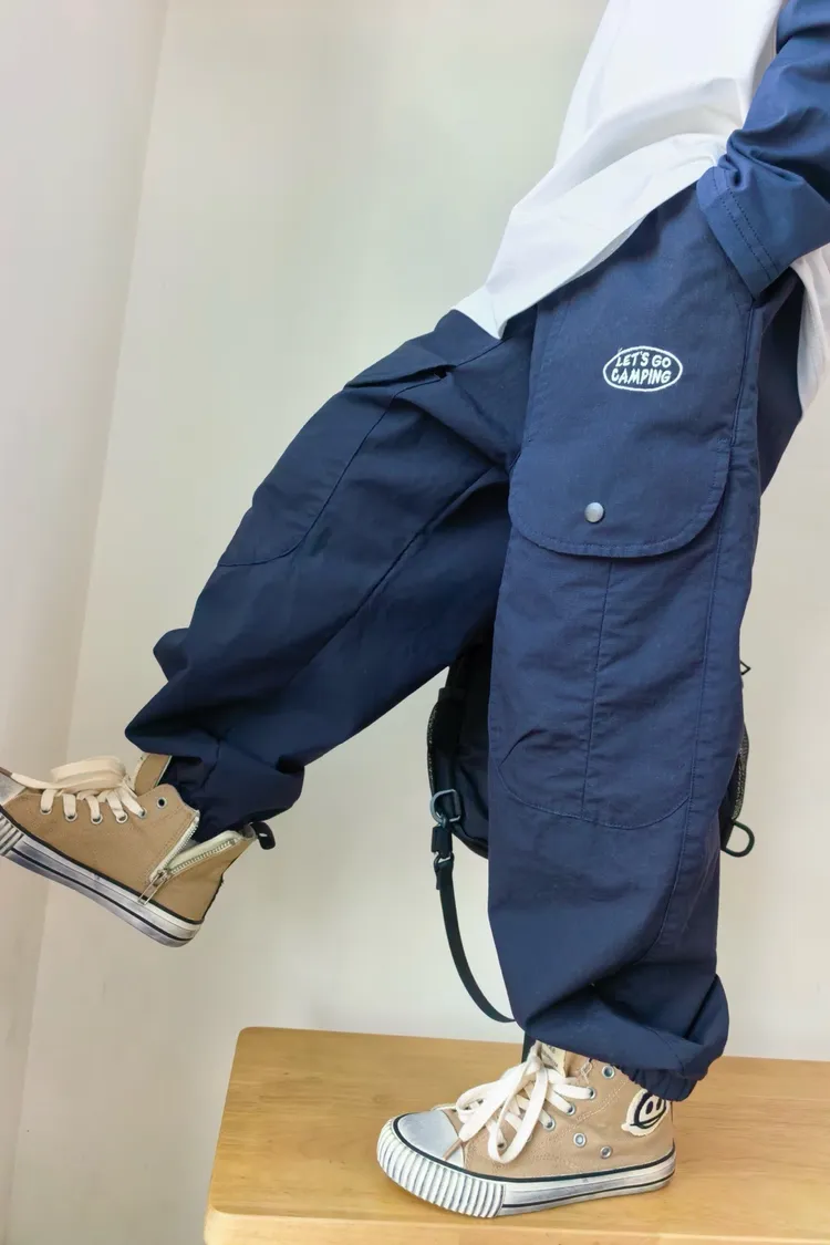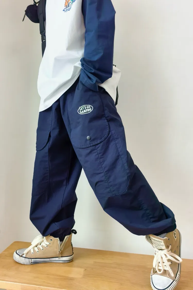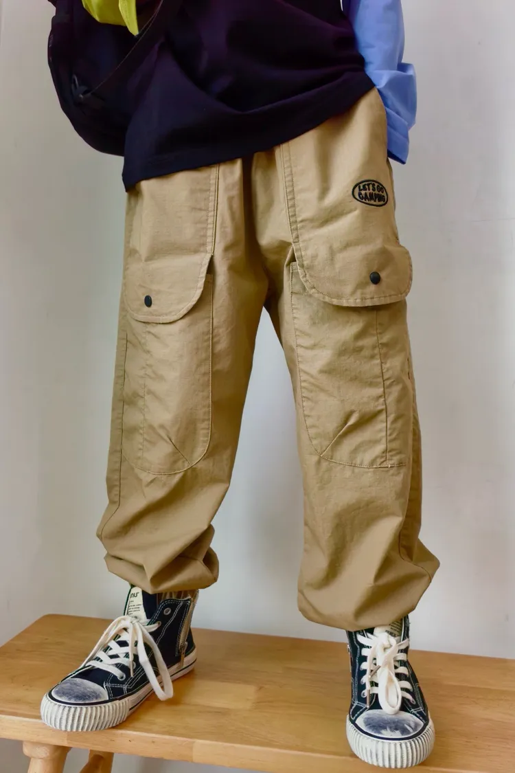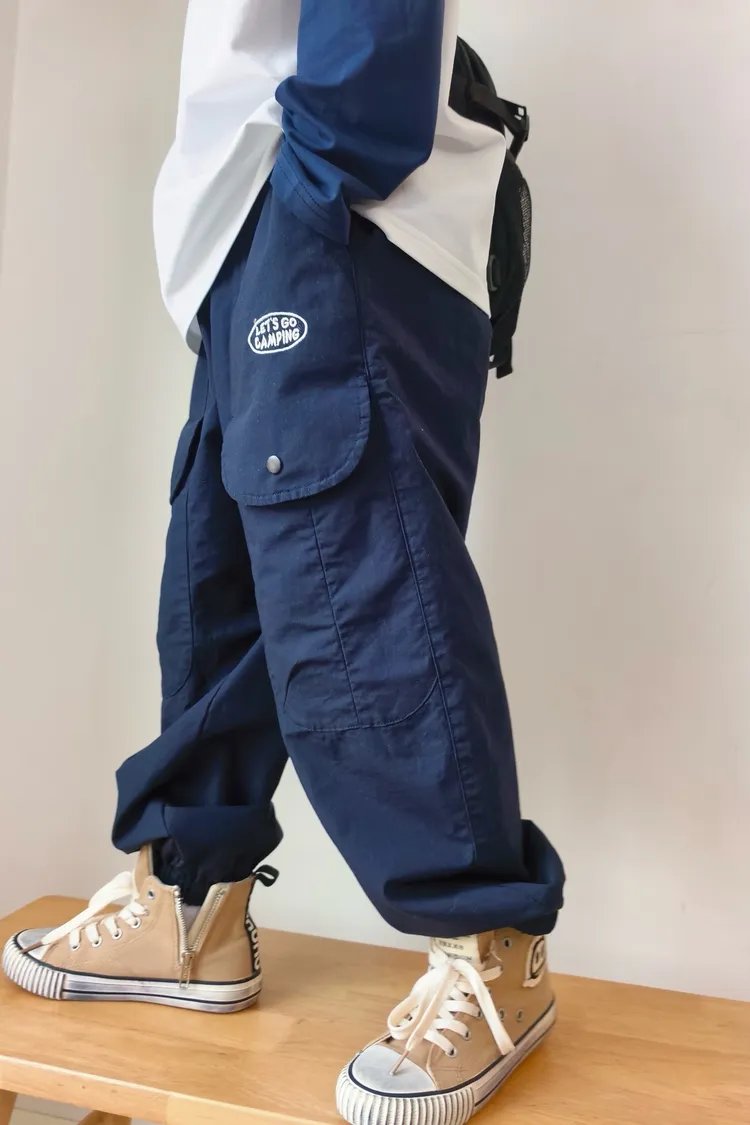 字母刺繡大口袋工裝褲