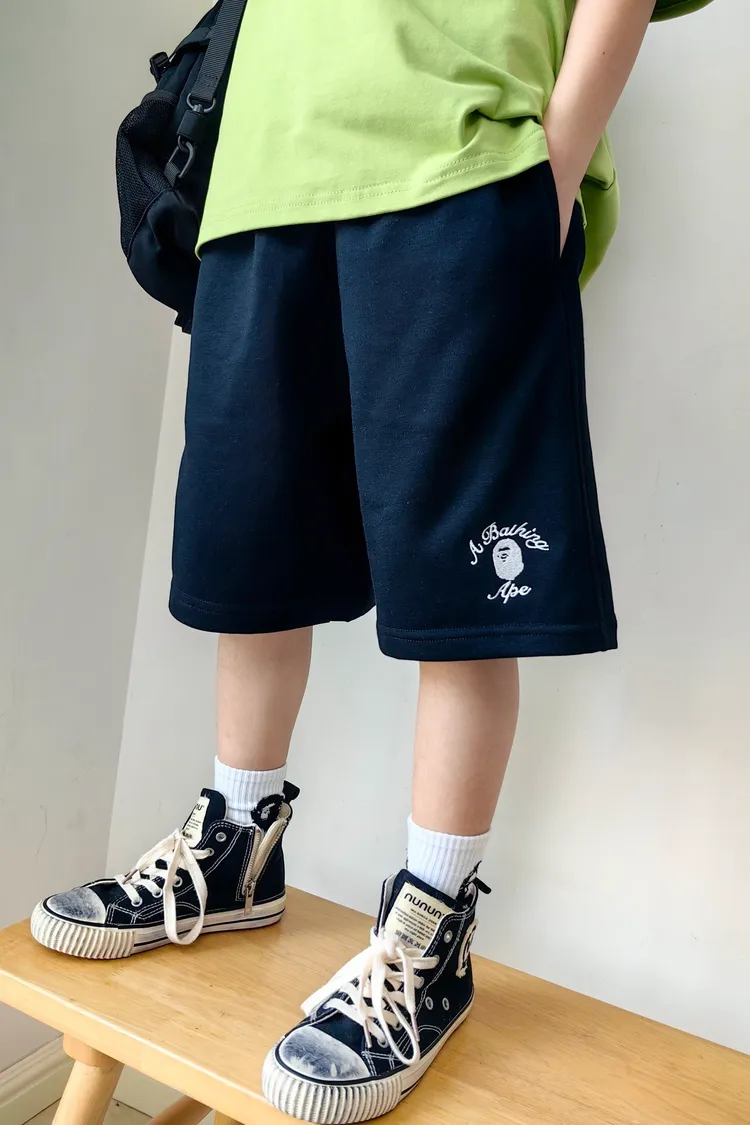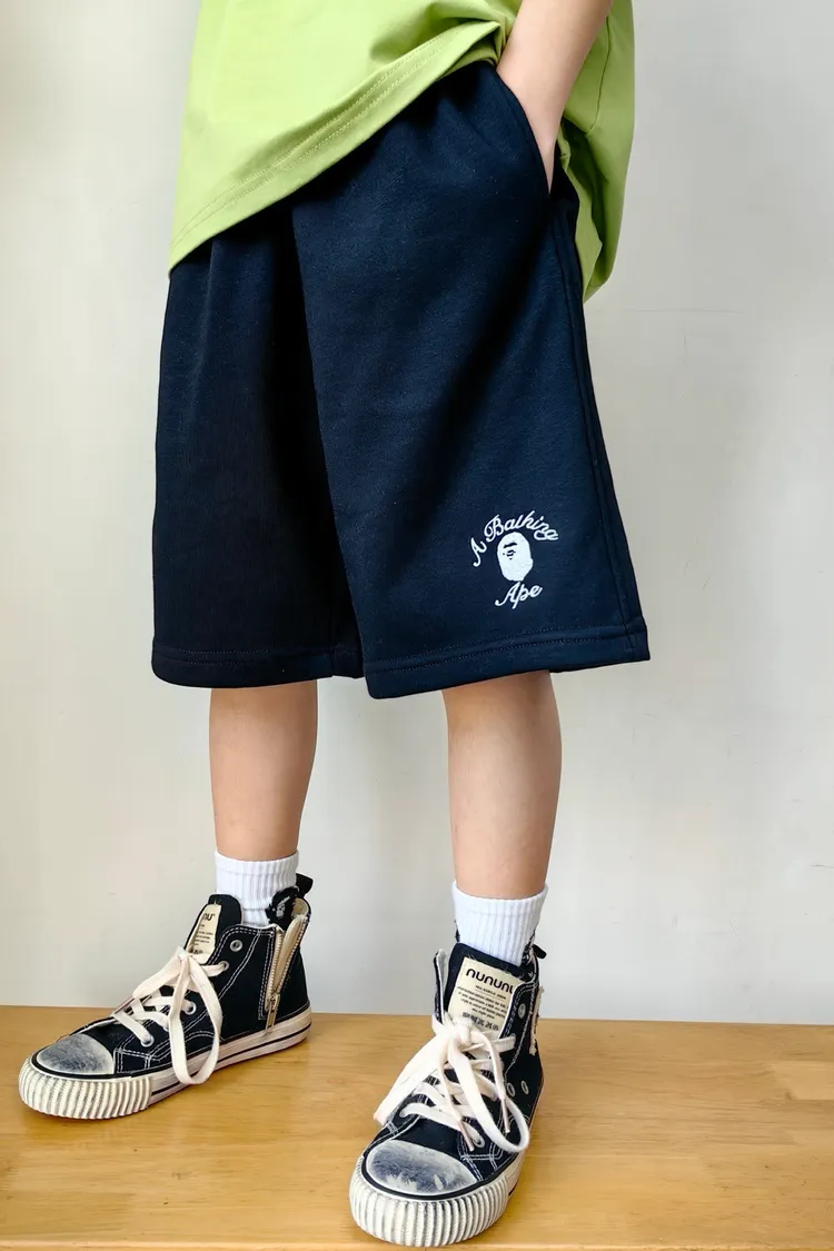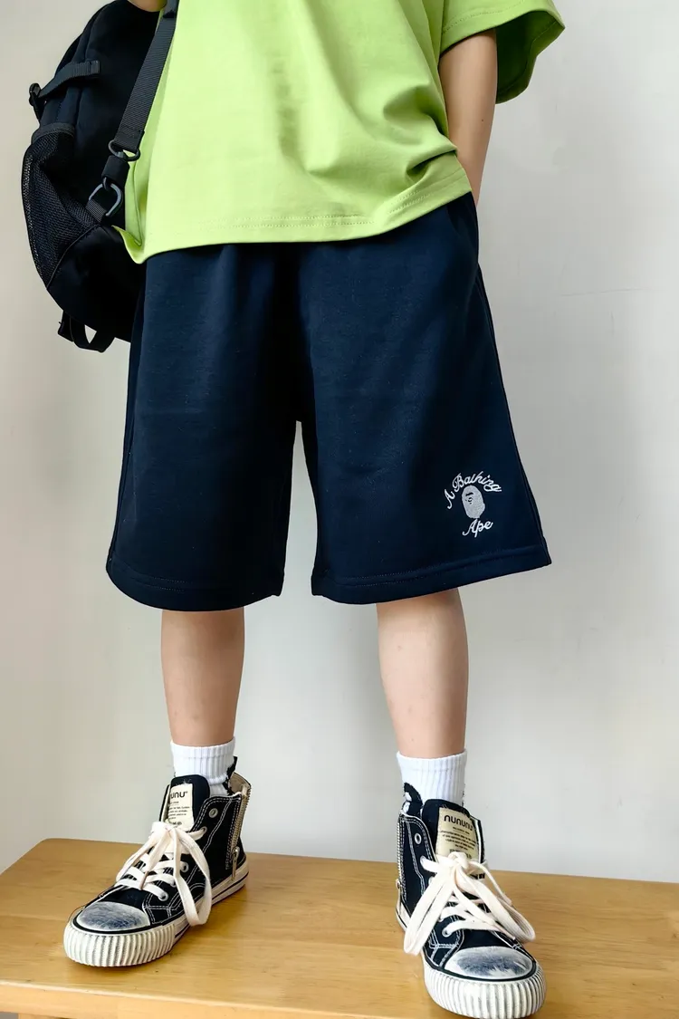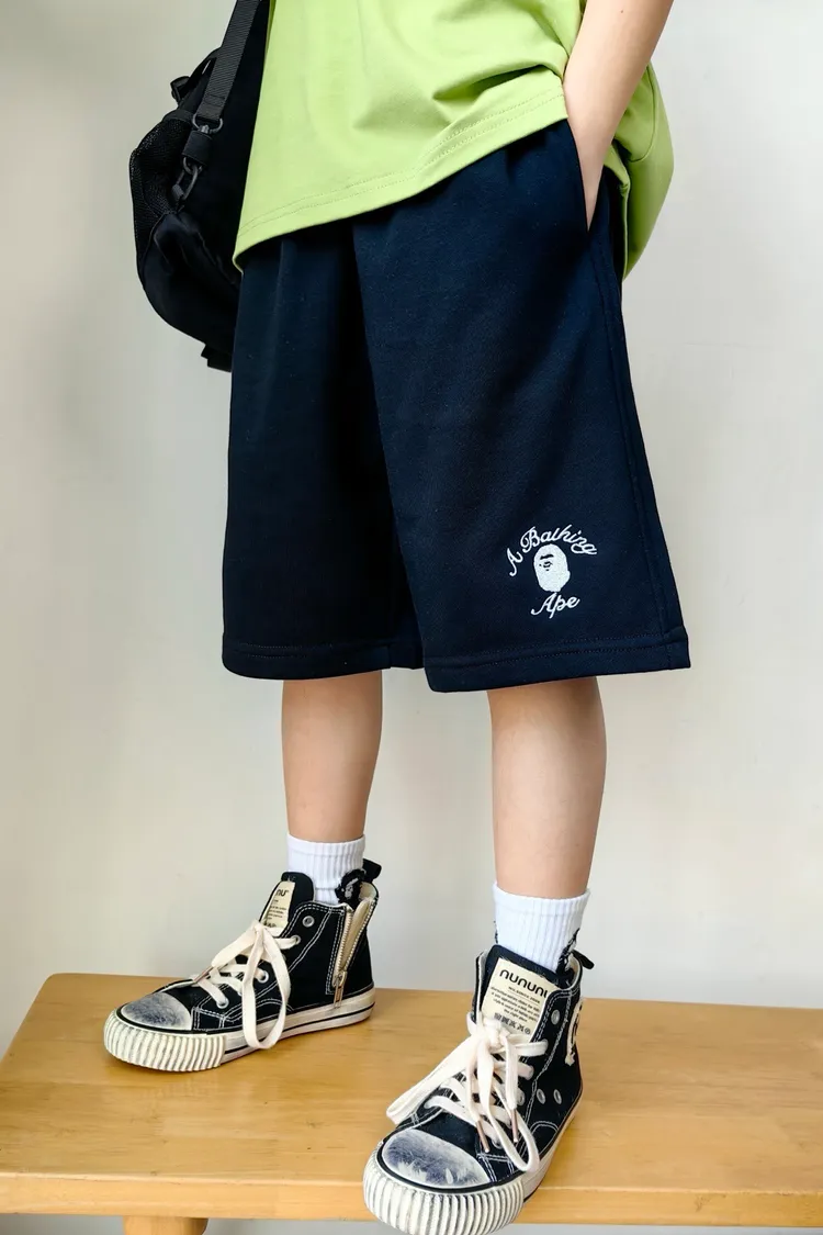 猿家繡花運動全棉五分褲