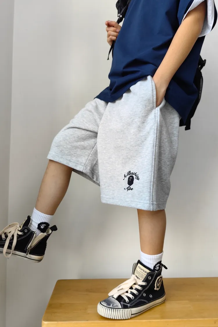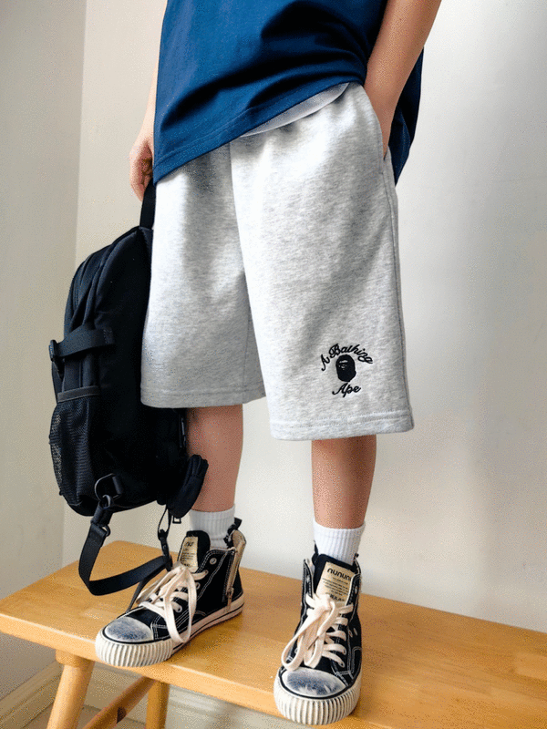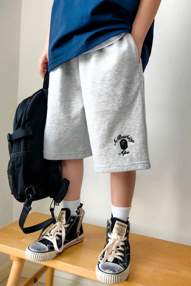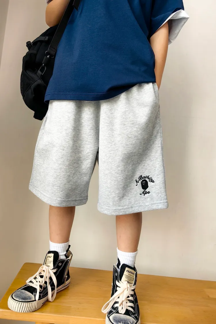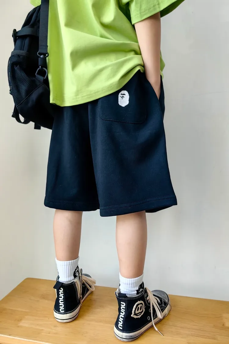 猿家繡花運動全棉五分褲