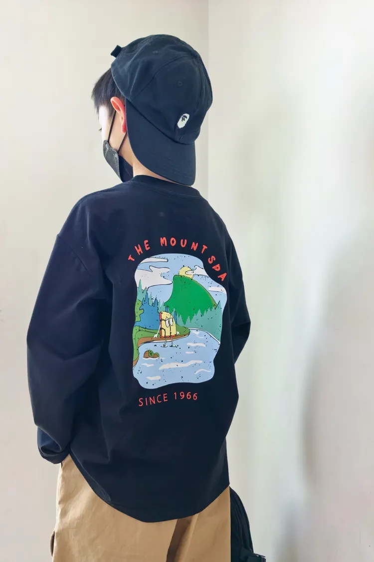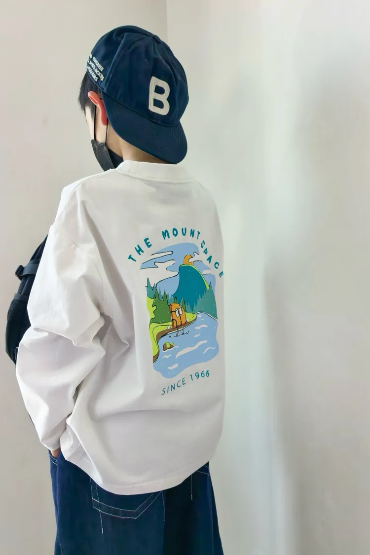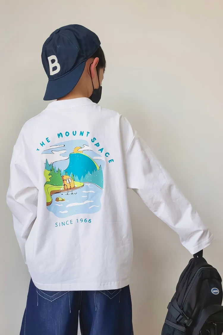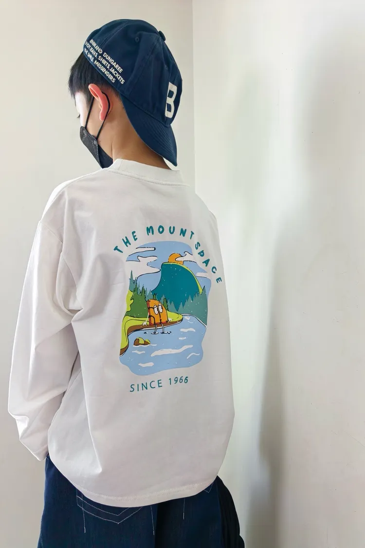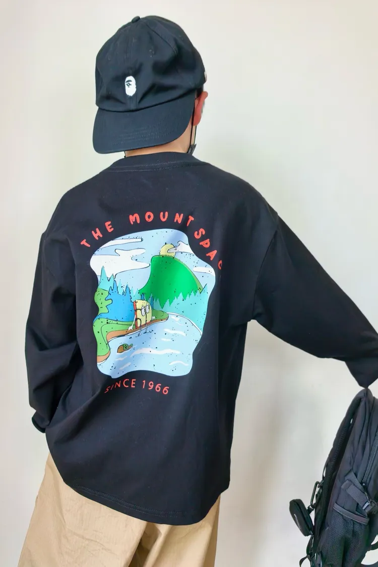 戶外風彩色湖水印花長袖TEE