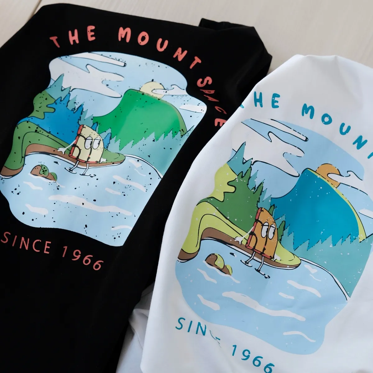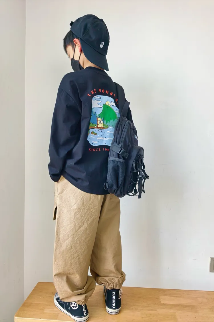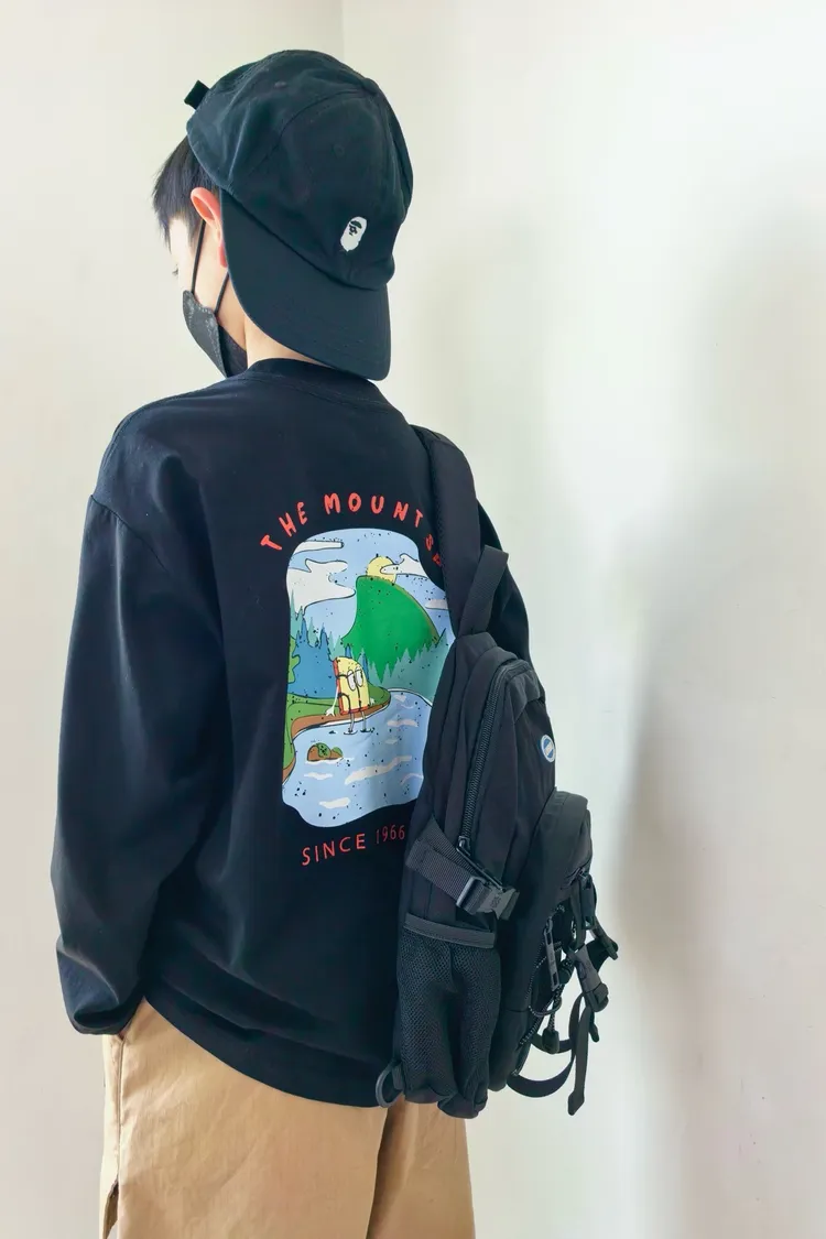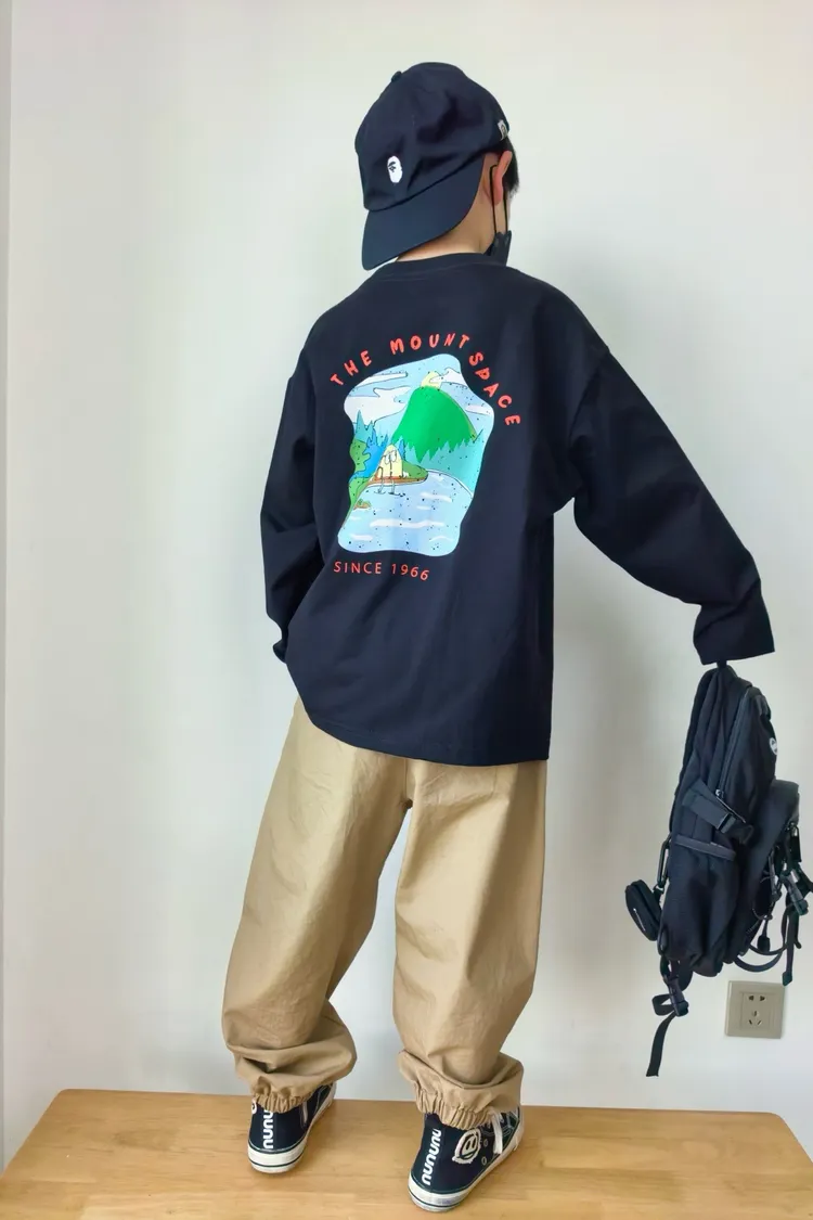 戶外風彩色湖水印花長袖TEE