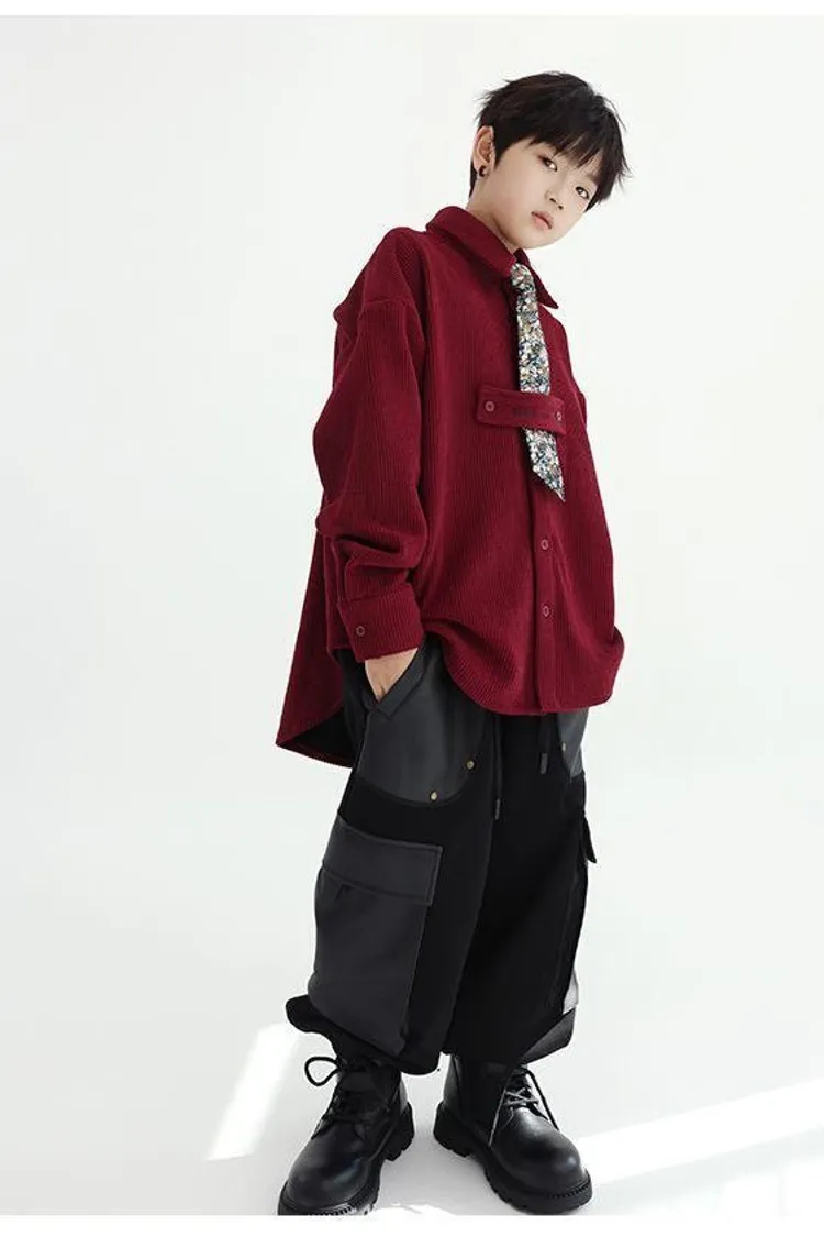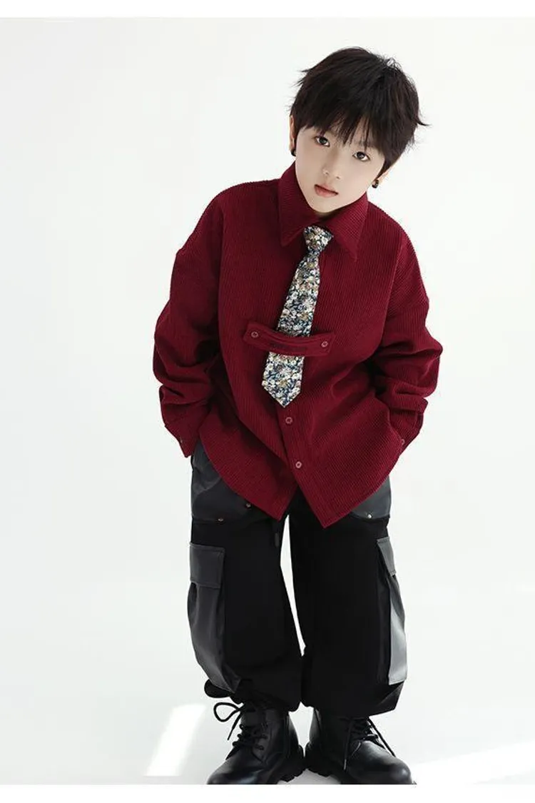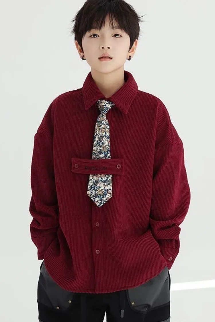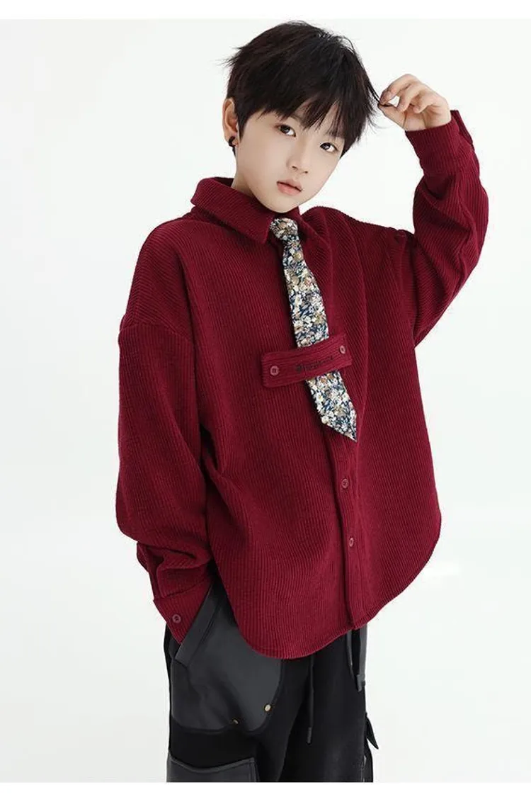 花領結燈芯絨襯衫