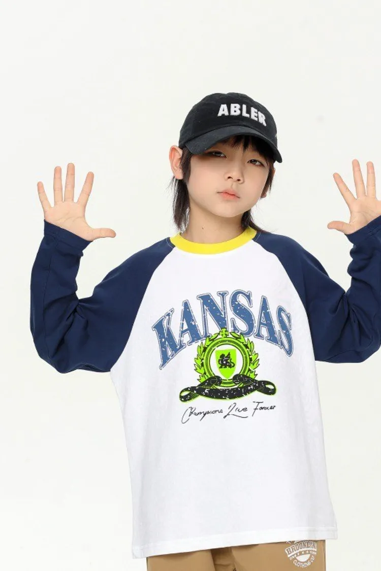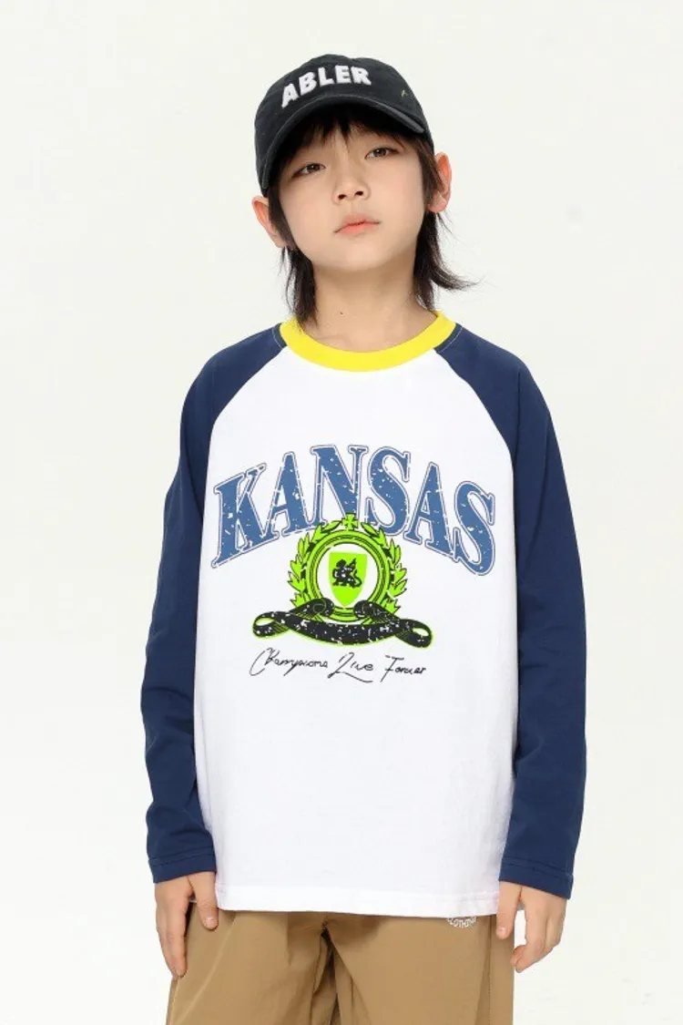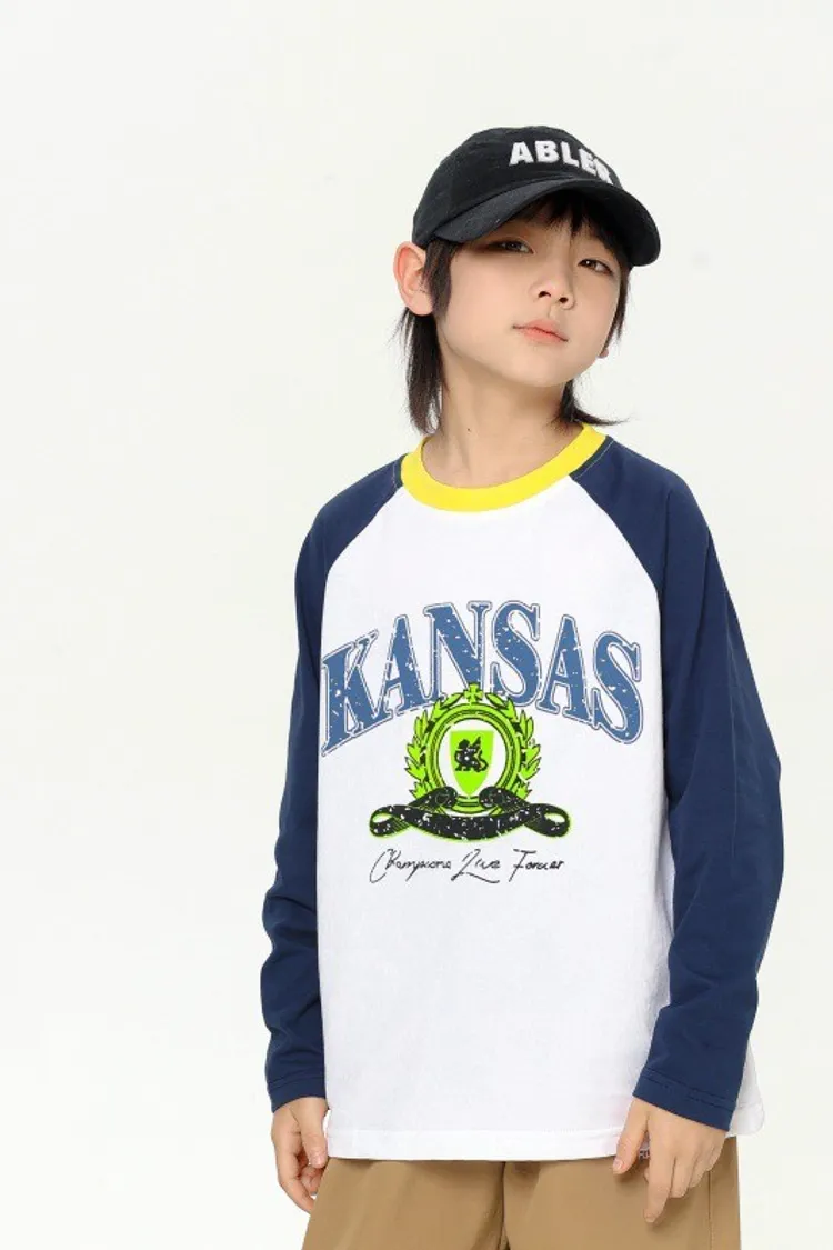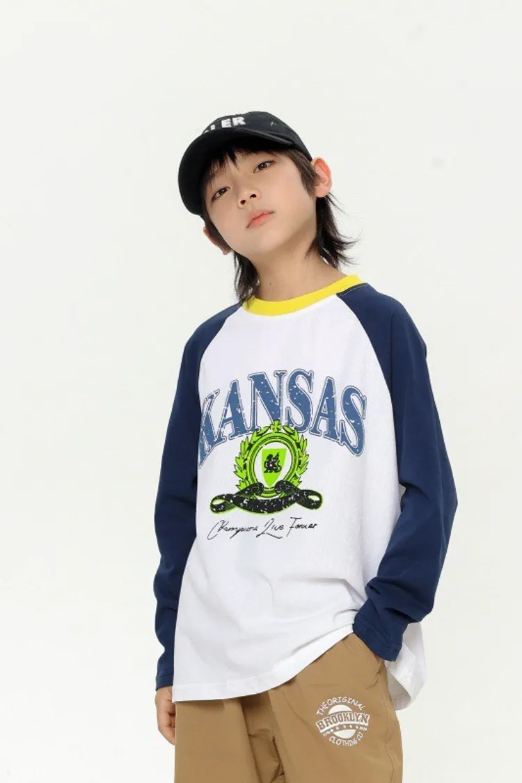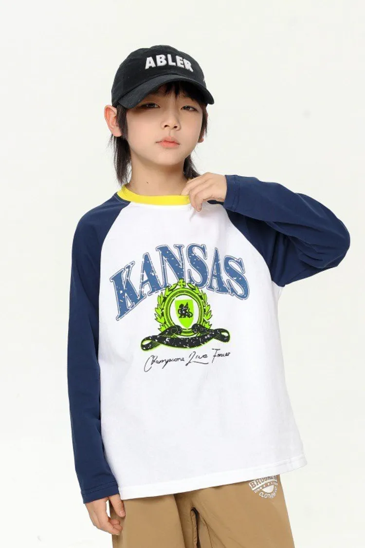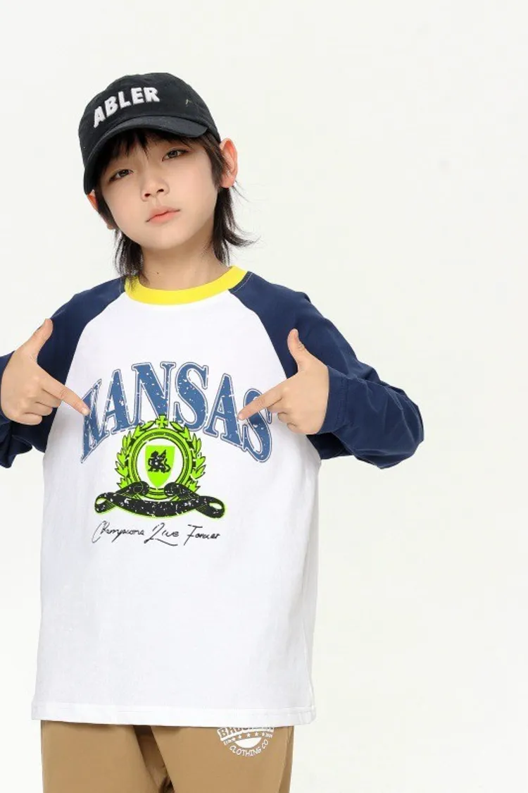 撞色大字母印花插肩袖TEE