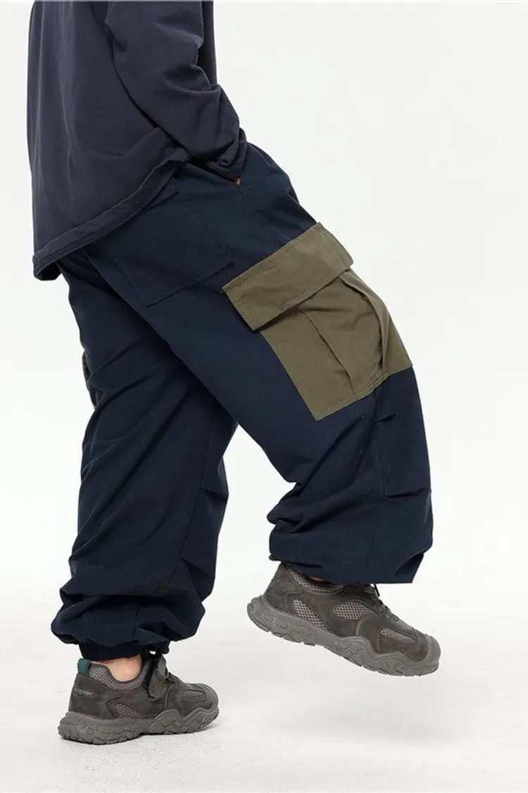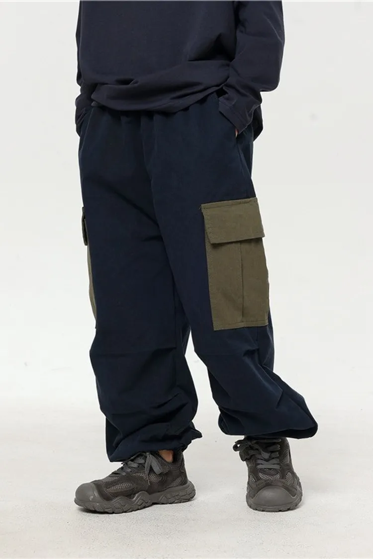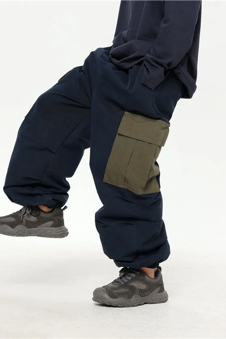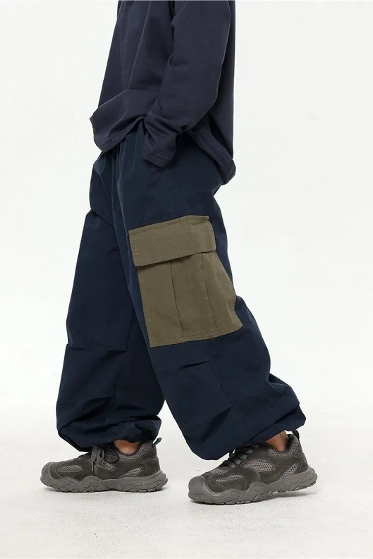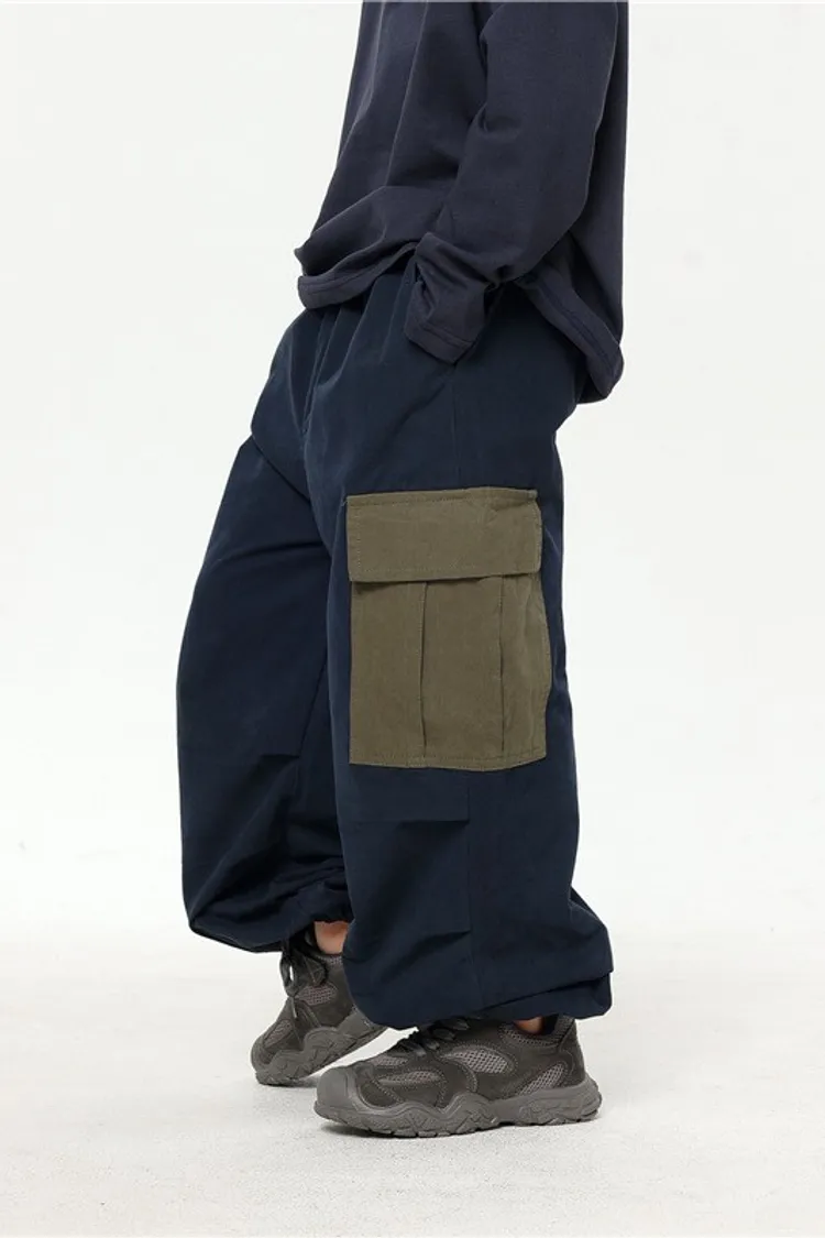 撞色大口袋水洗棉工裝褲