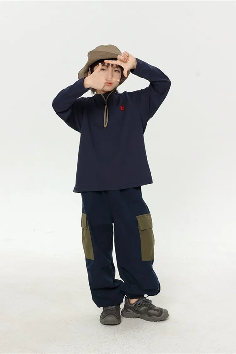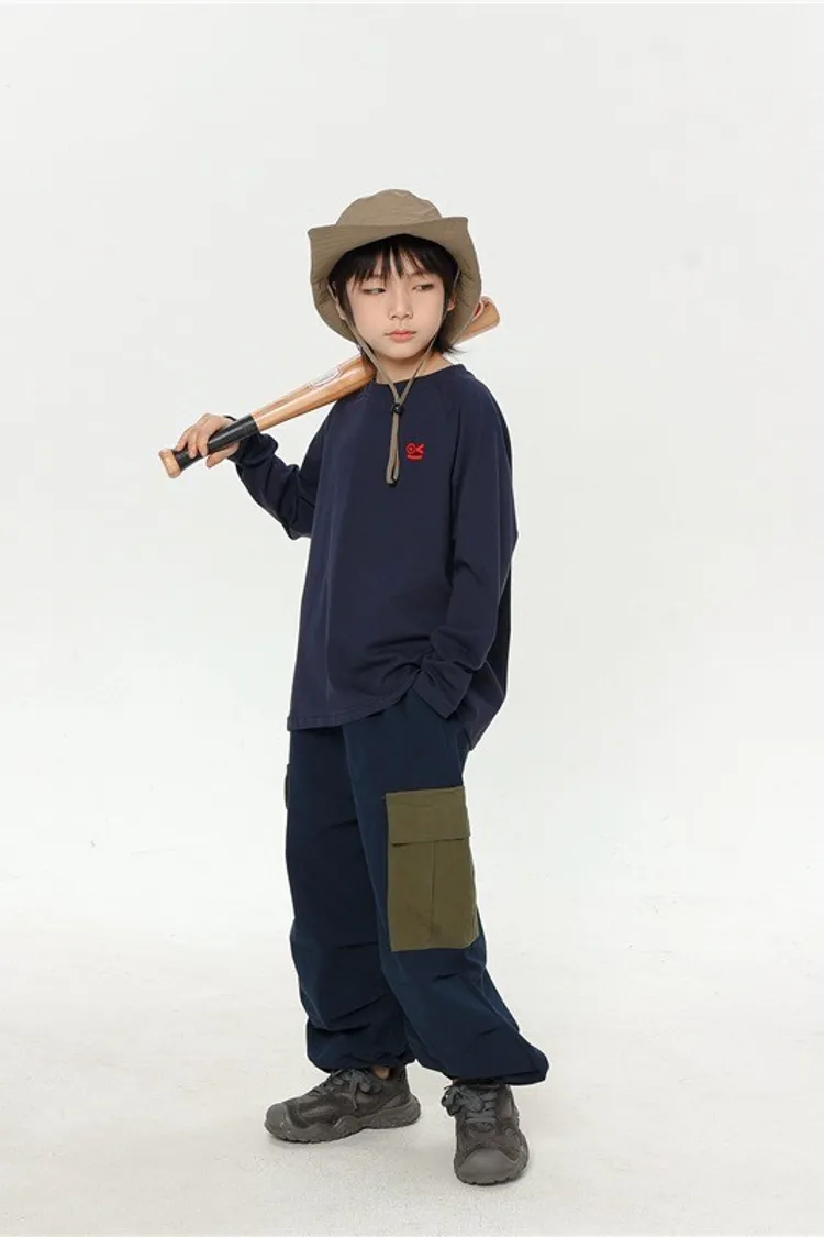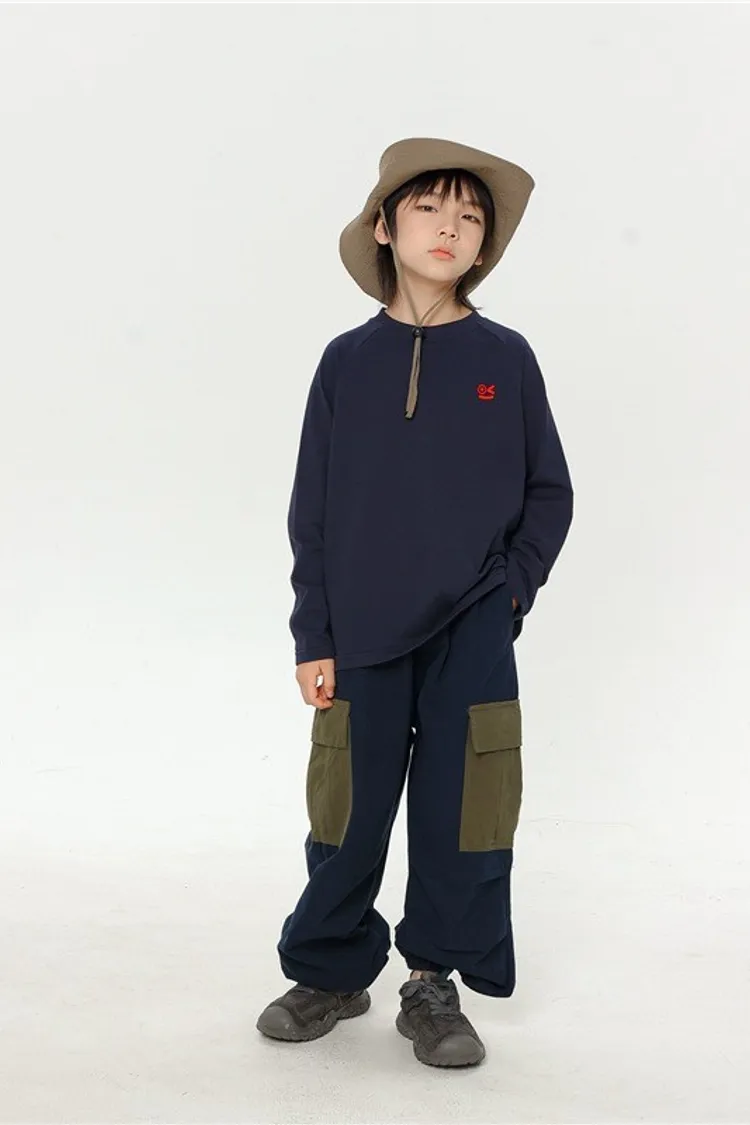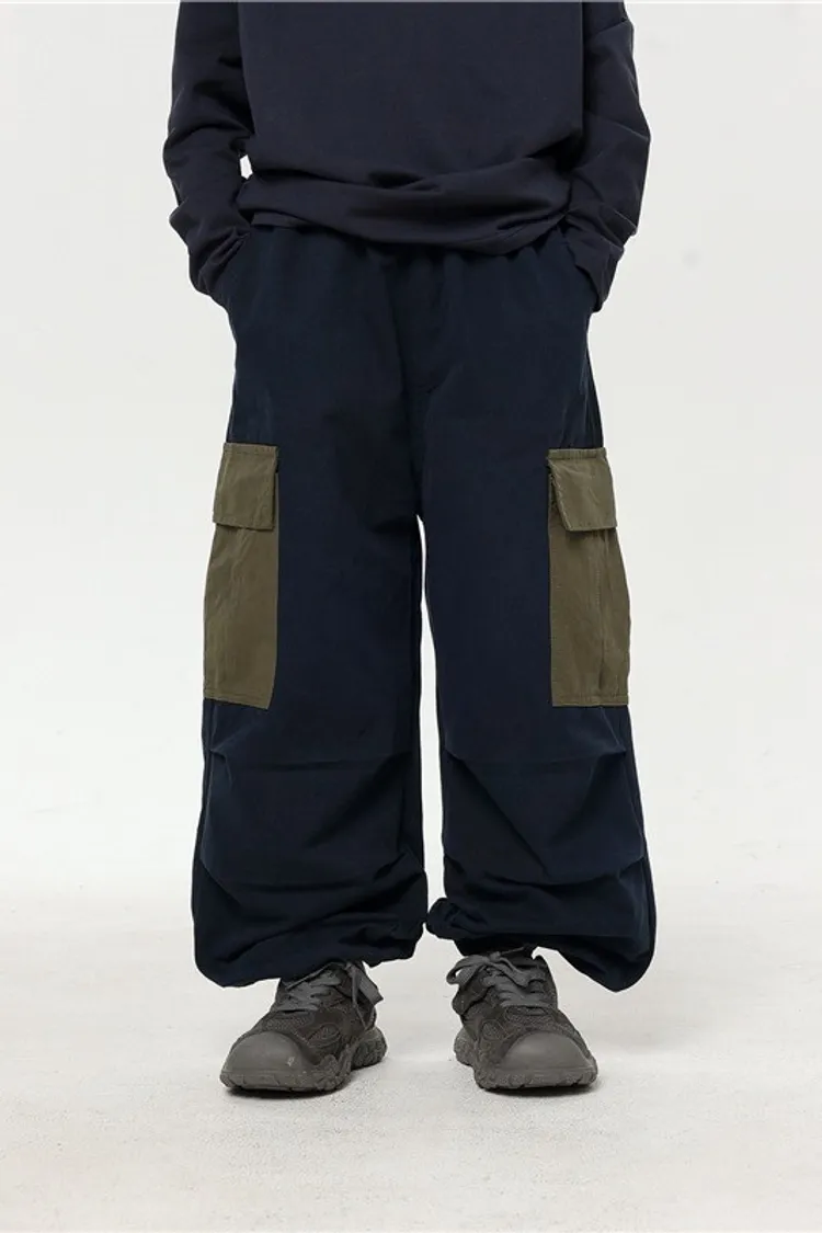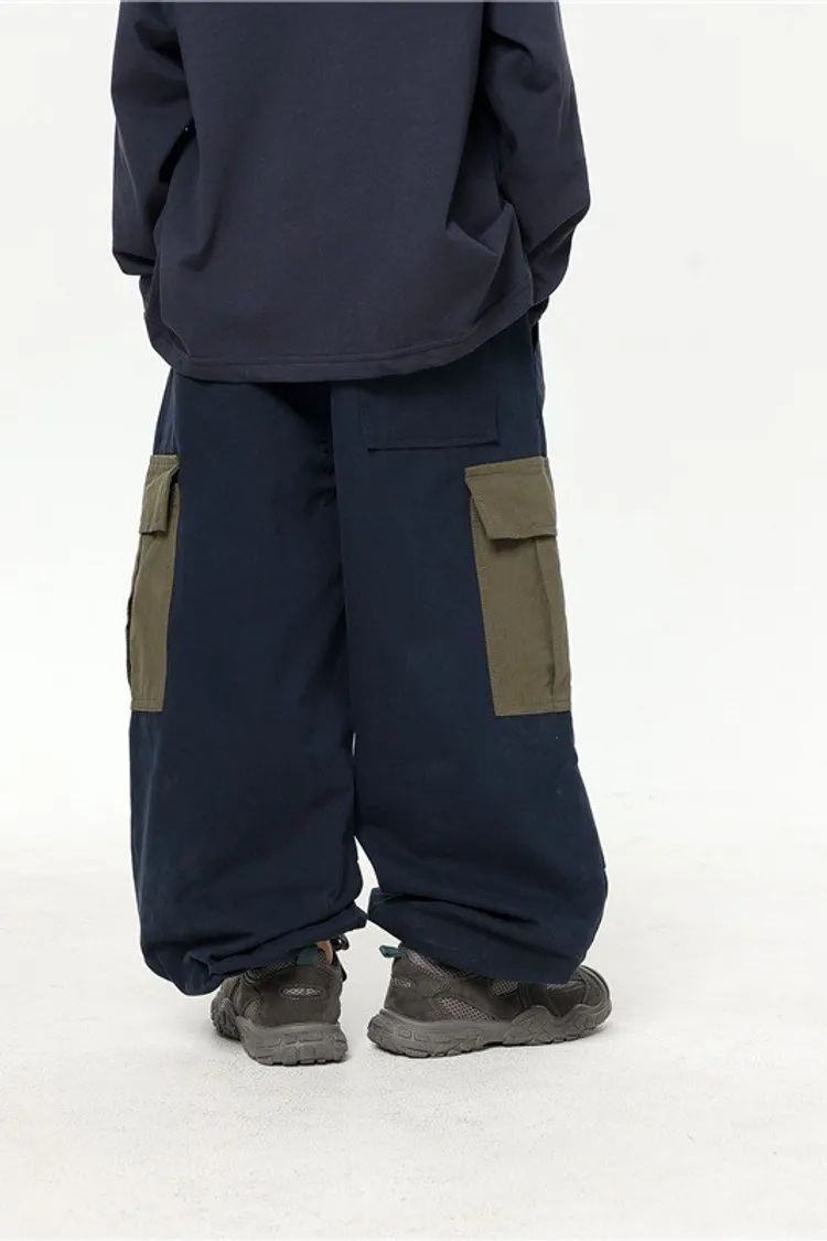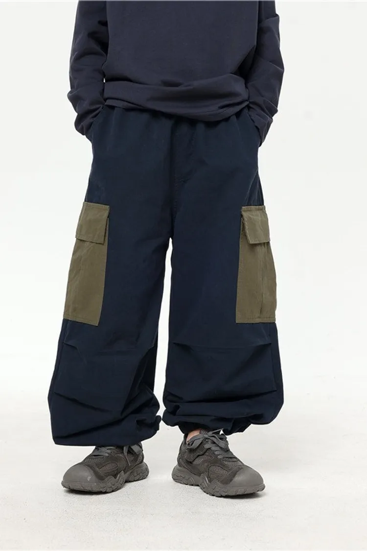 撞色大口袋水洗棉工裝褲