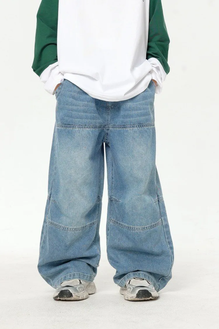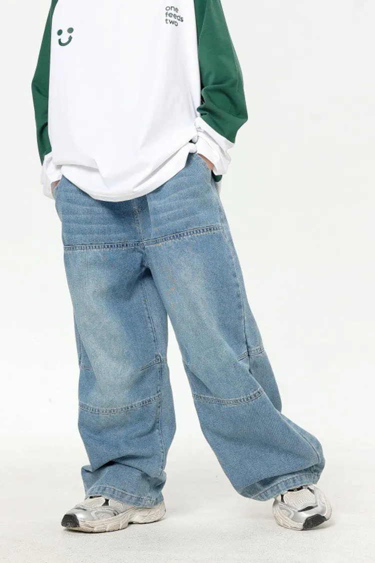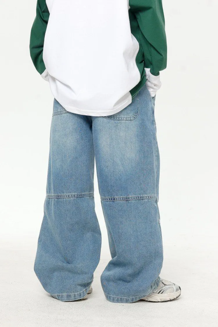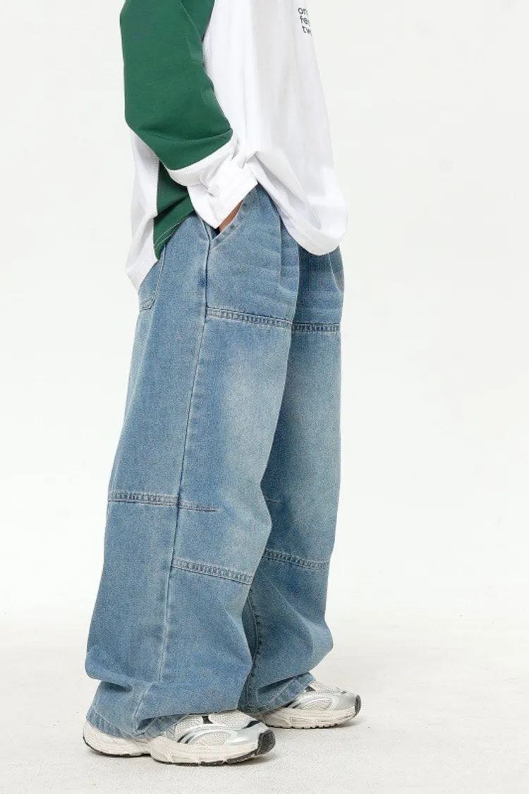 美式寬鬆水洗直筒牛仔褲