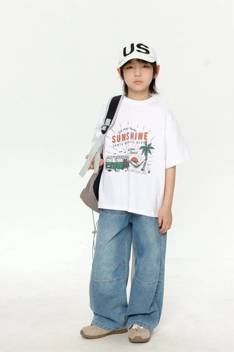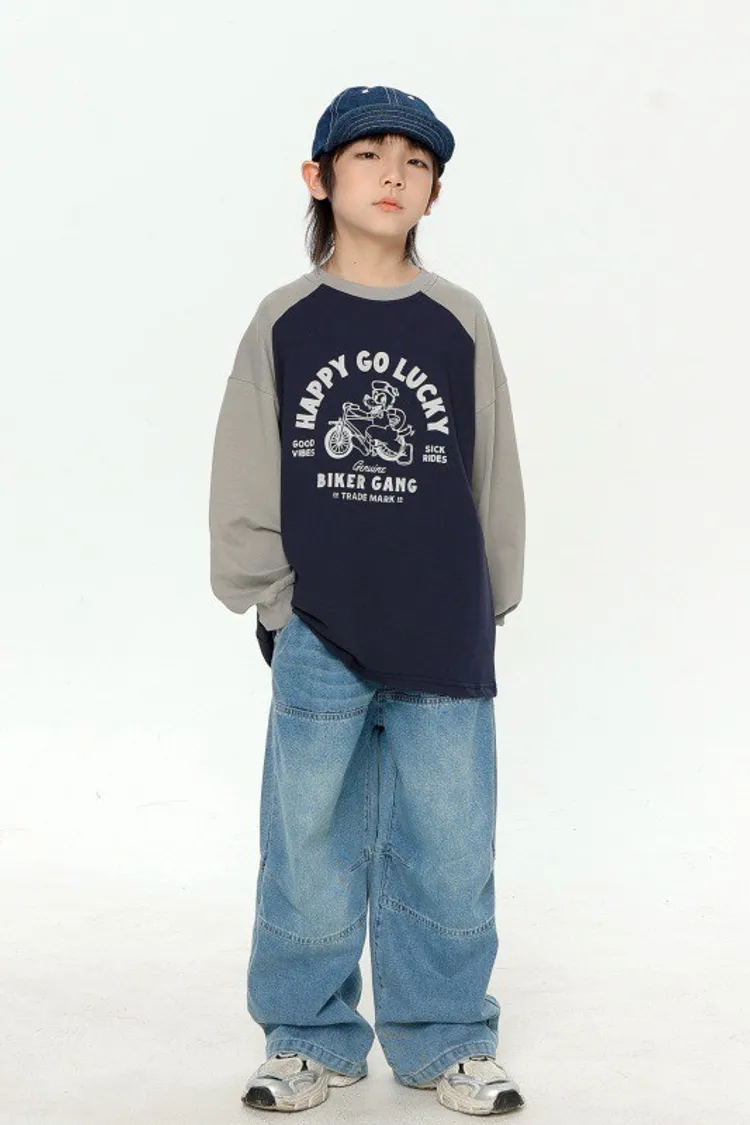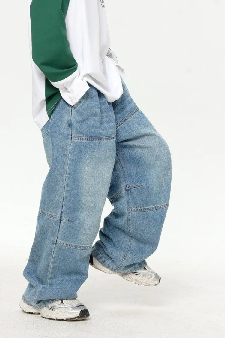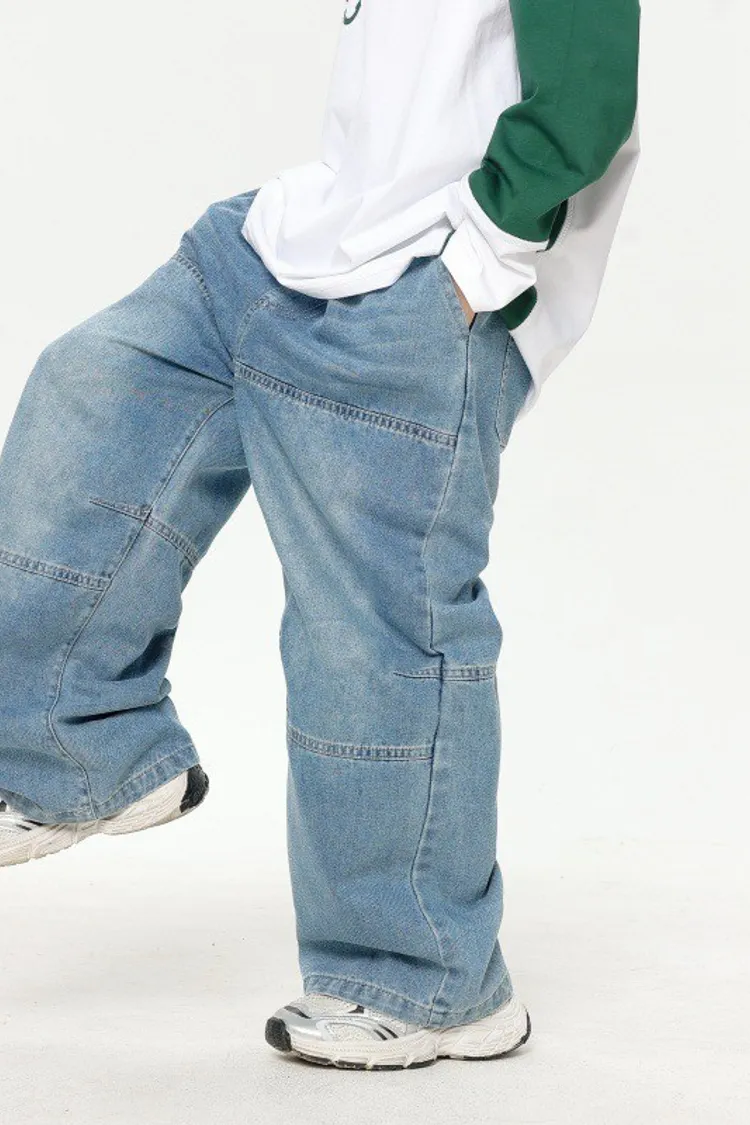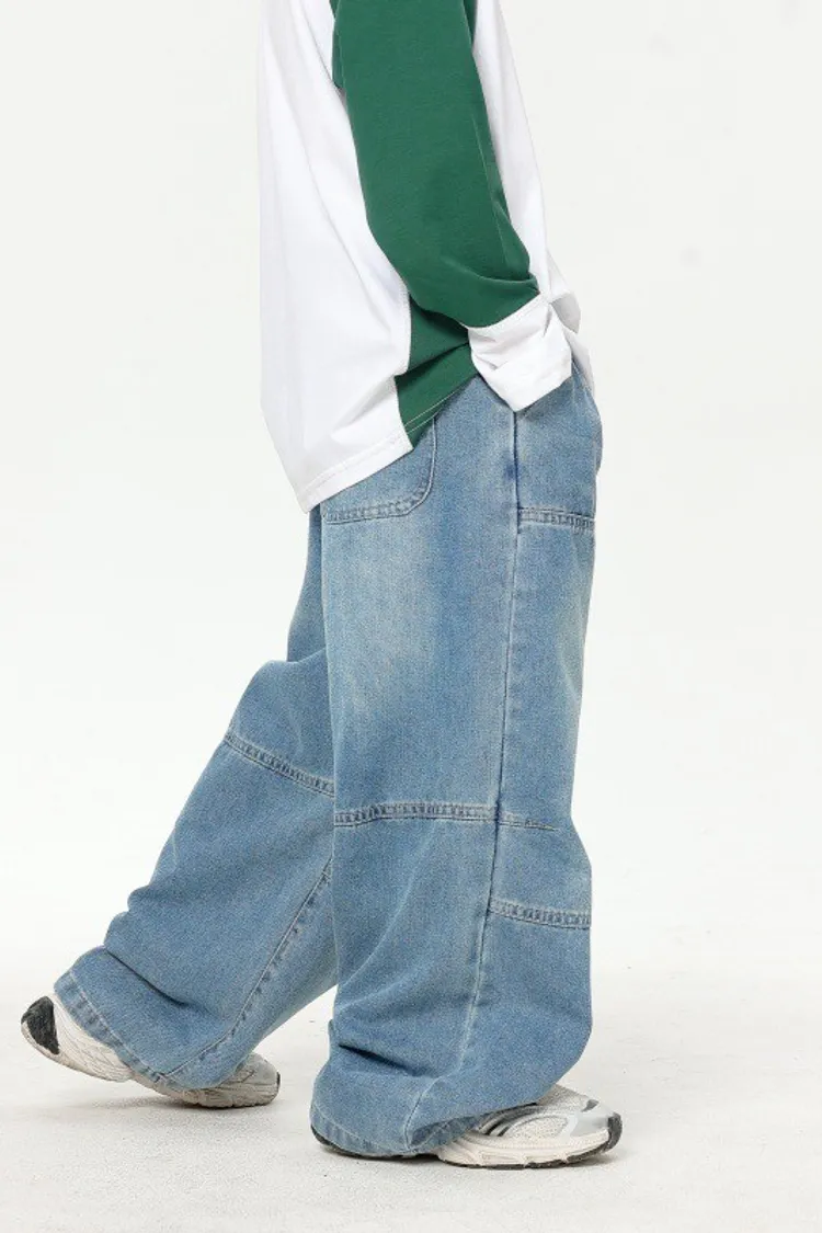 美式寬鬆水洗直筒牛仔褲