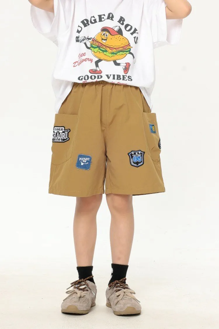 美式貼標水洗大口袋休閒褲