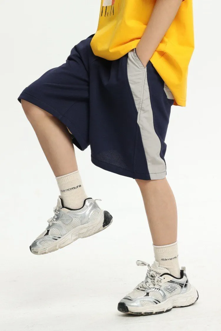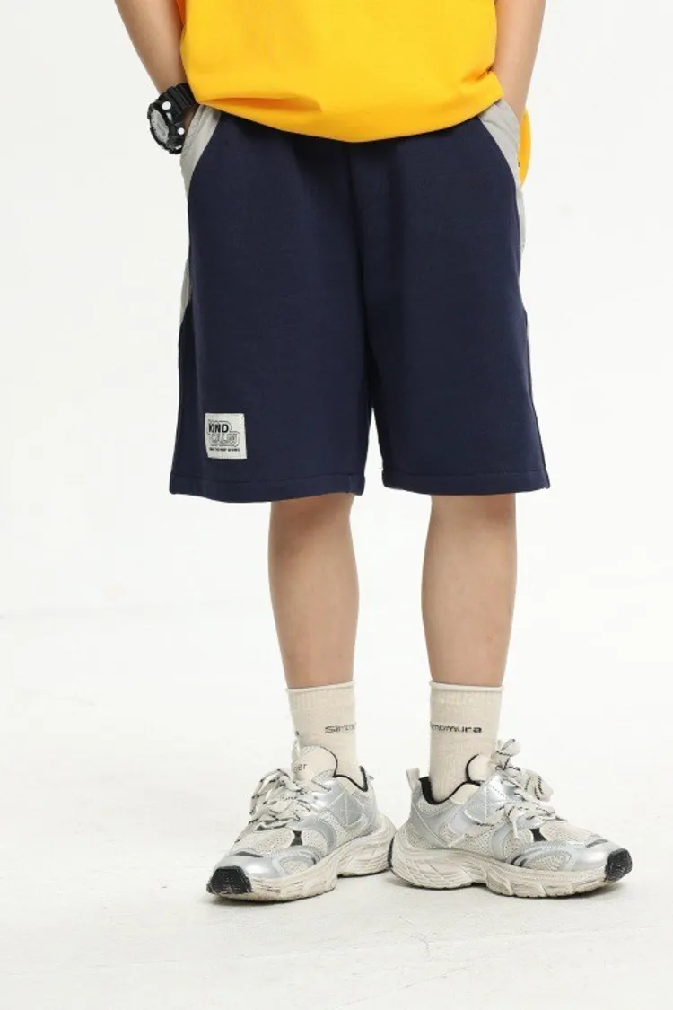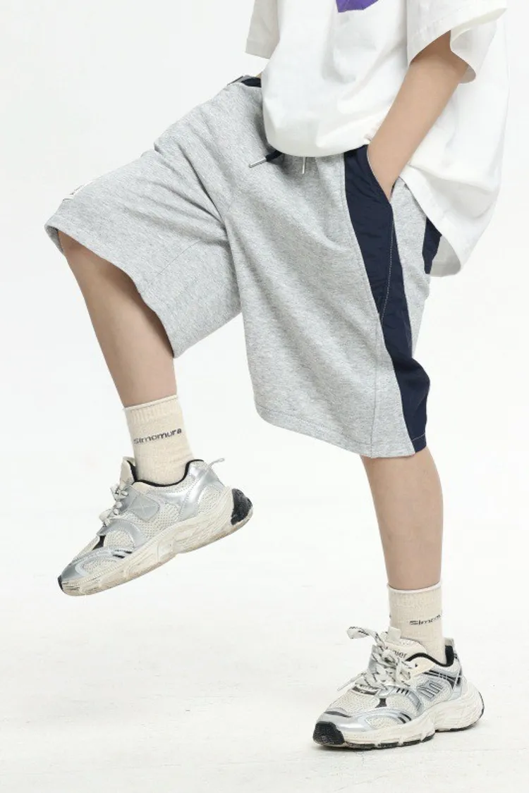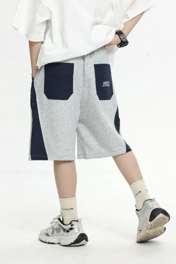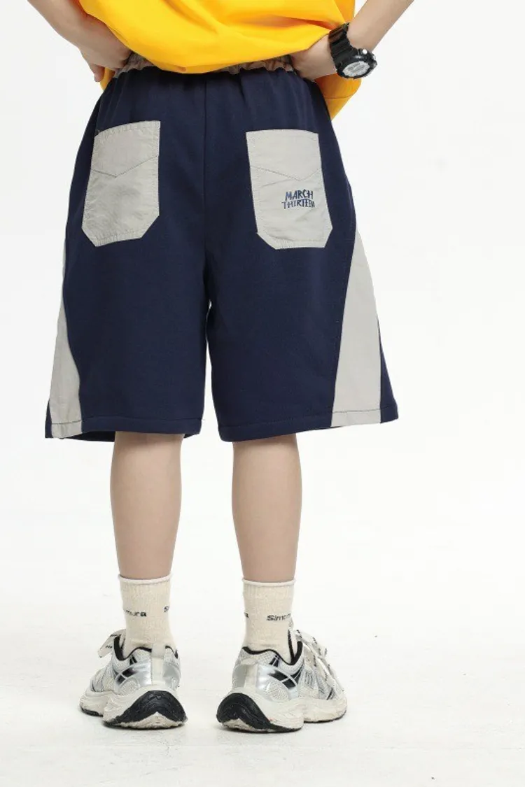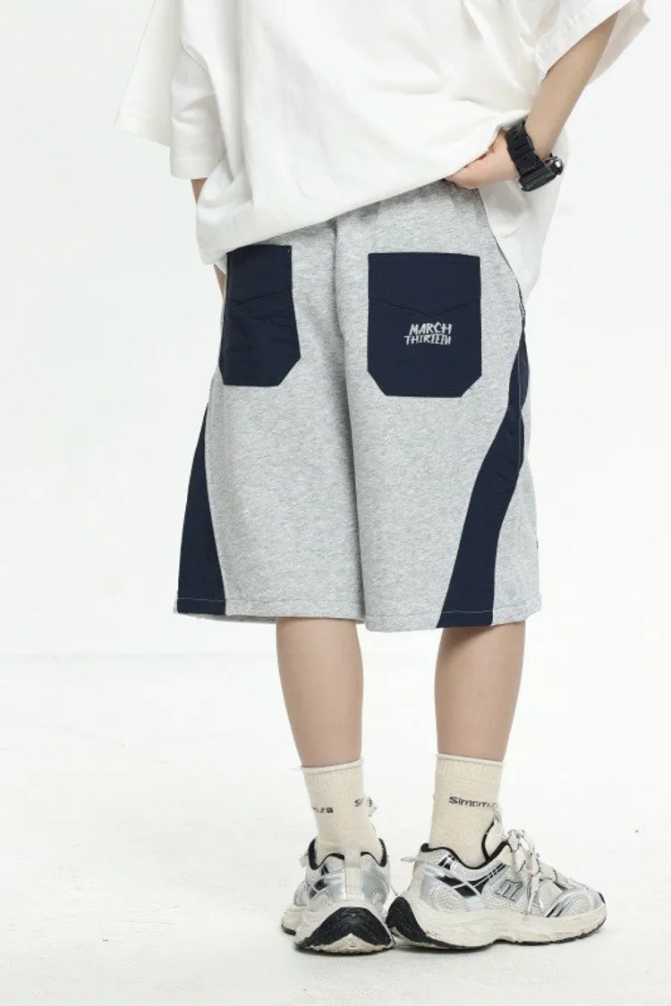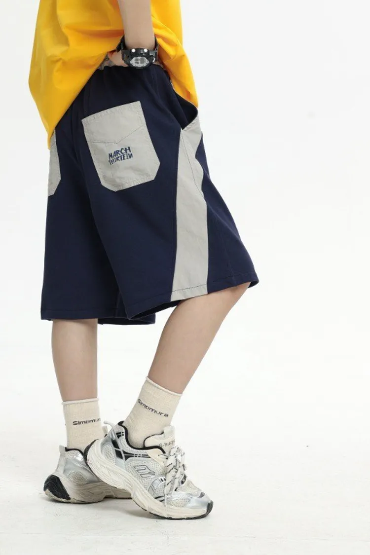 拼接撞色雙口袋全棉中褲