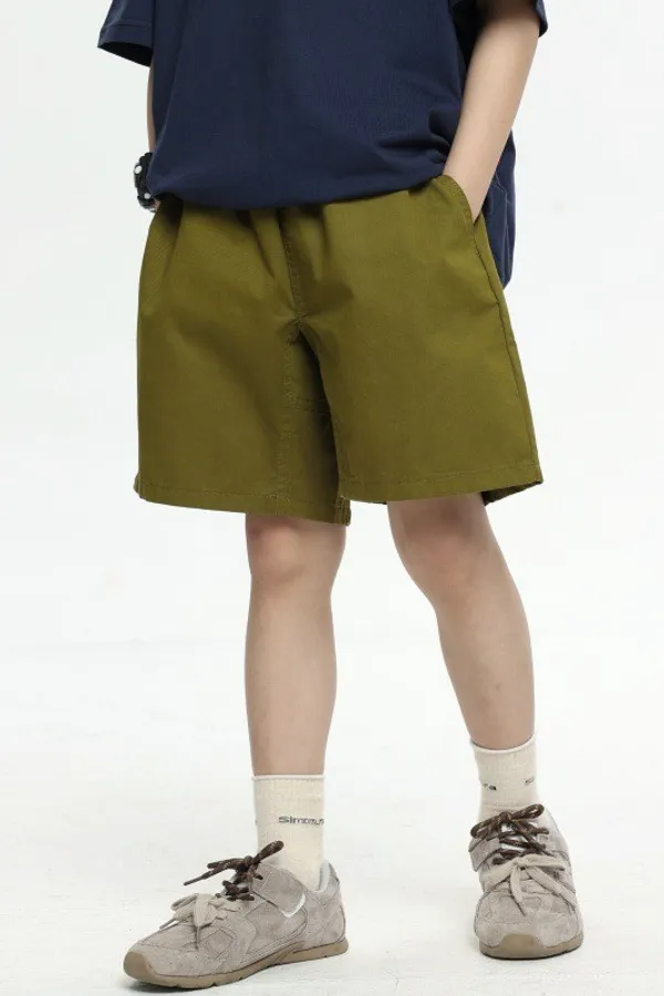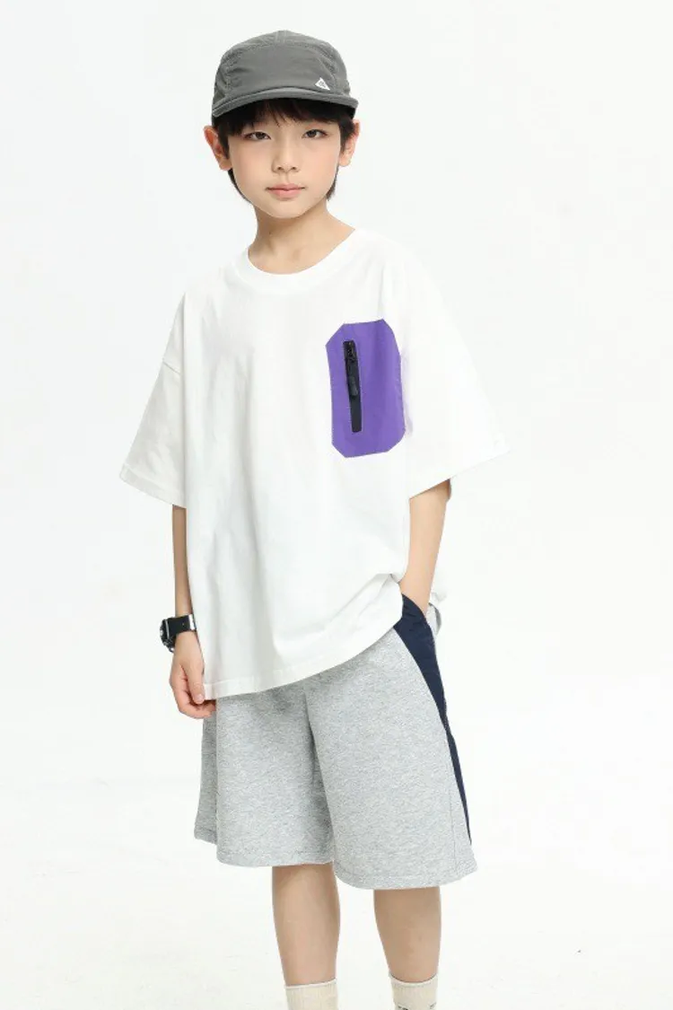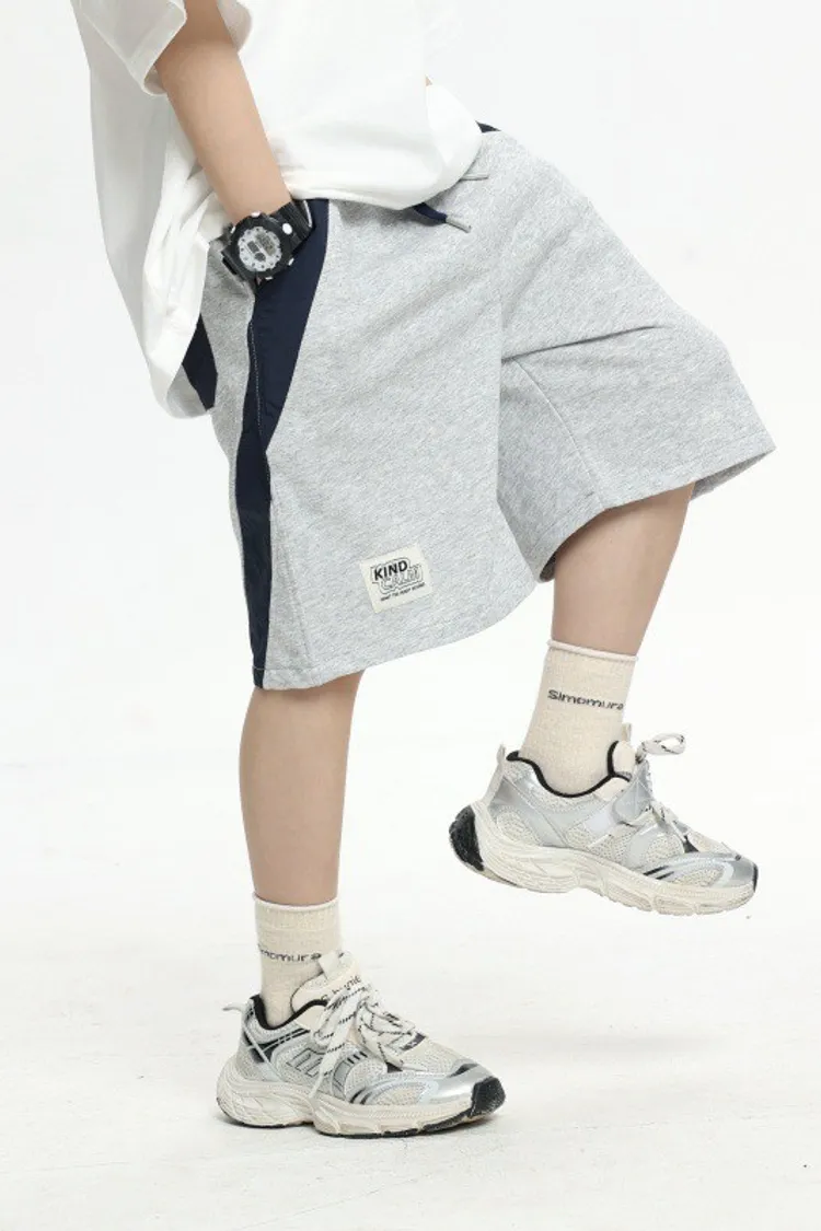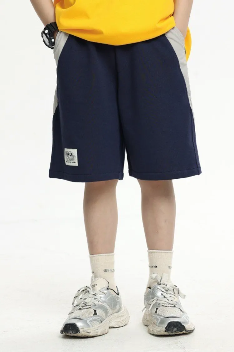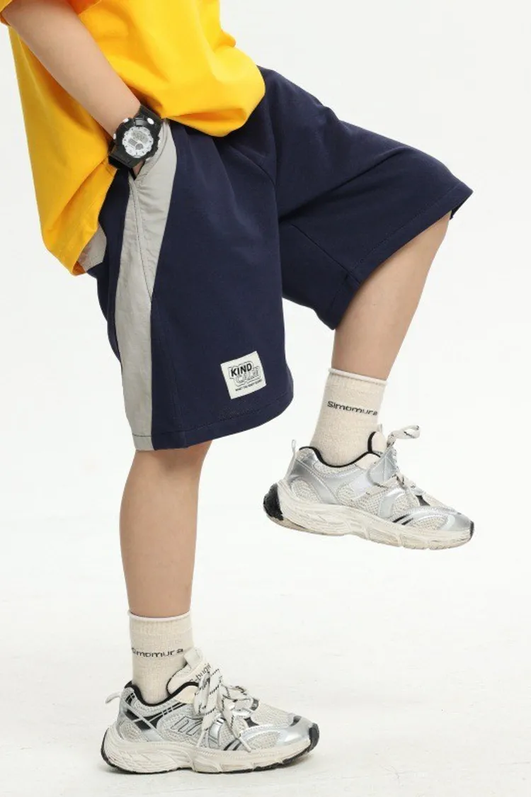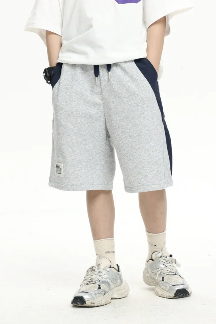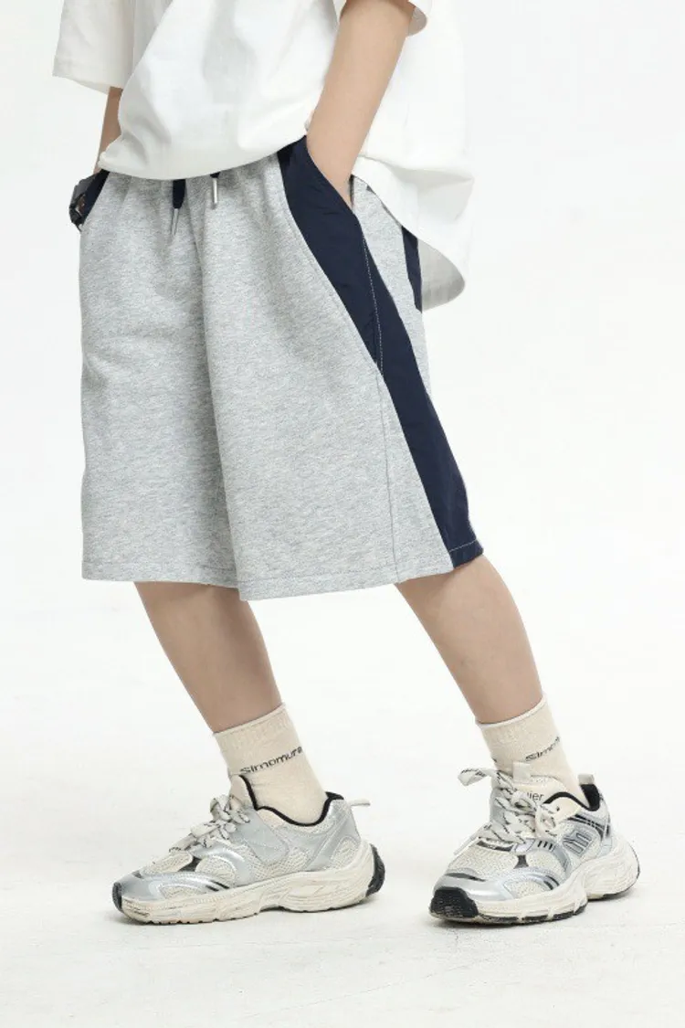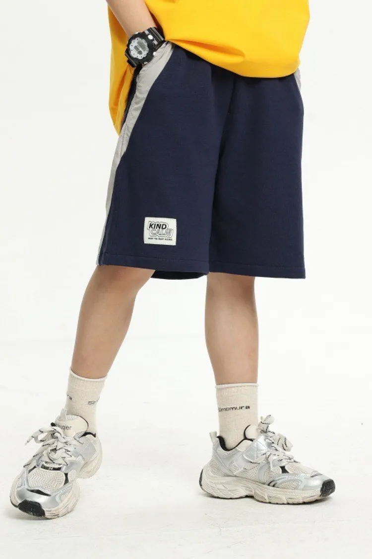 拼接撞色雙口袋全棉中褲