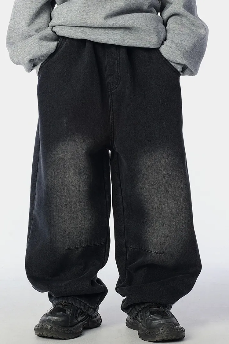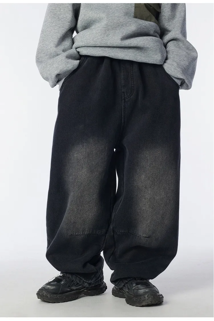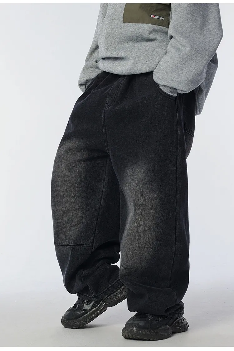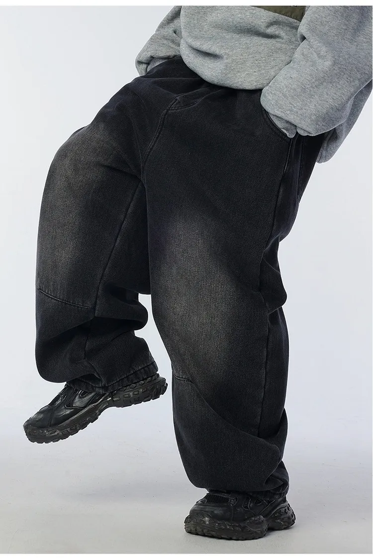 個性復古煙灰加絨牛仔褲