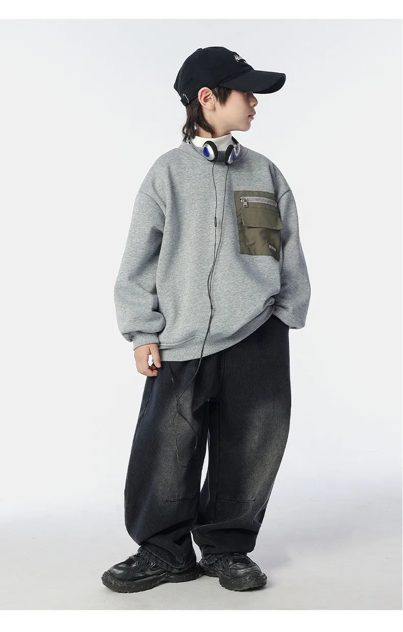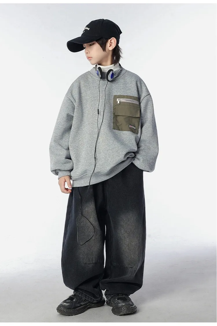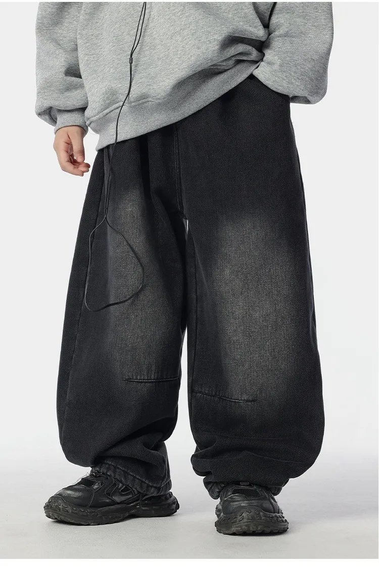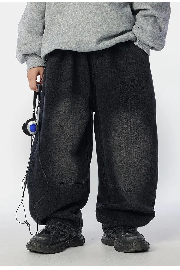 個性復古煙灰加絨牛仔褲