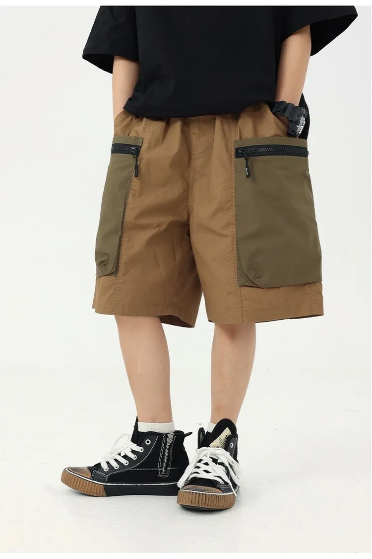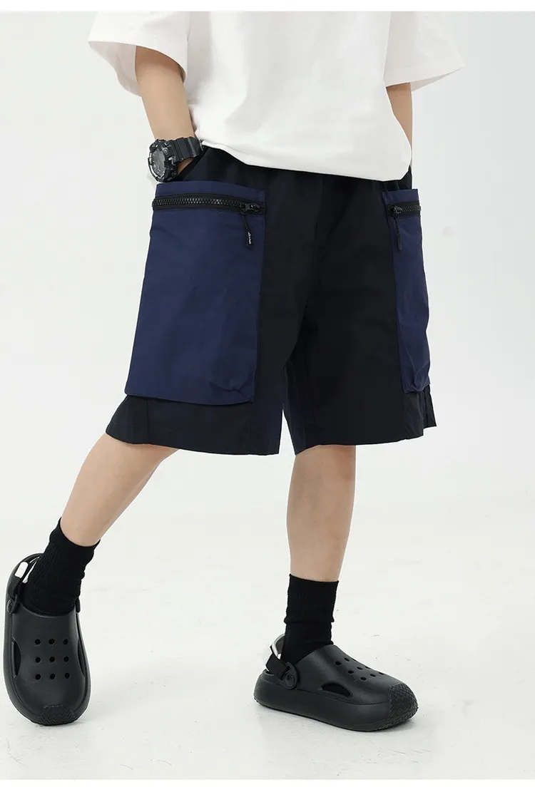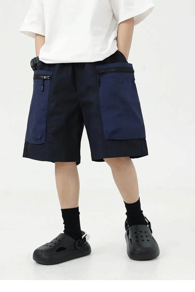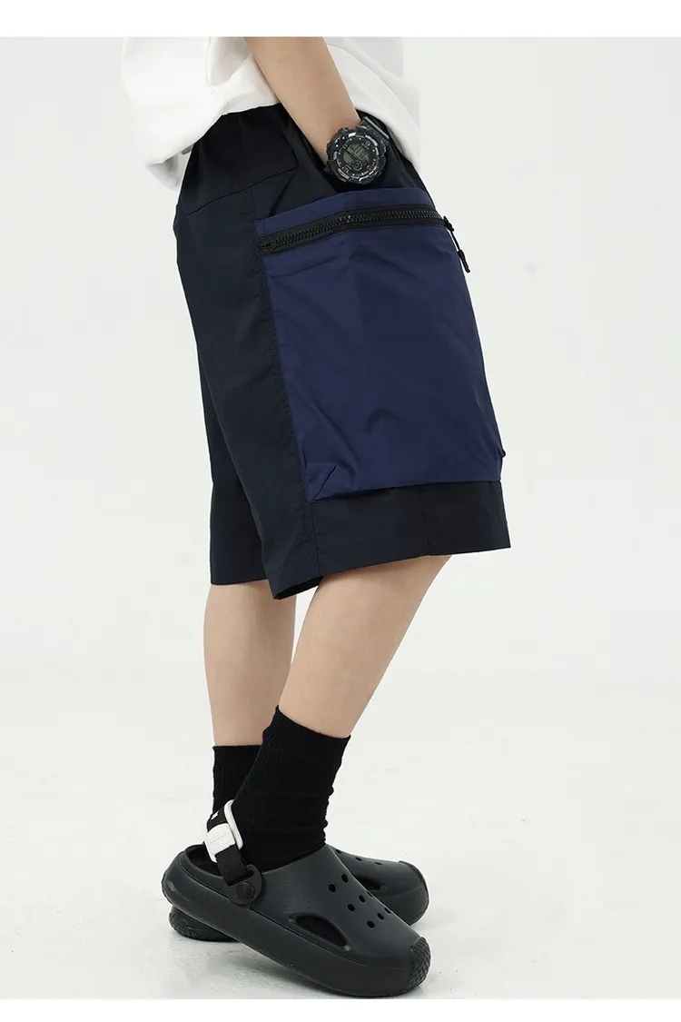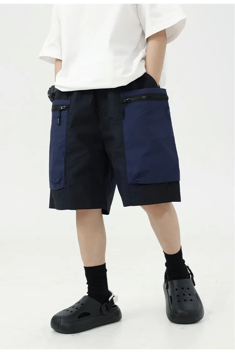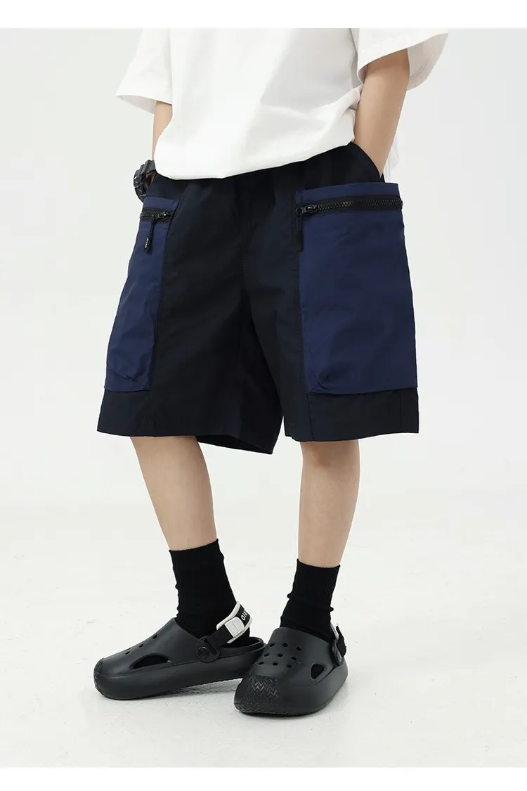 拼色大口袋個性工裝短褲