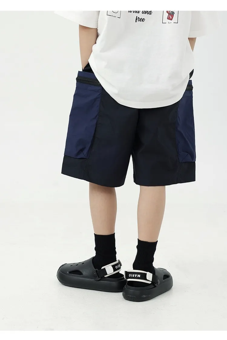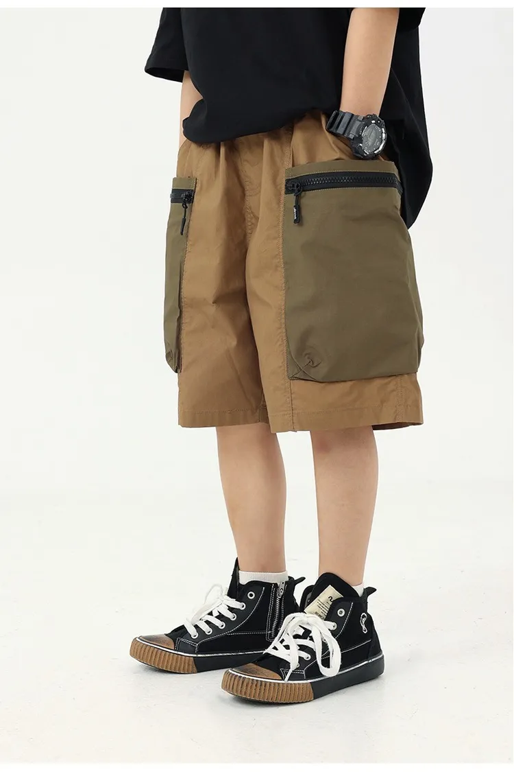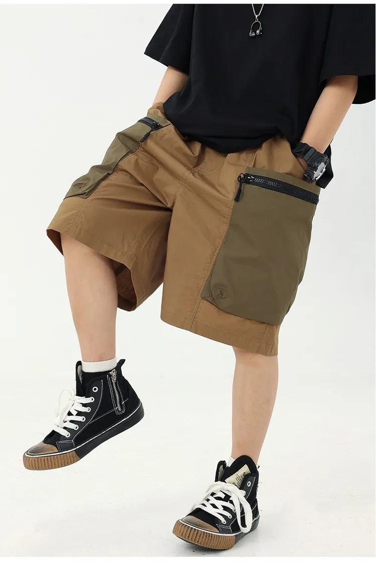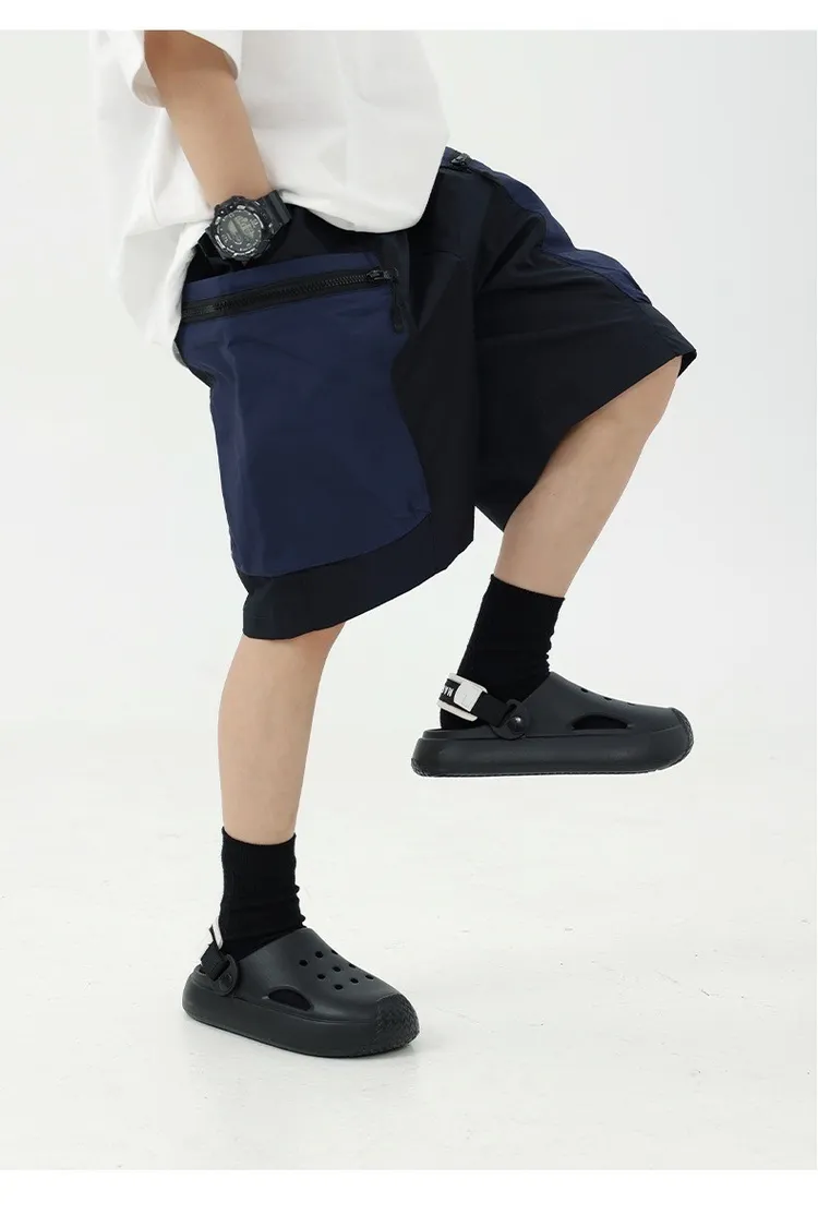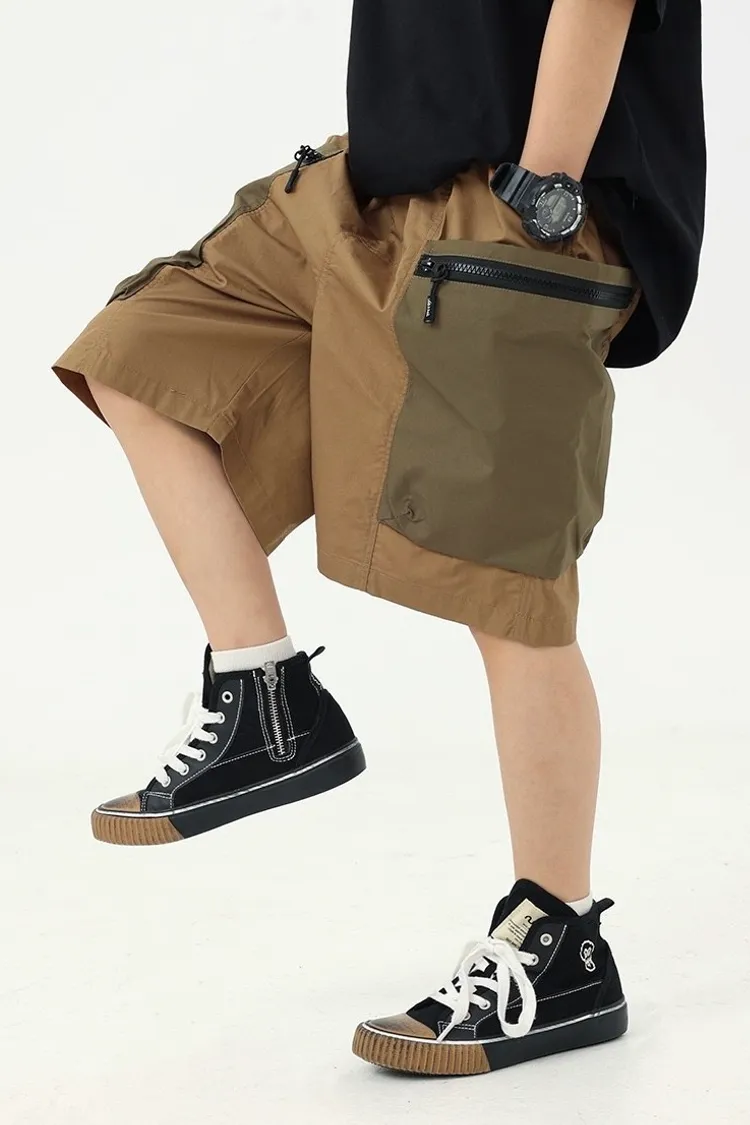 拼色大口袋個性工裝短褲