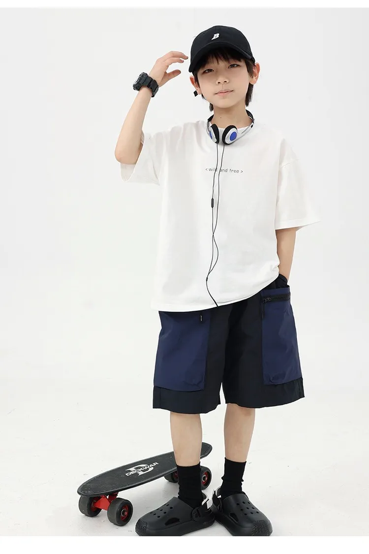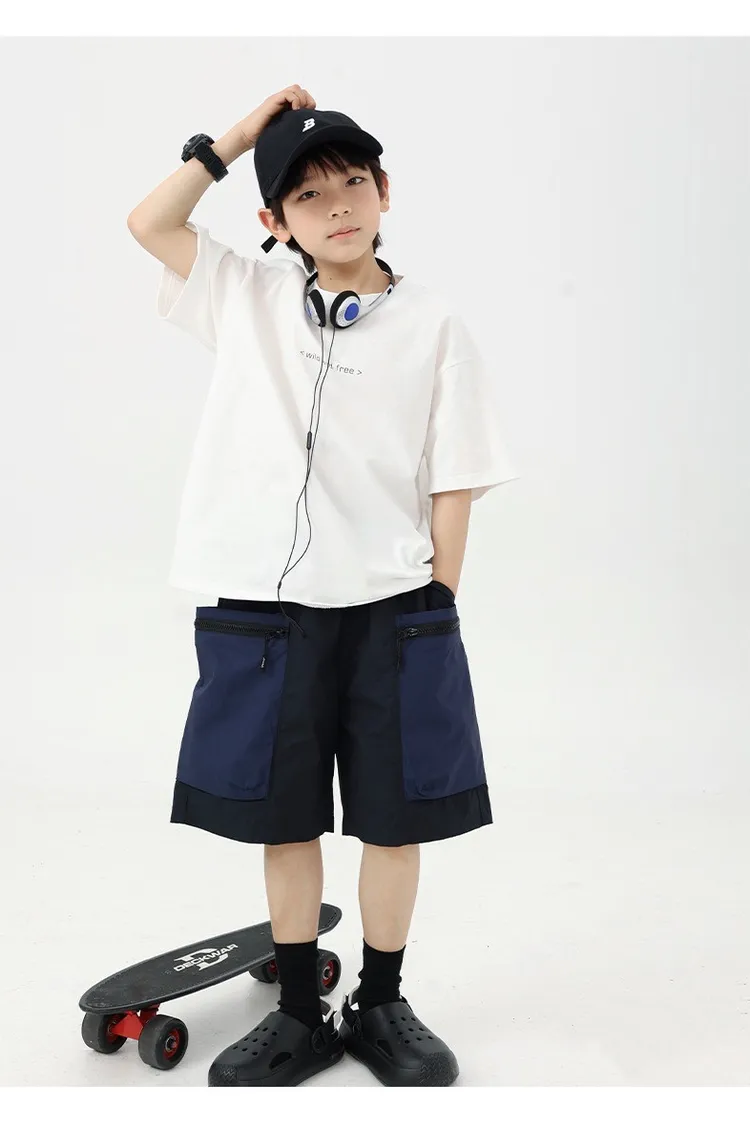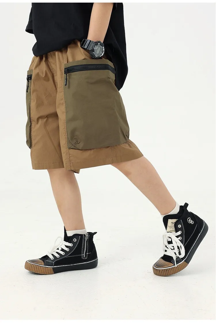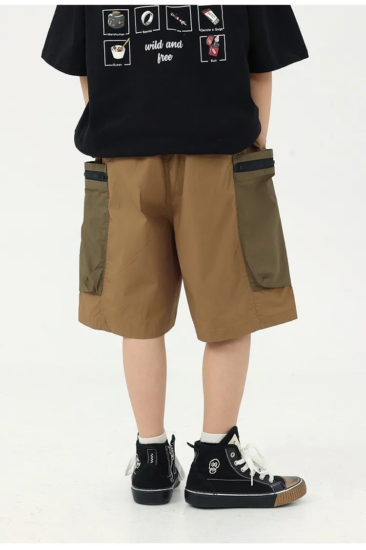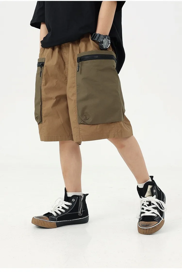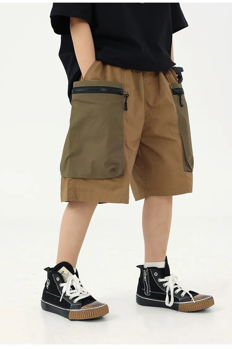 拼色大口袋個性工裝短褲