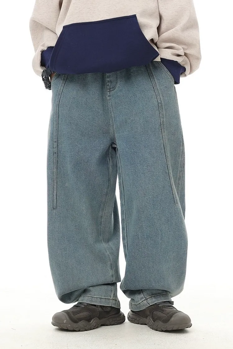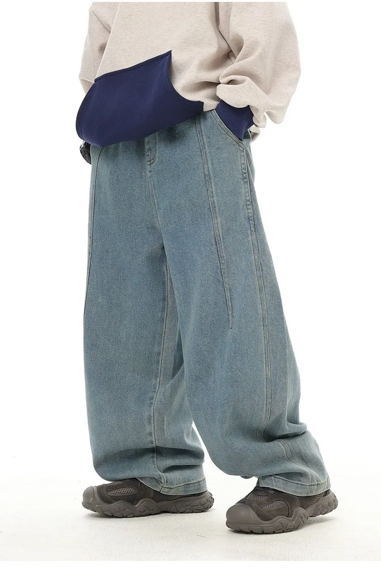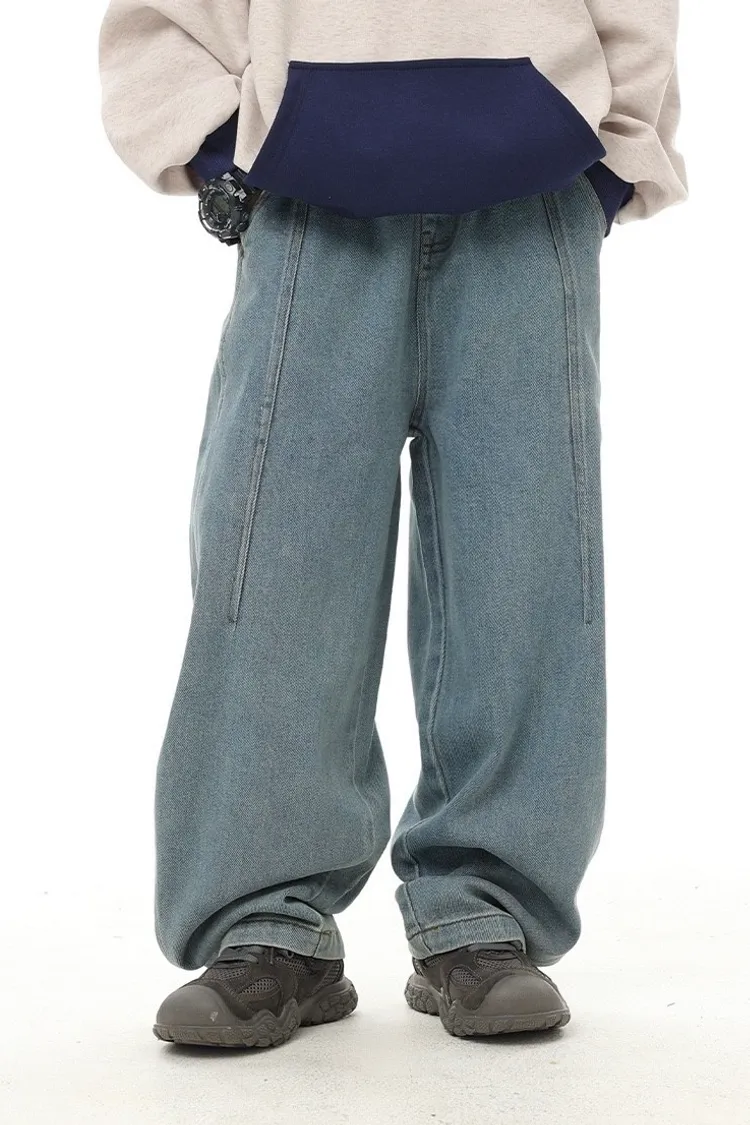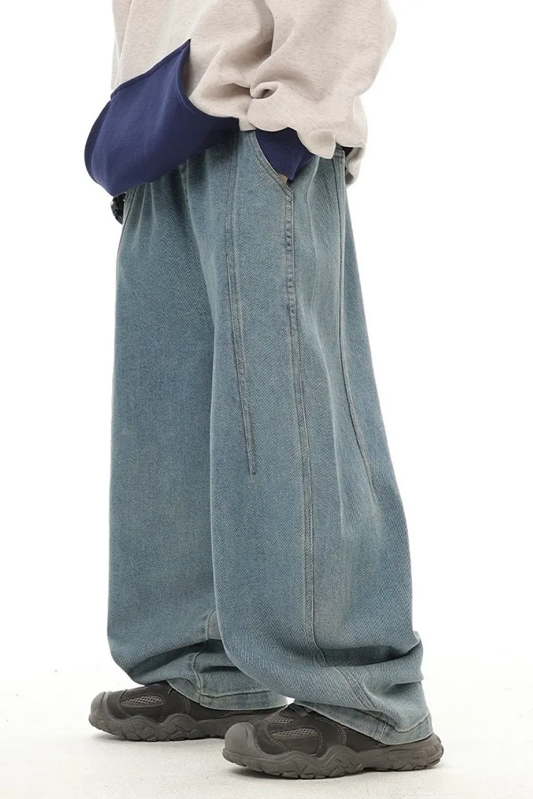 復古藍簡約柔感牛仔寬褲