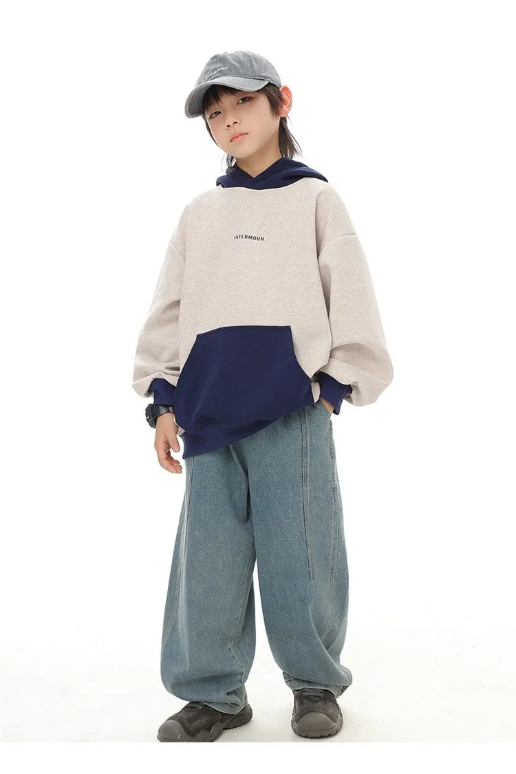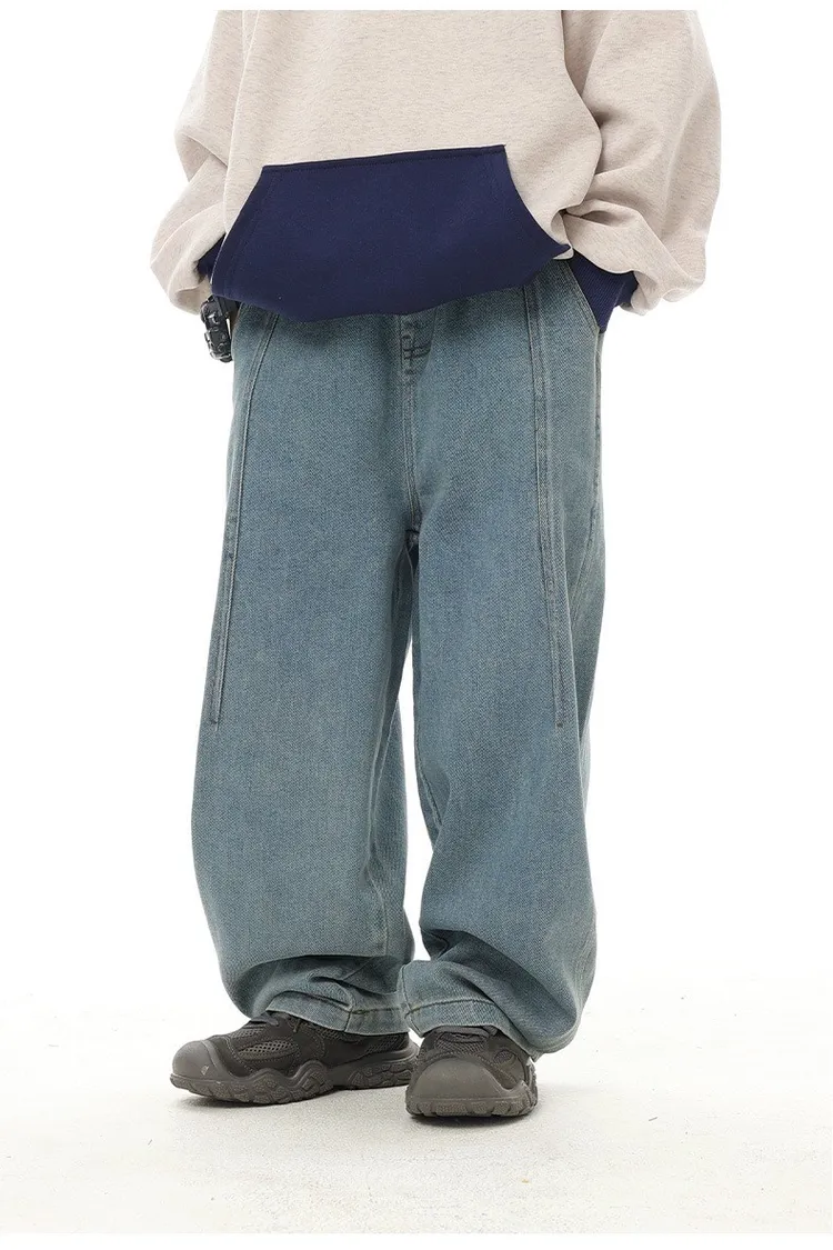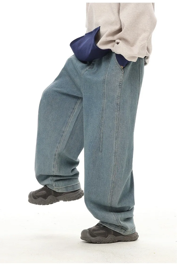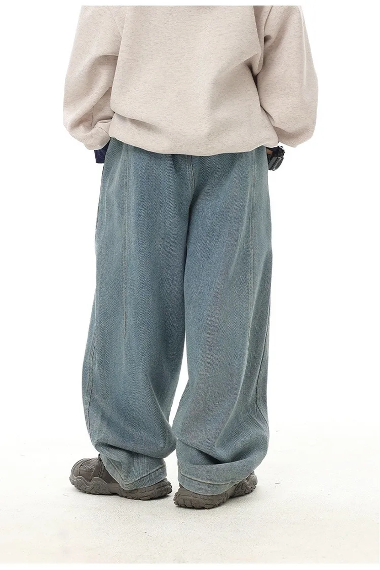 復古藍簡約柔感牛仔寬褲