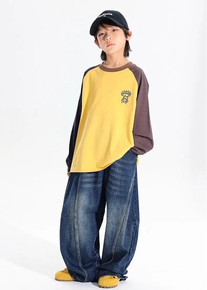 復古刷色彎刀寬鬆牛仔褲
