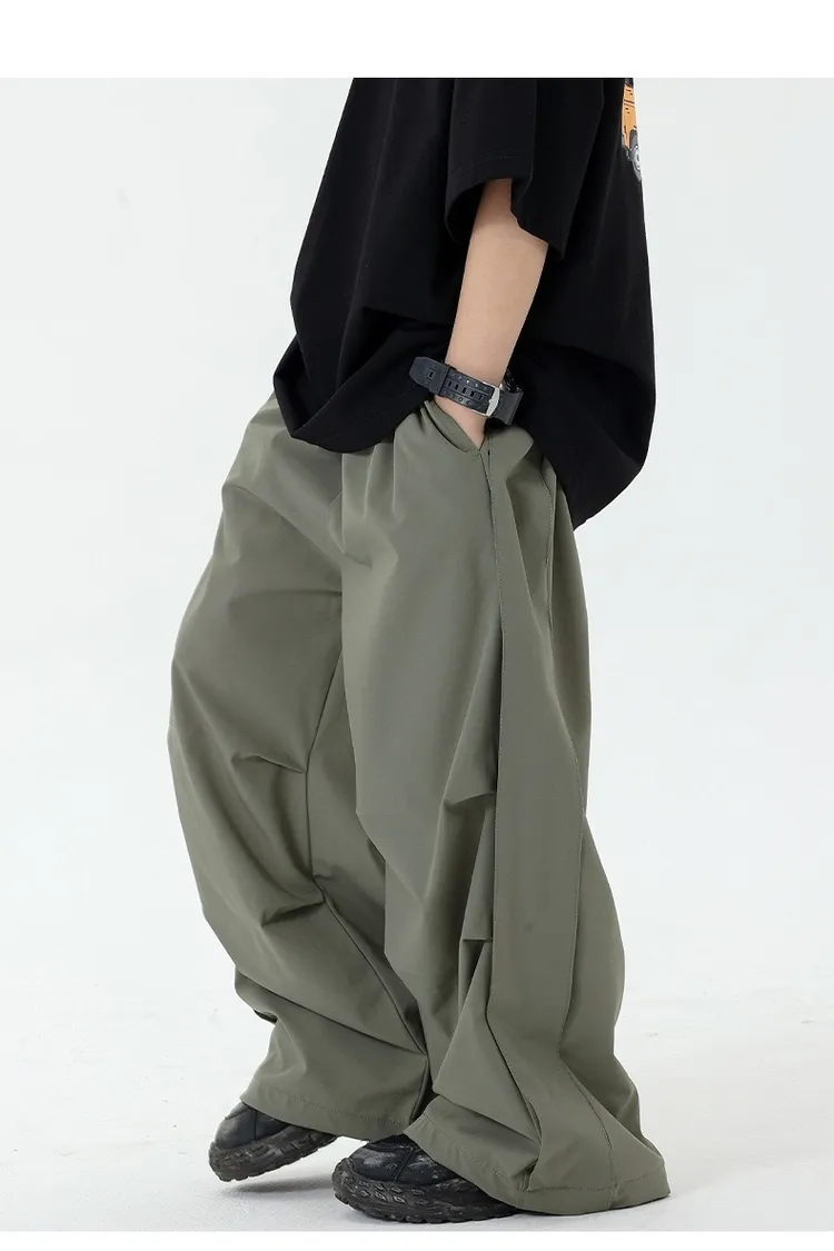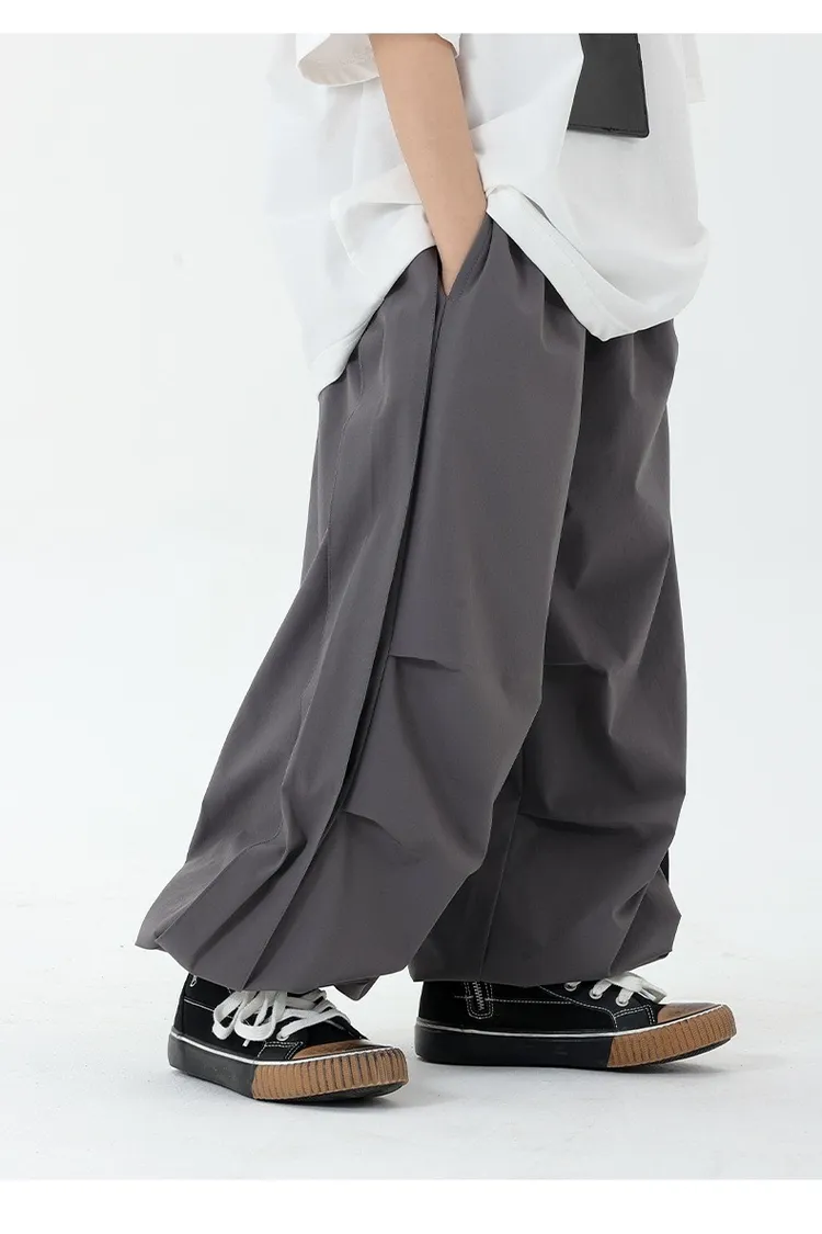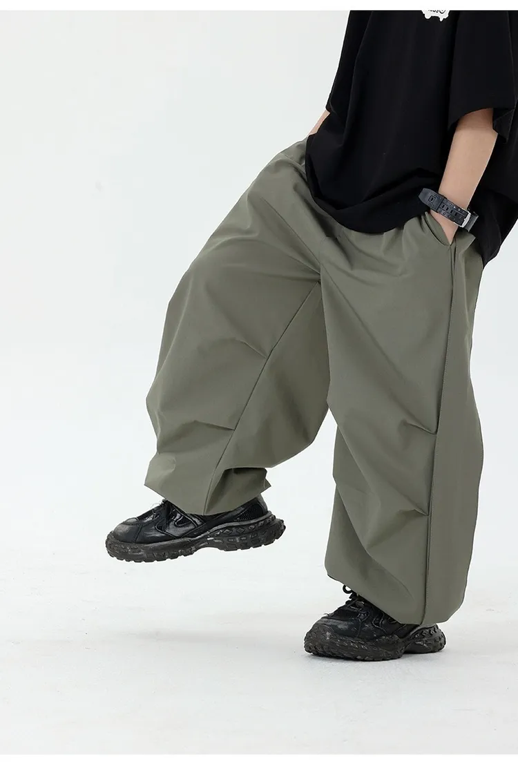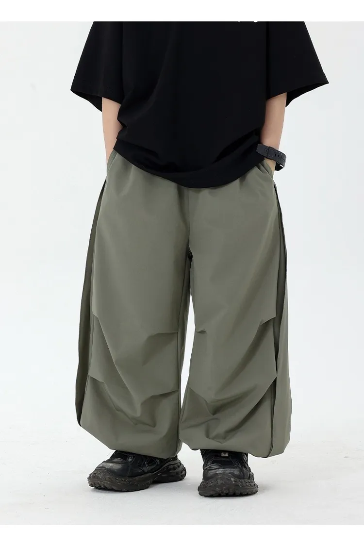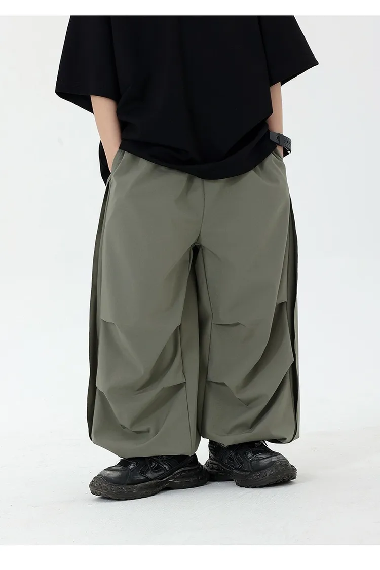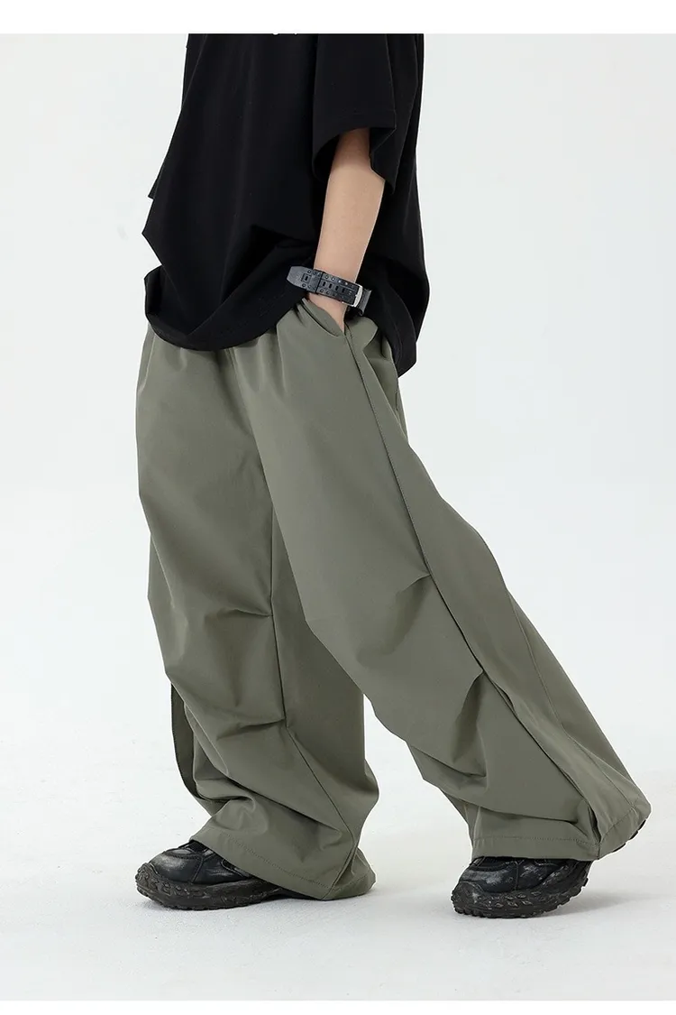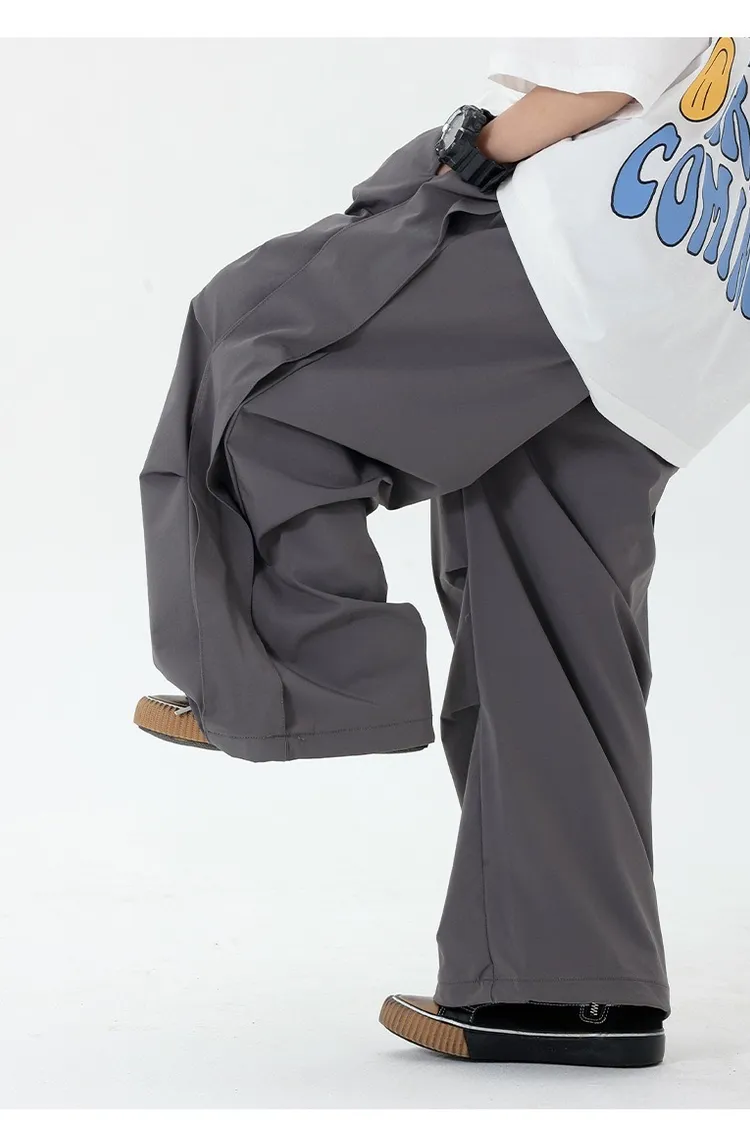皺褶感速乾直筒褲