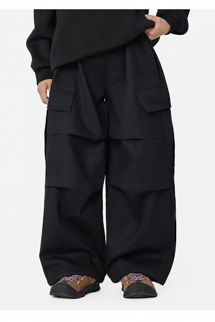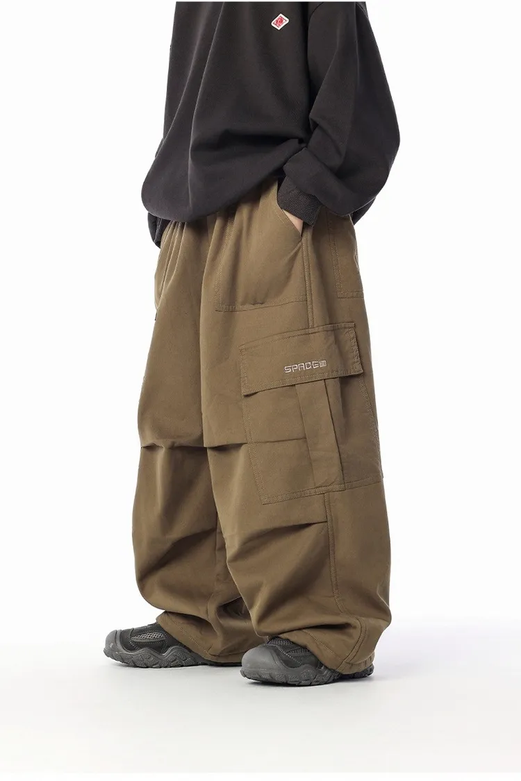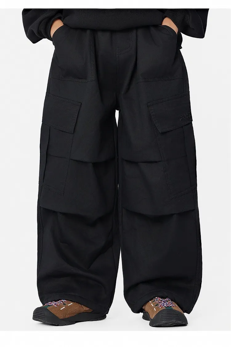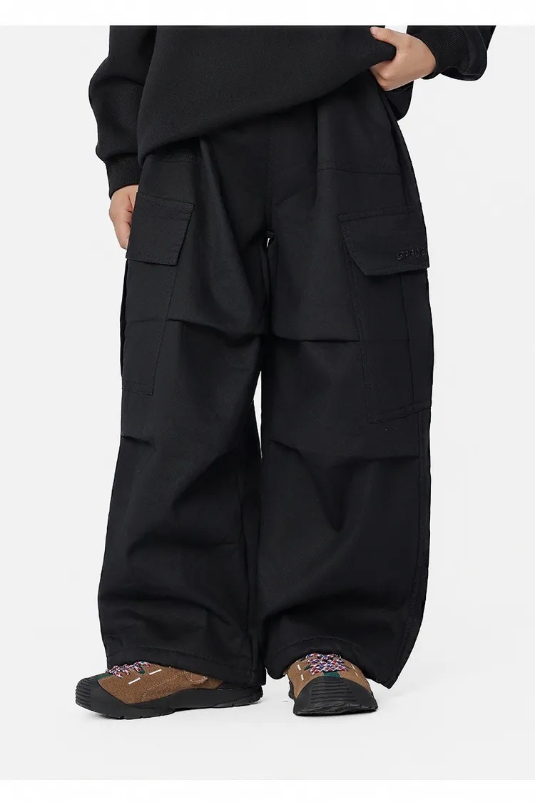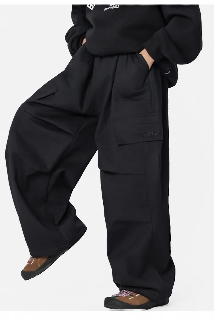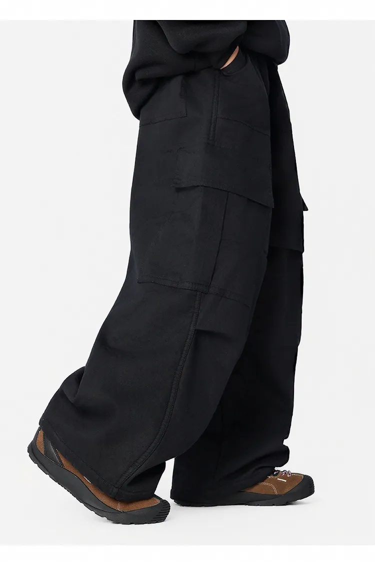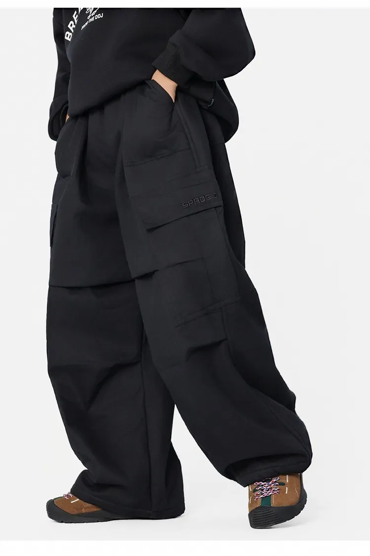 貼袋打褶水洗棉加絨工裝褲