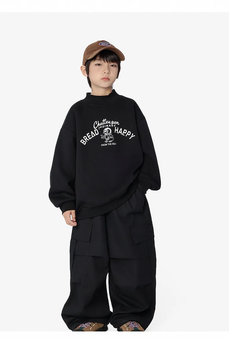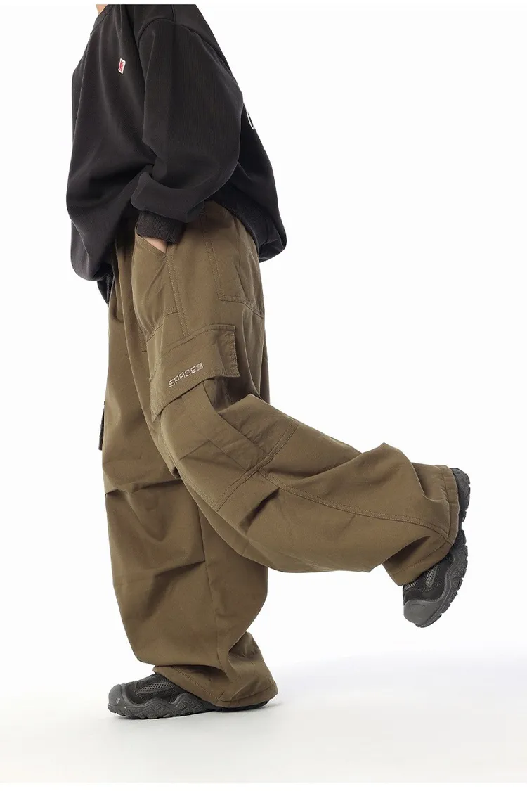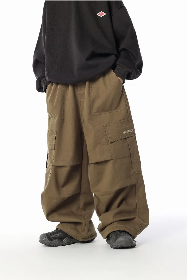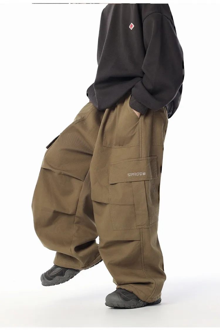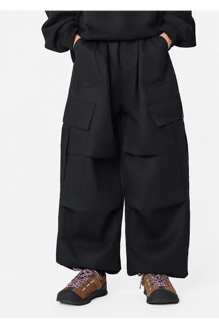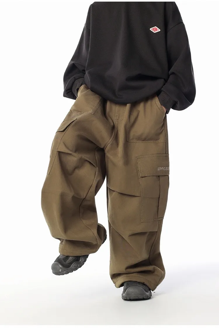 貼袋打褶水洗棉加絨工裝褲