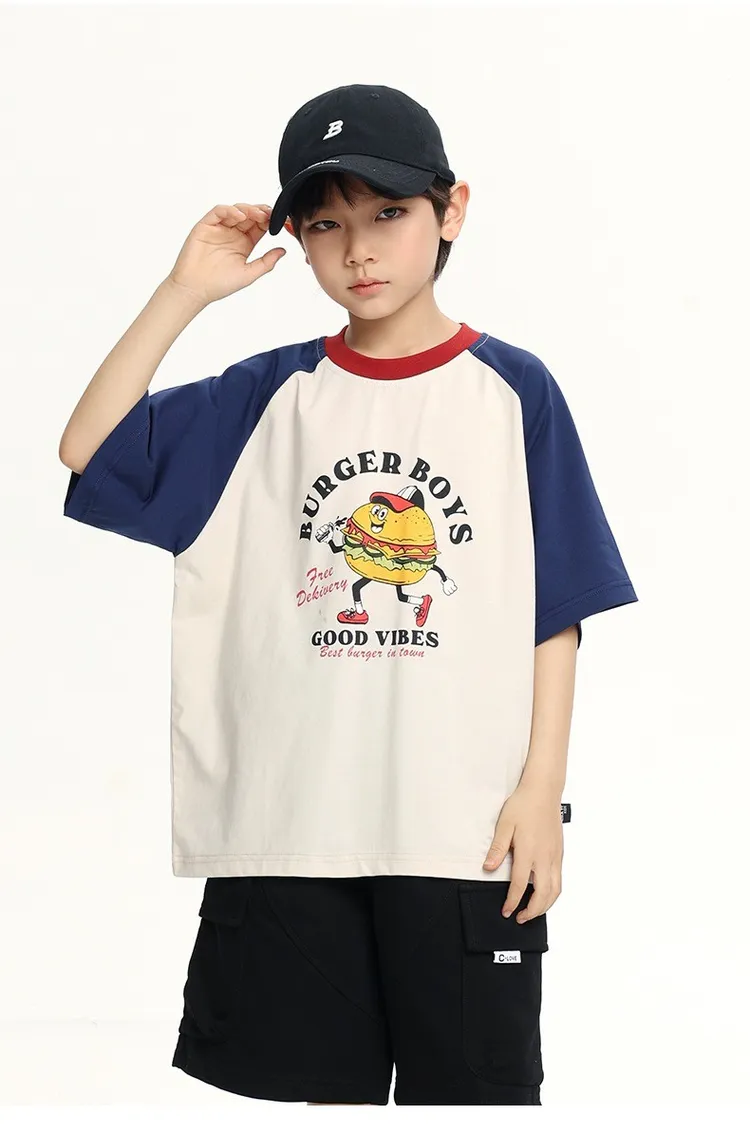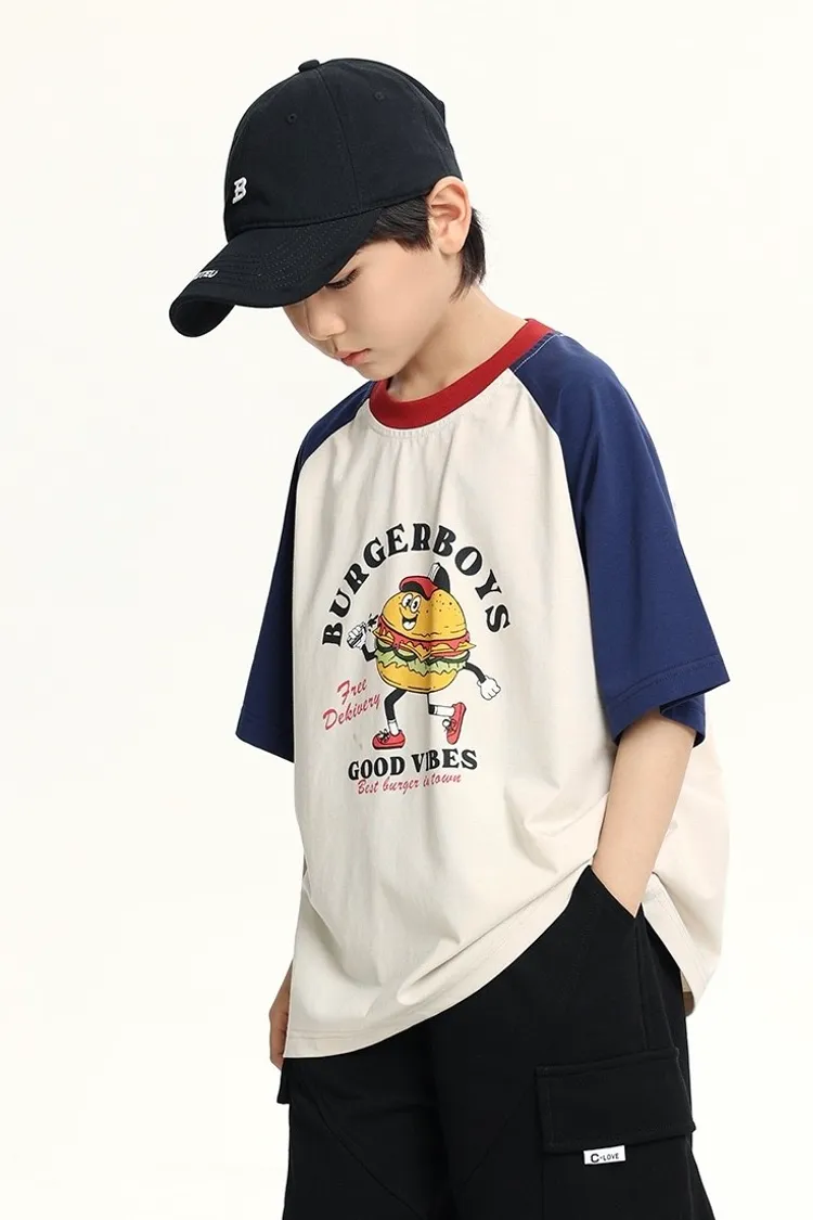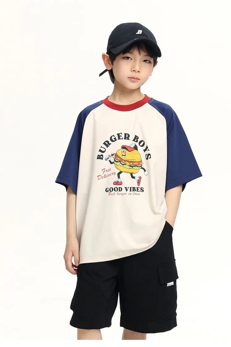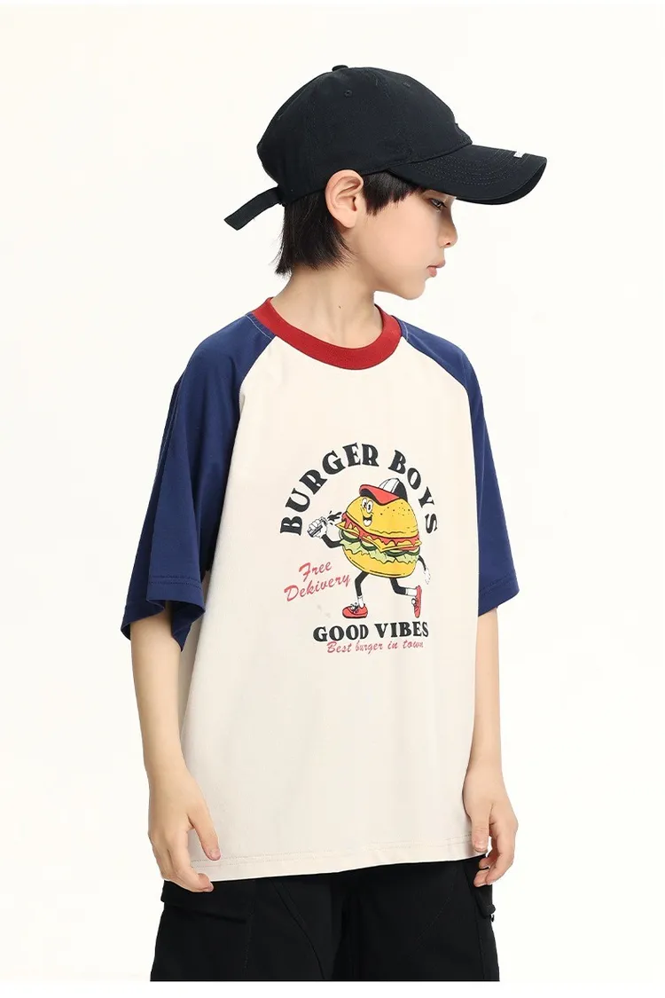 趣味漢堡印花插肩袖冰感TEE