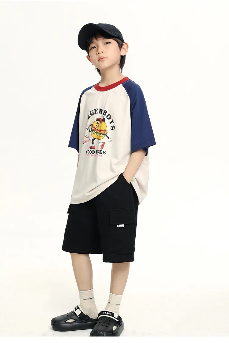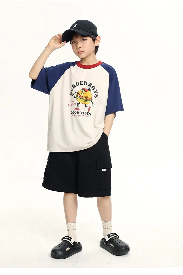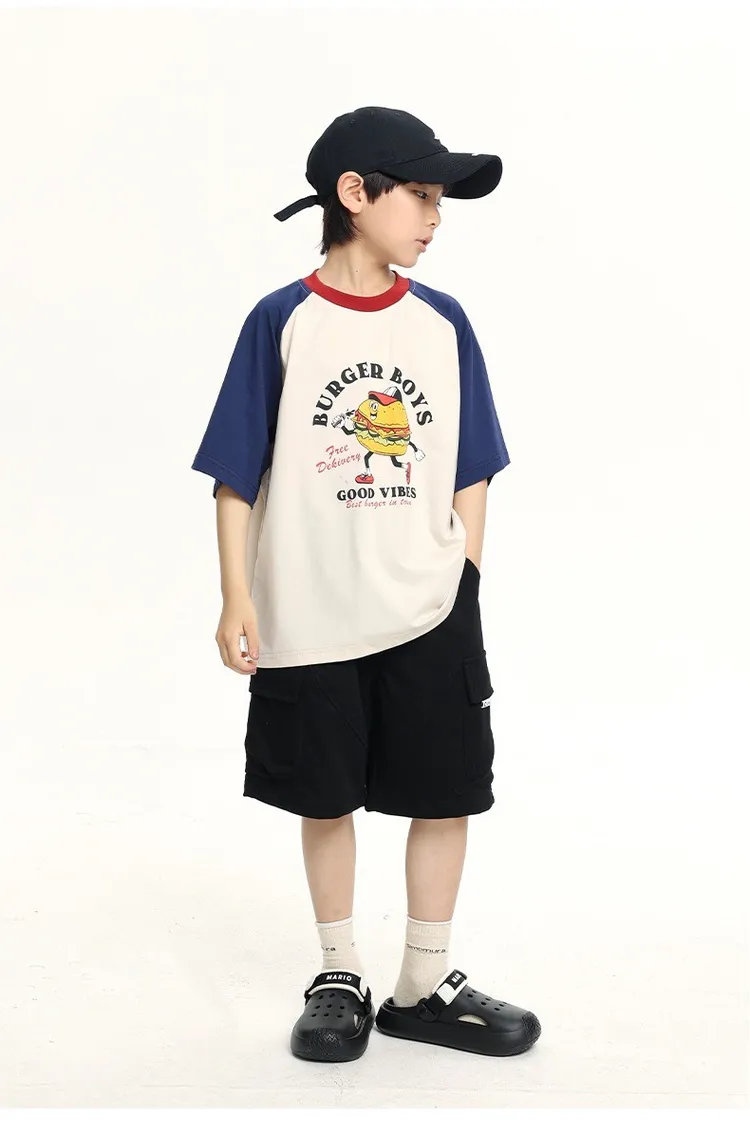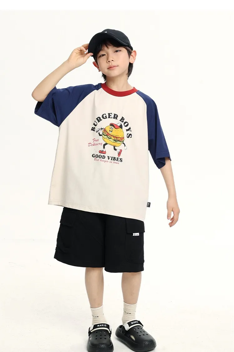 趣味漢堡印花插肩袖冰感TEE