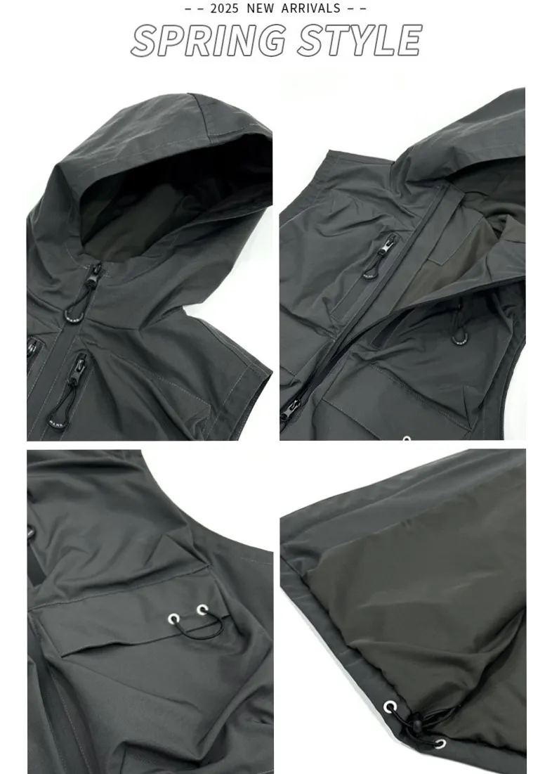 多口袋機能工裝連帽背心