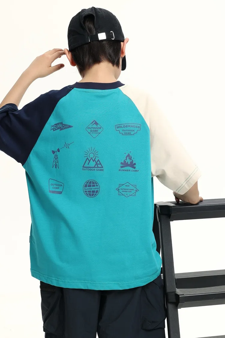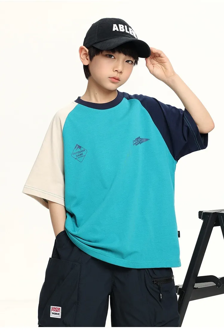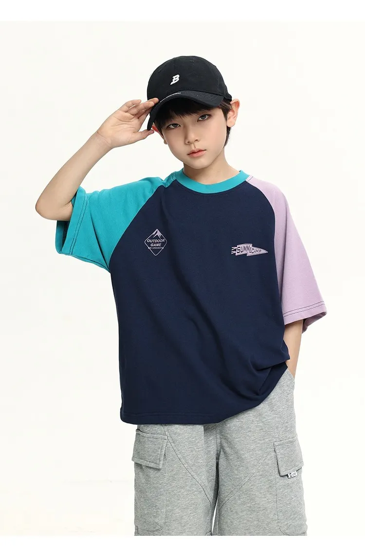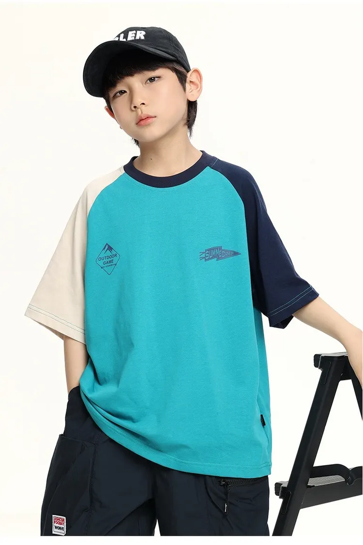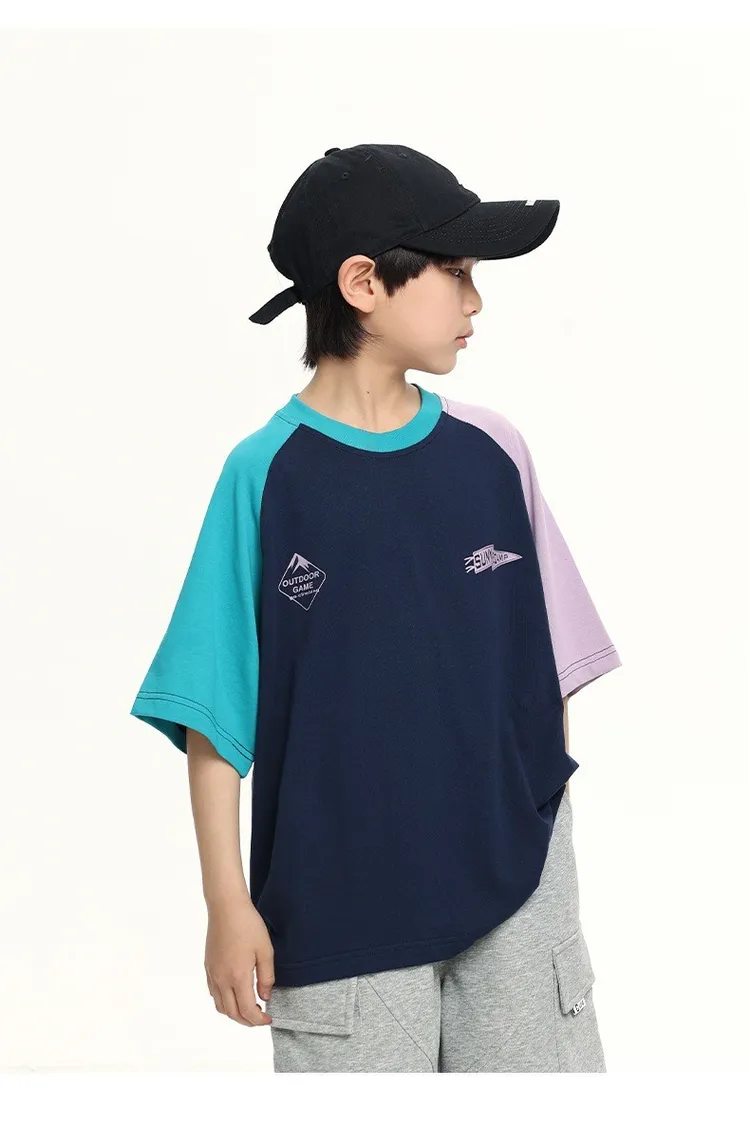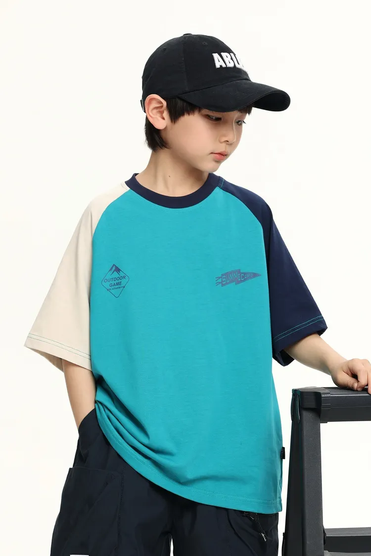 拼色袖小標插肩袖爽滑棉TEE