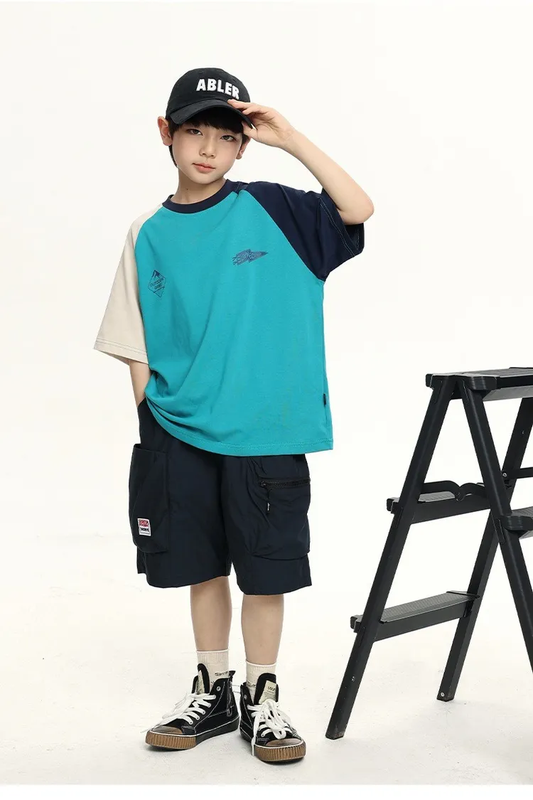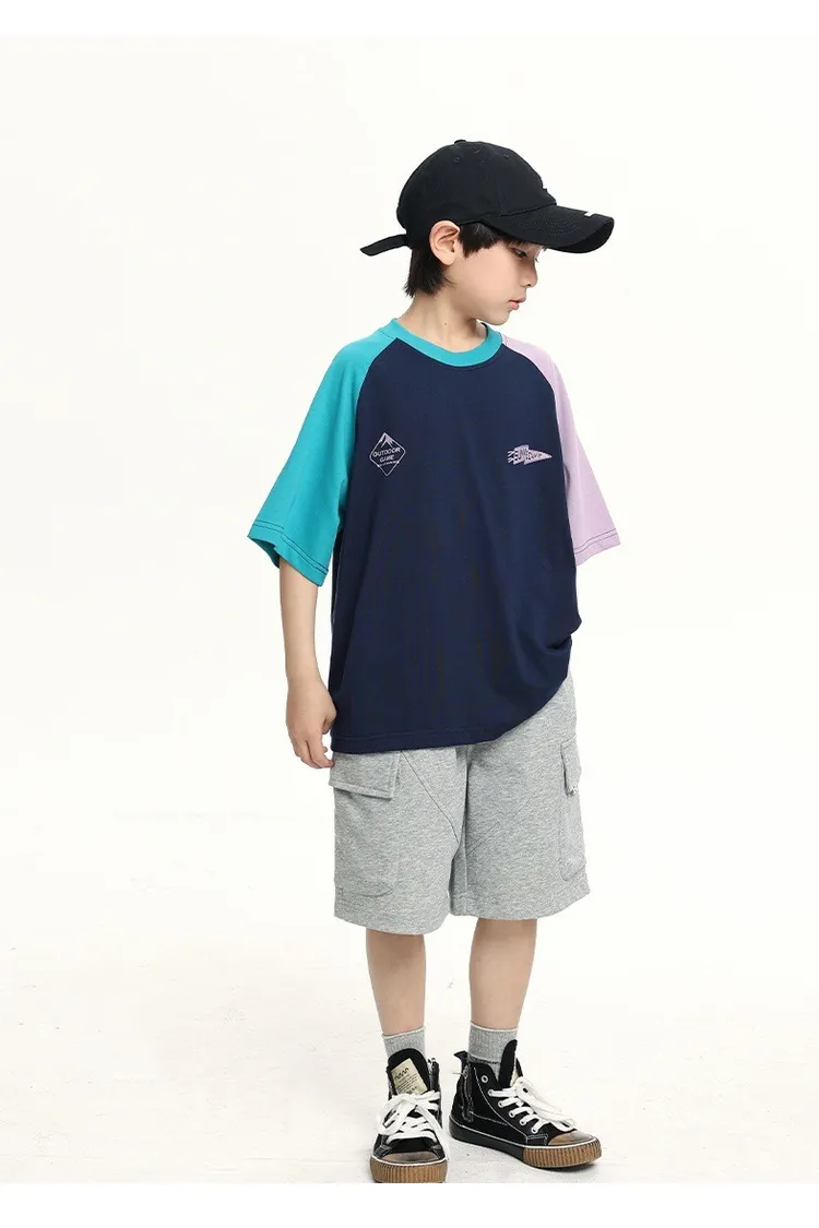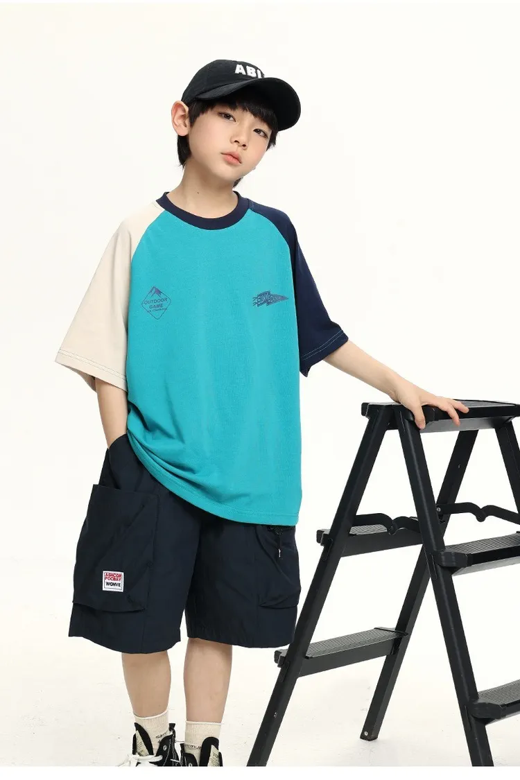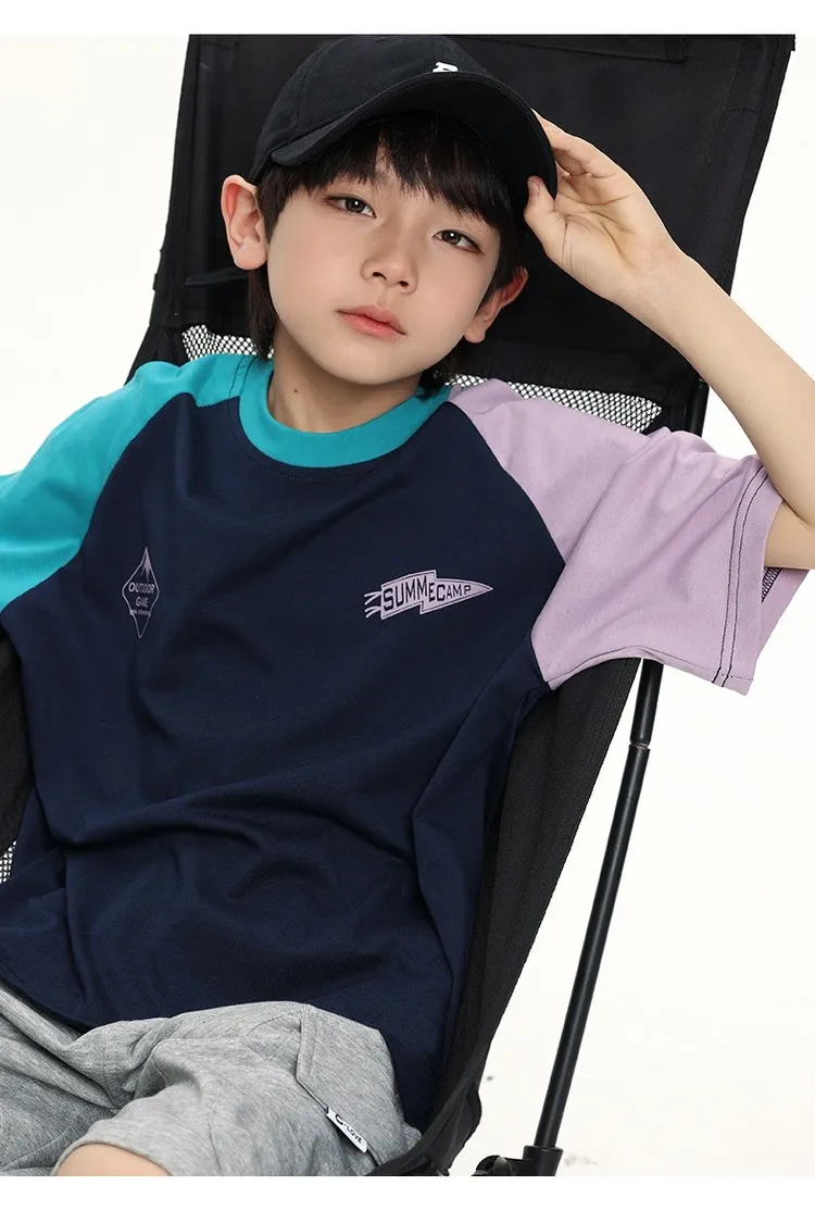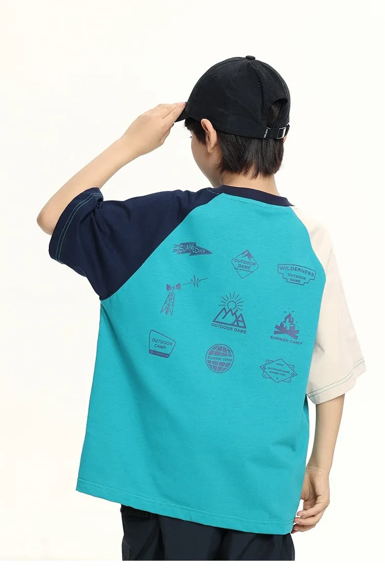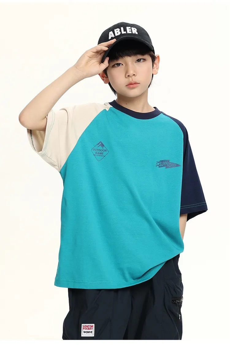 拼色袖小標插肩袖爽滑棉TEE