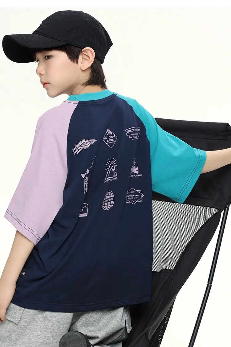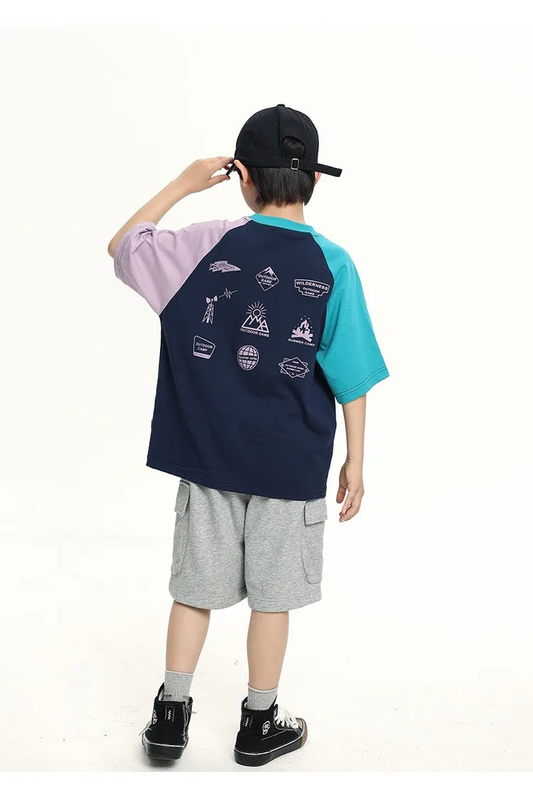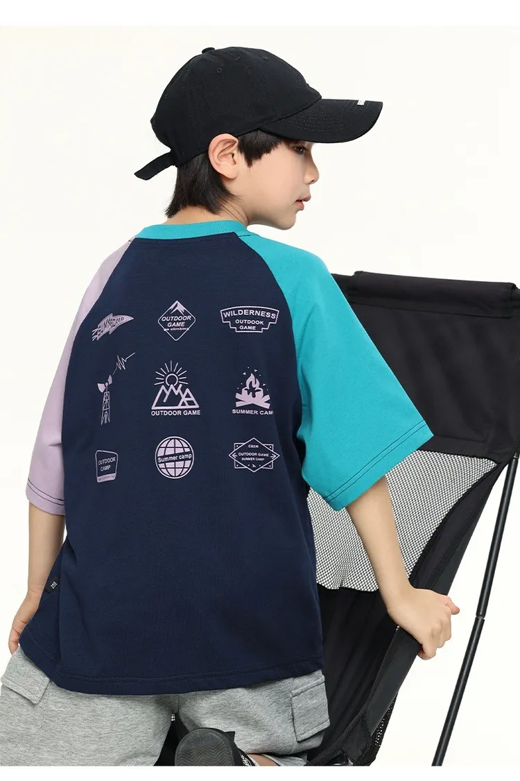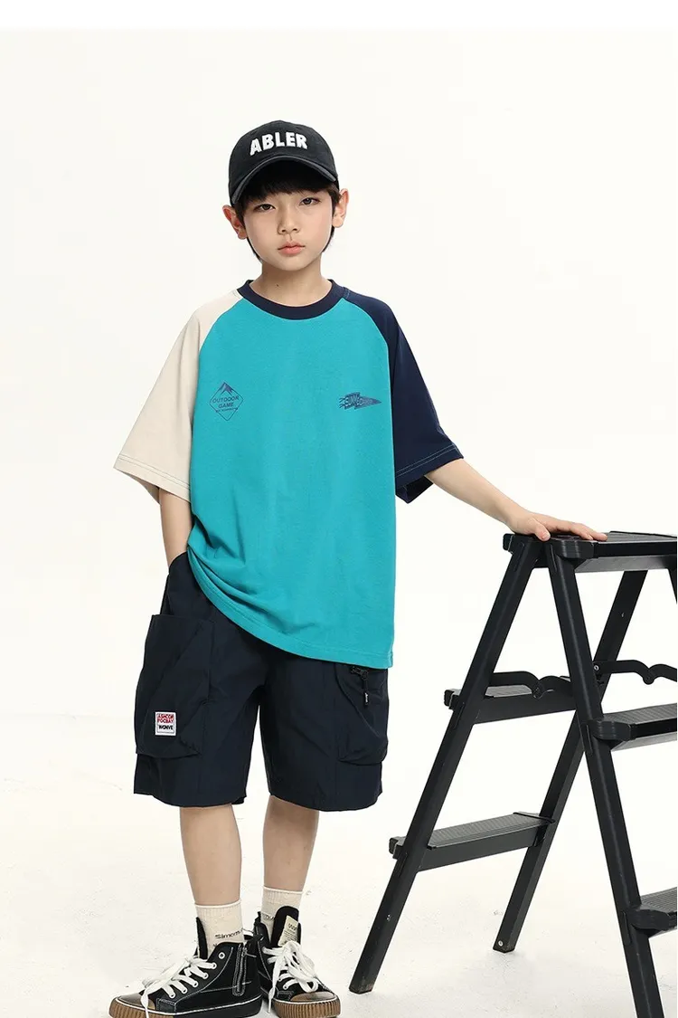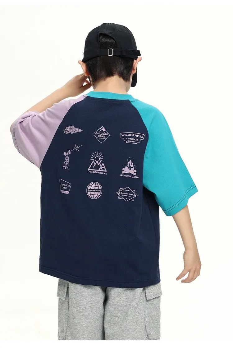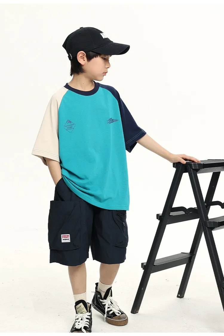 拼色袖小標插肩袖爽滑棉TEE