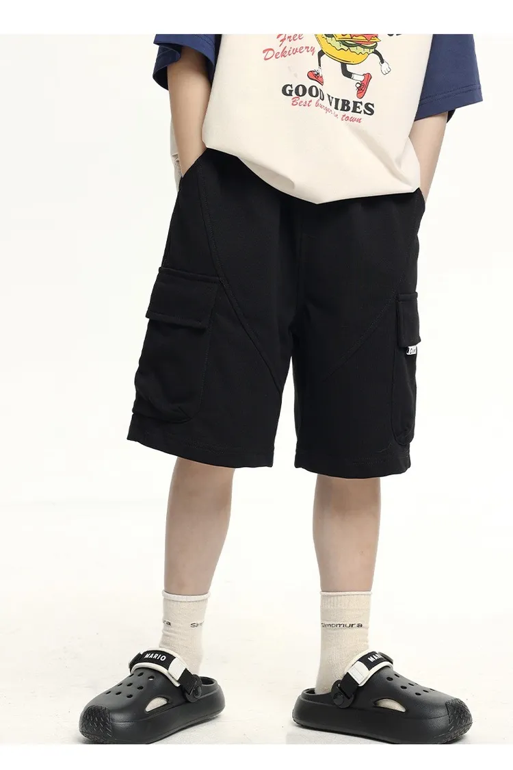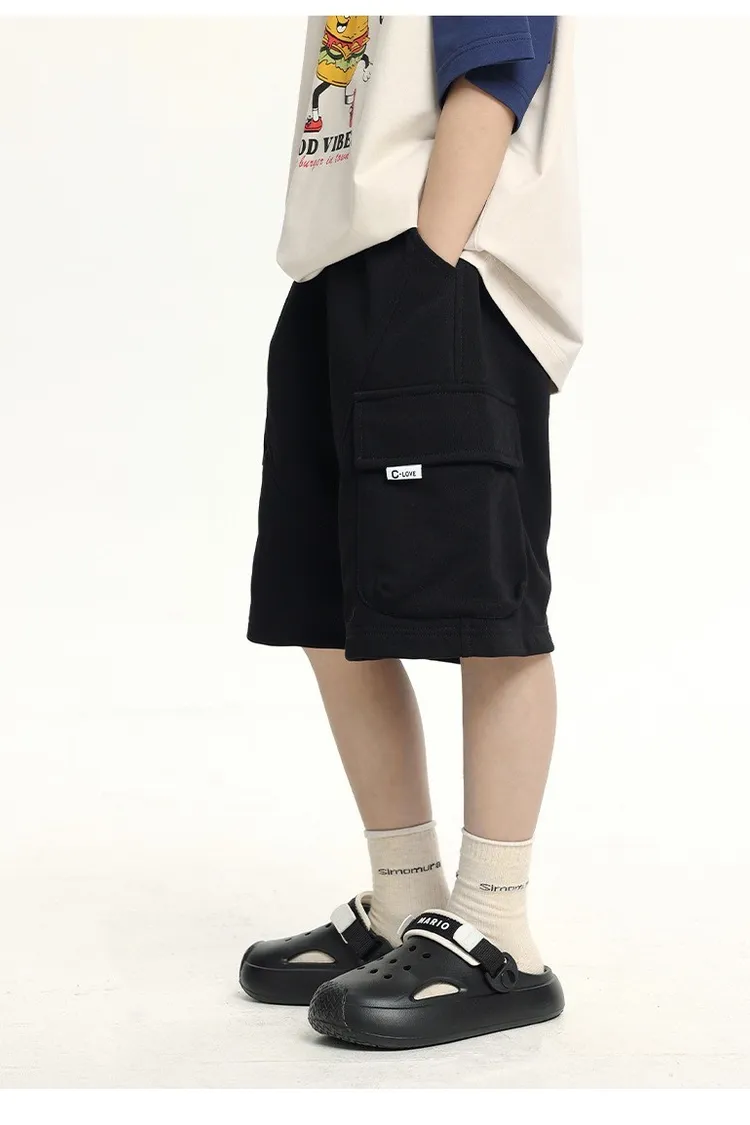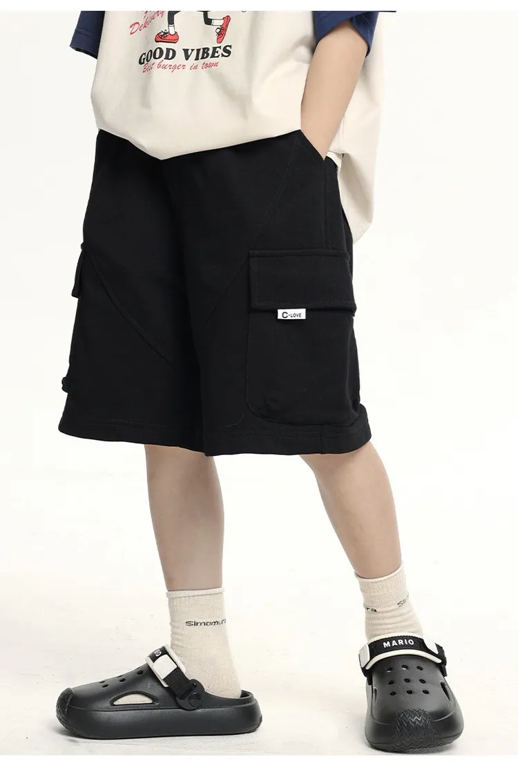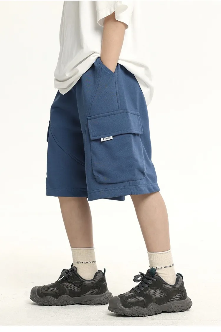 三色大口袋休閒運動五分褲