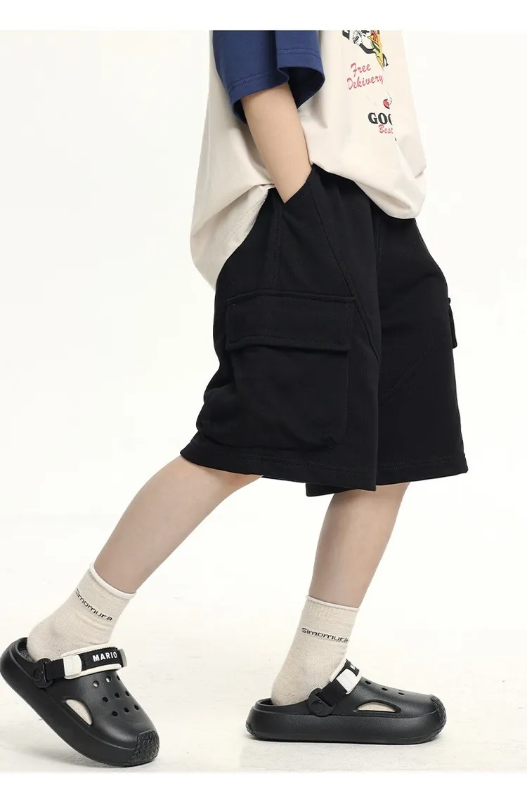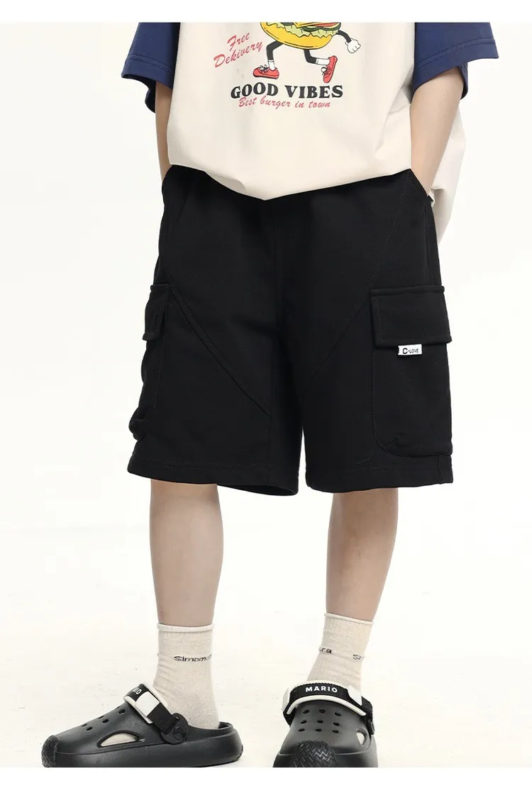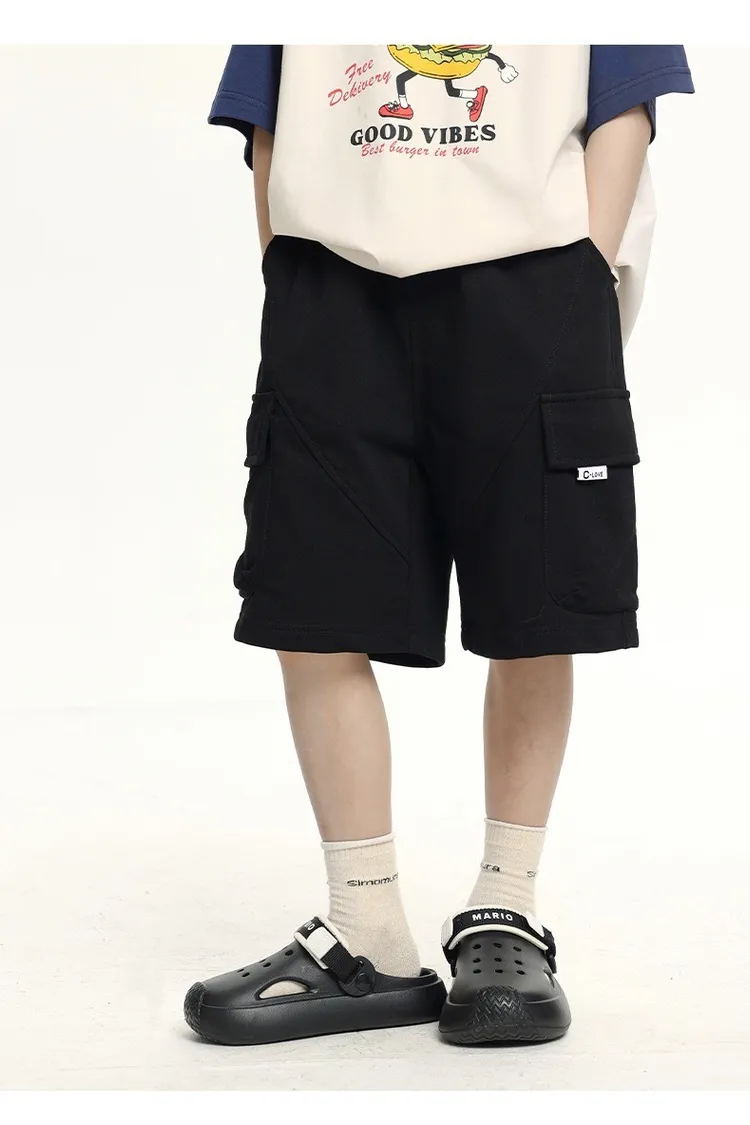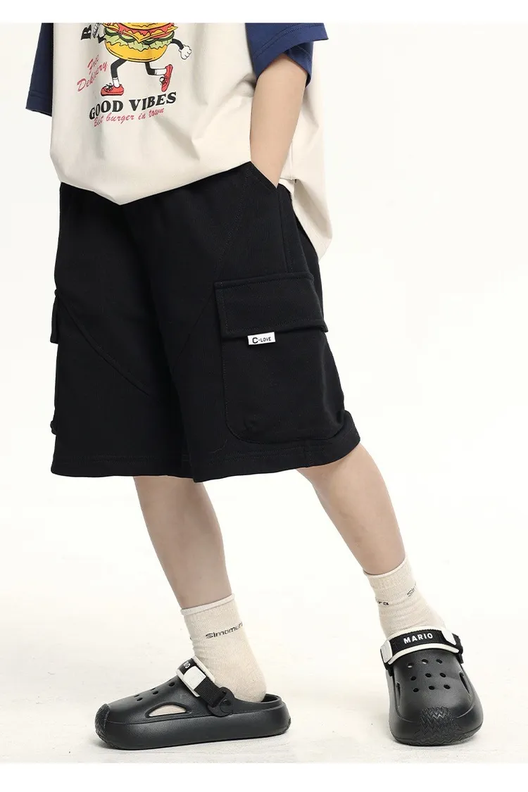 三色大口袋休閒運動五分褲