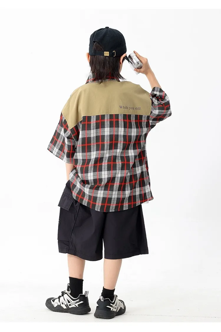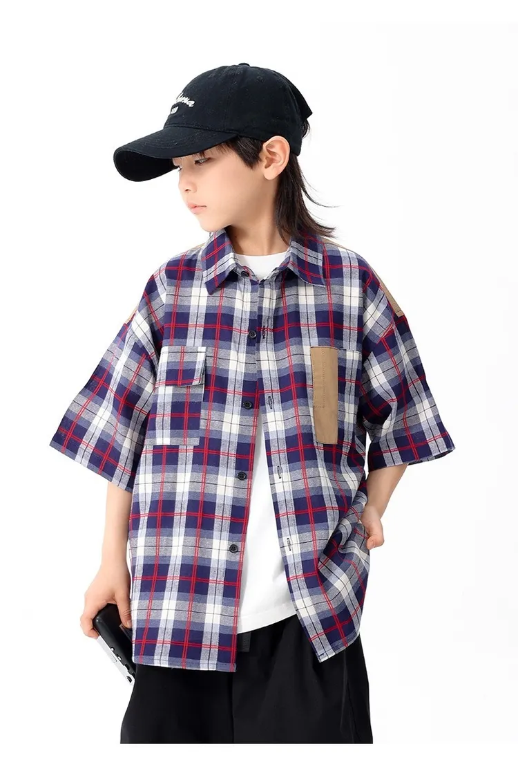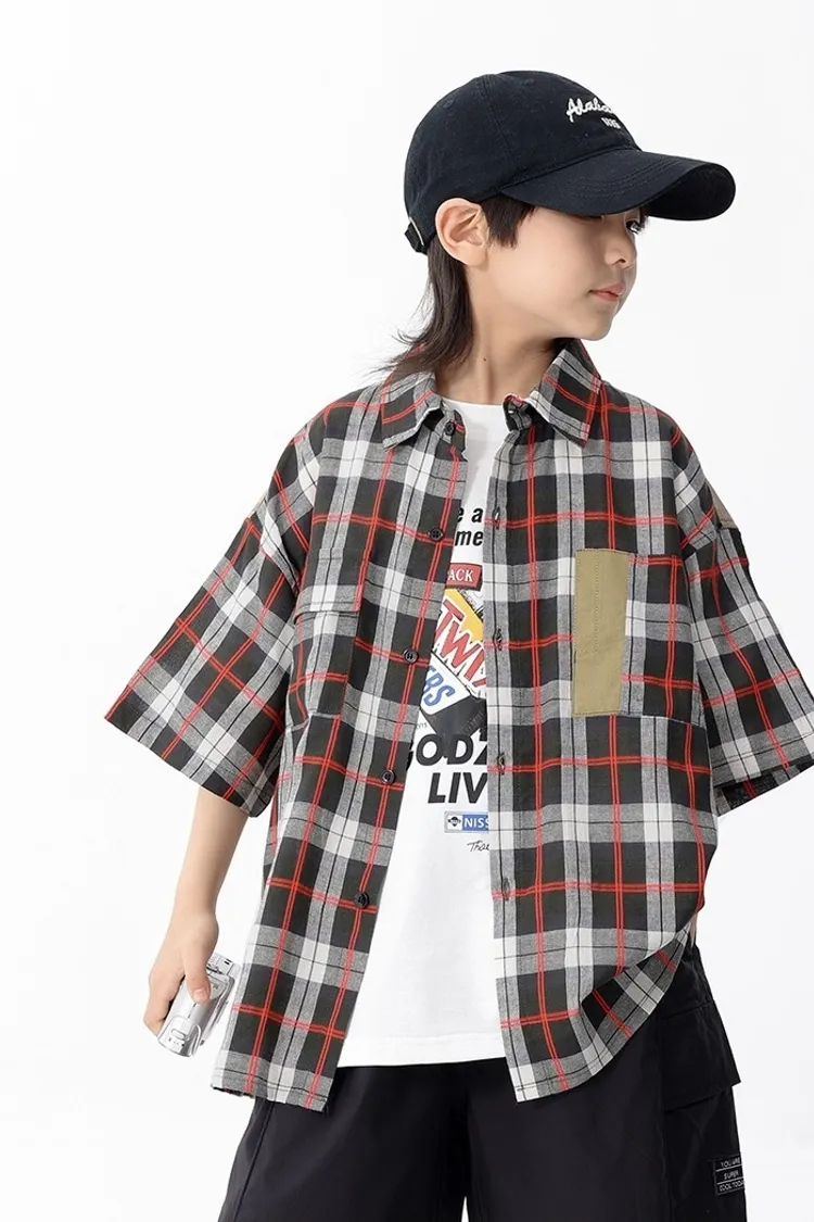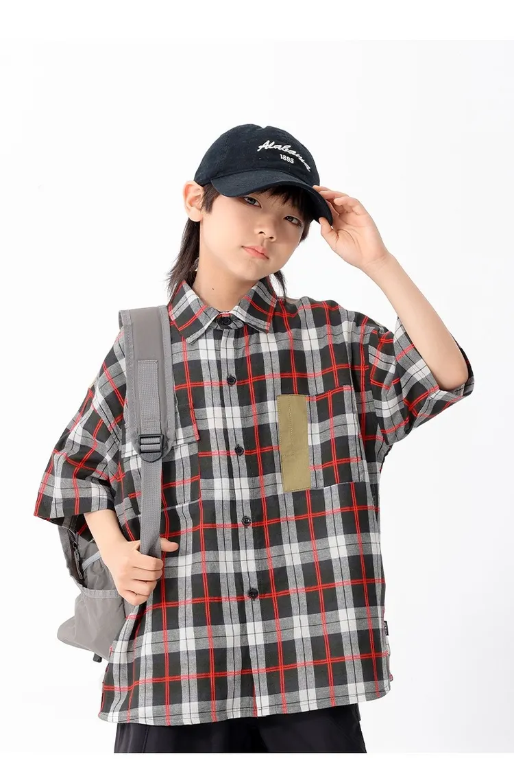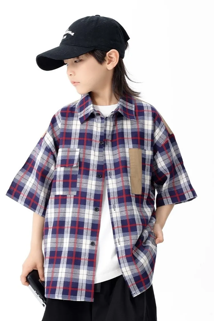 拼色格子口袋襯衫