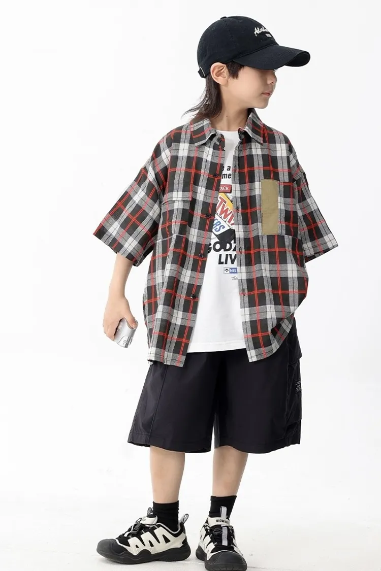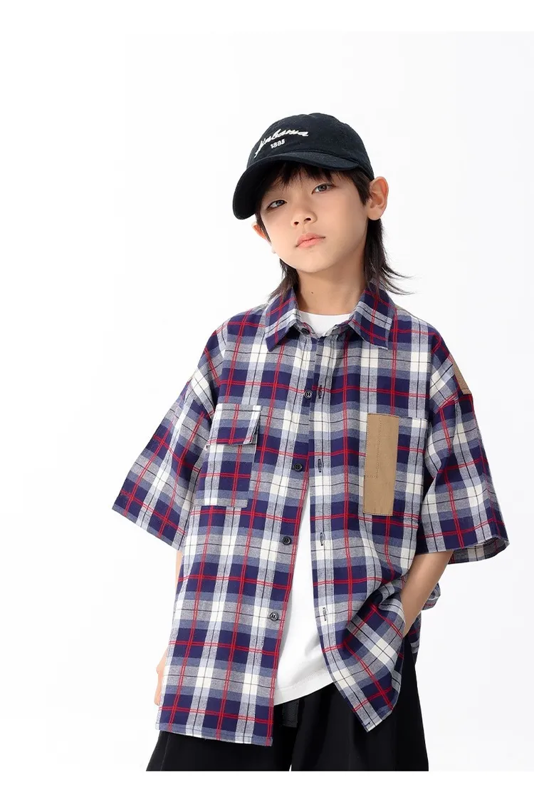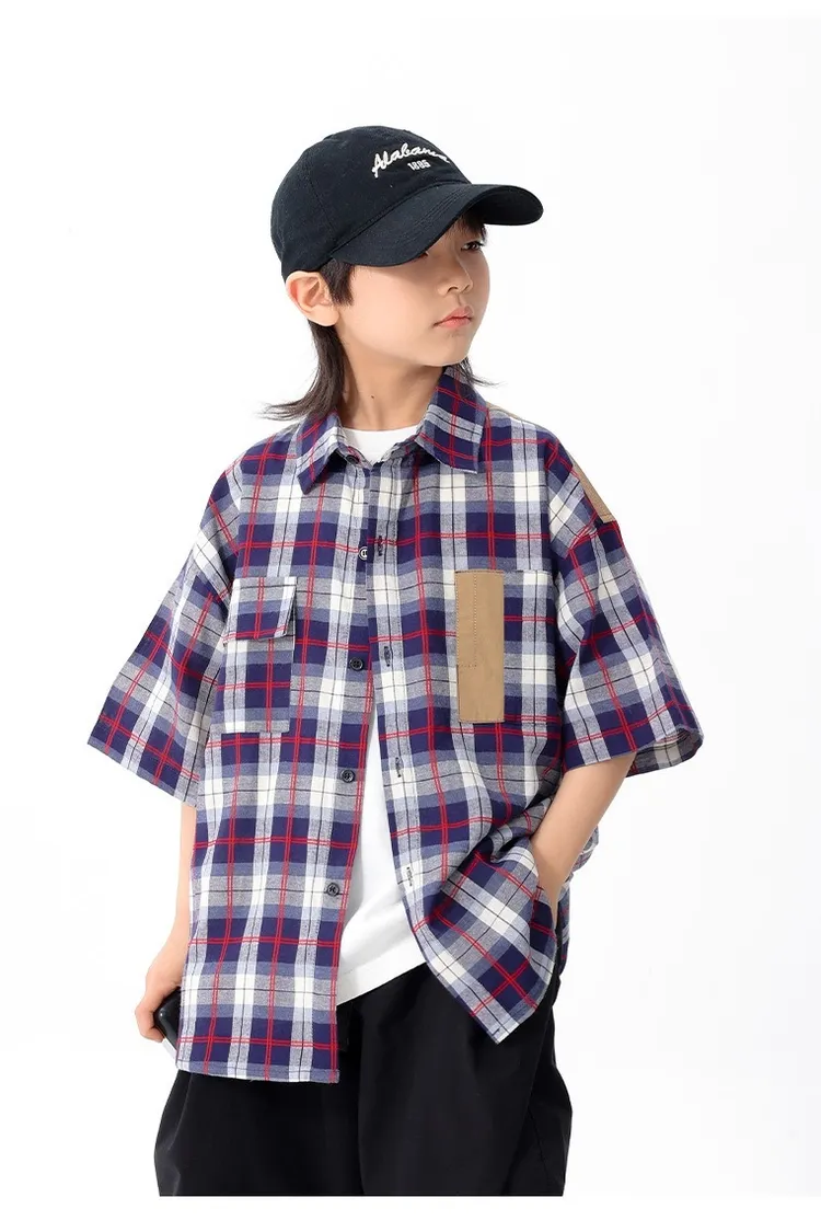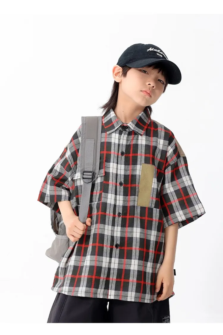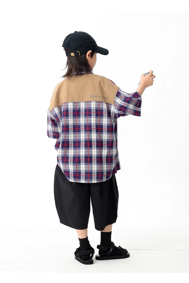 拼色格子口袋襯衫