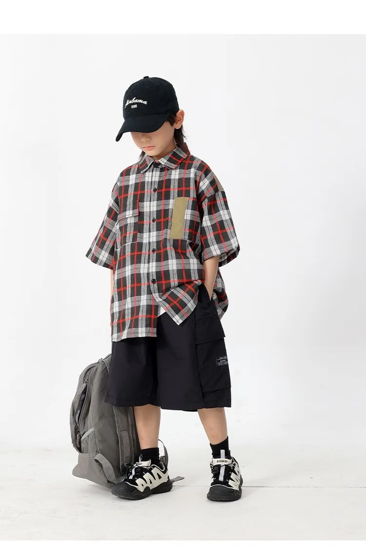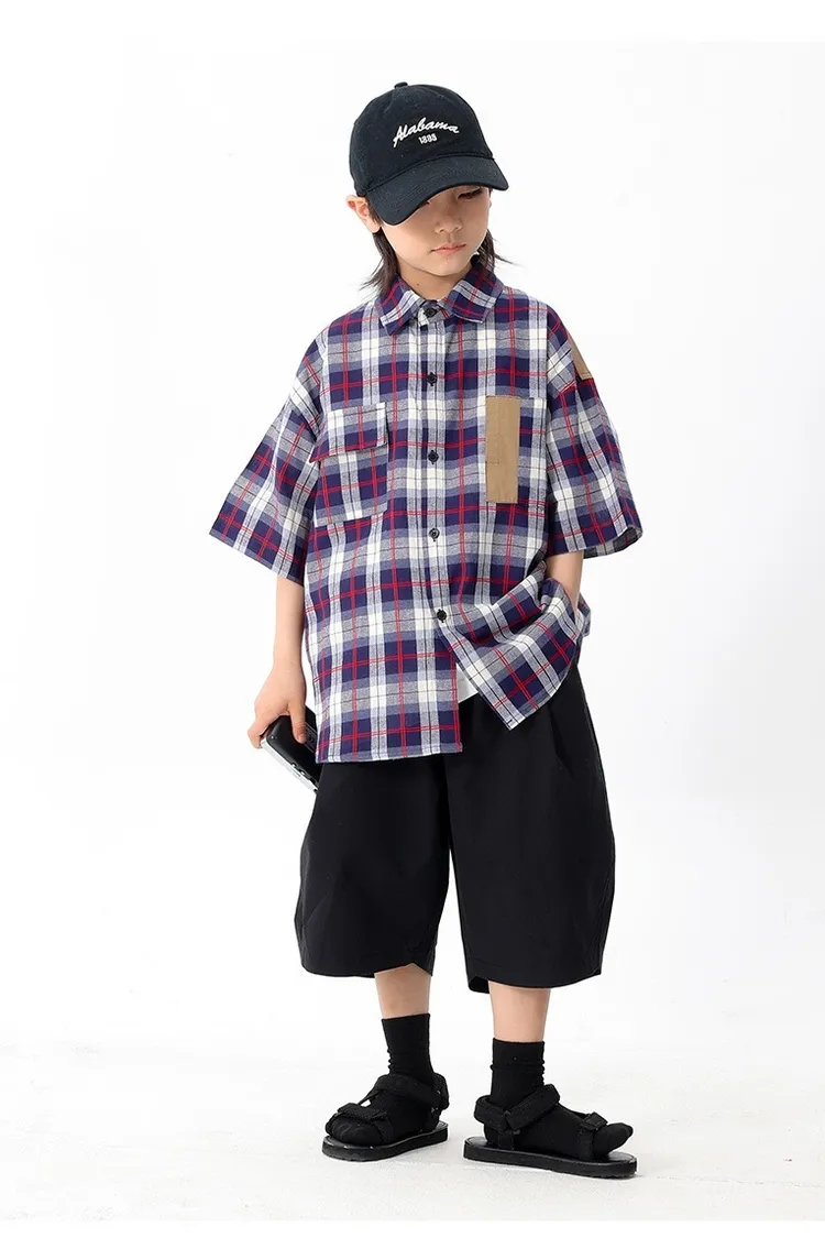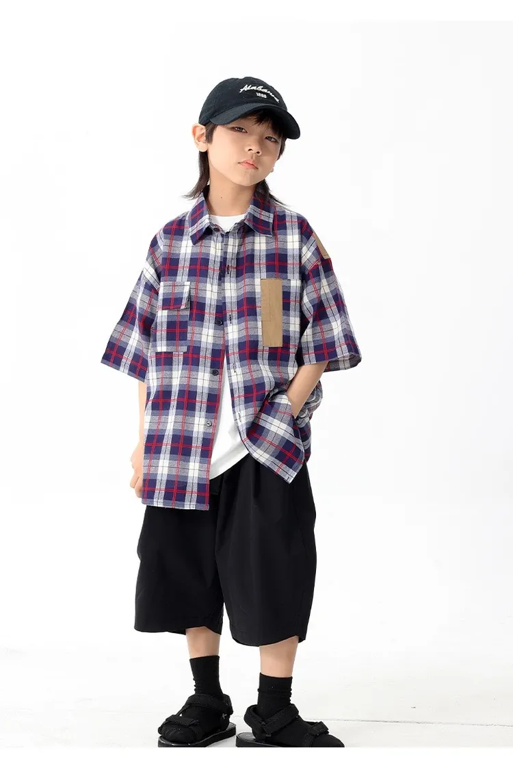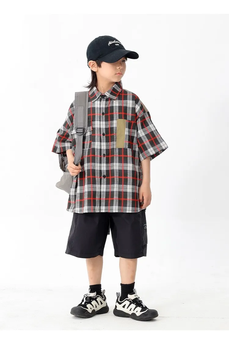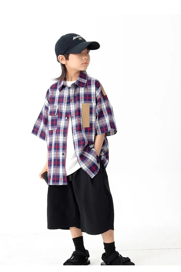 拼色格子口袋襯衫