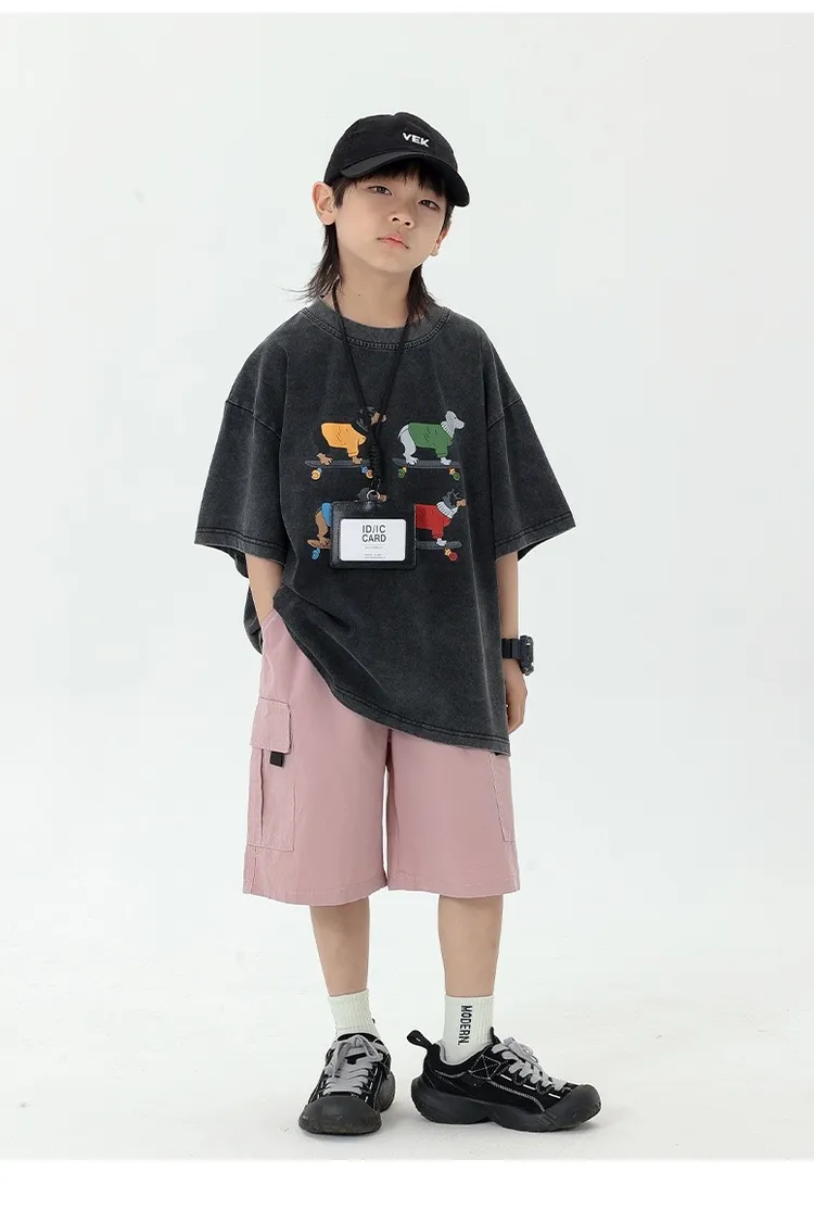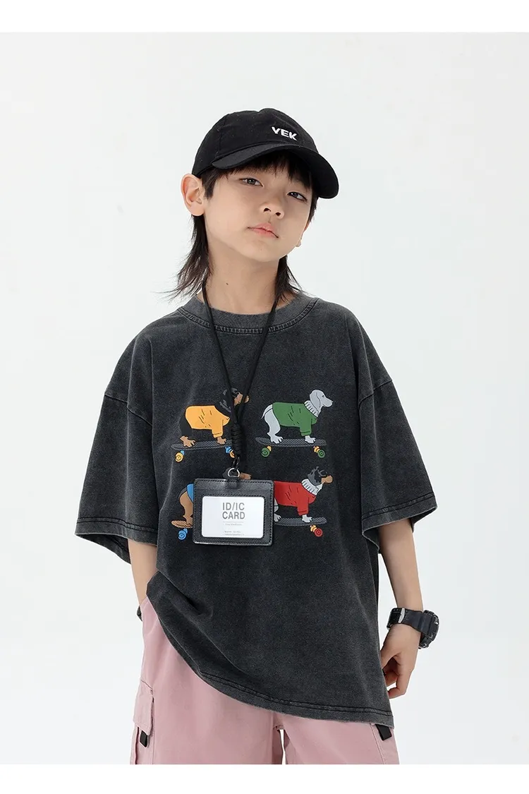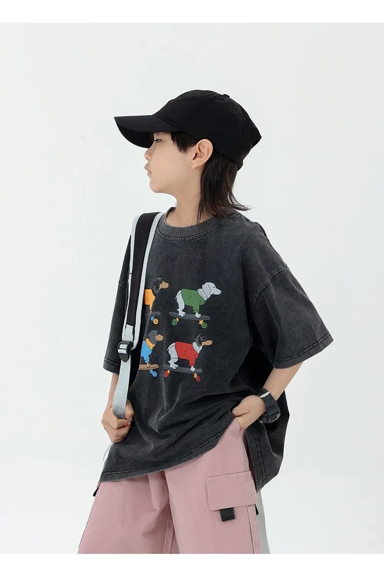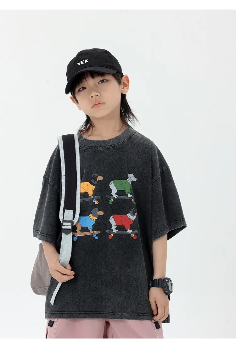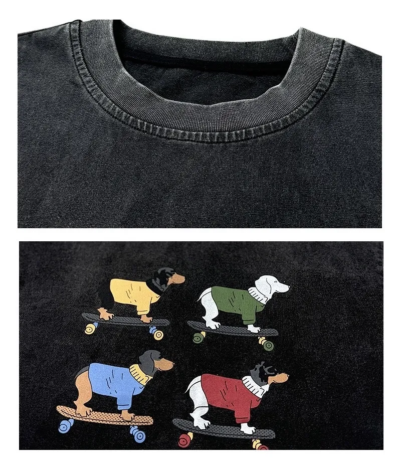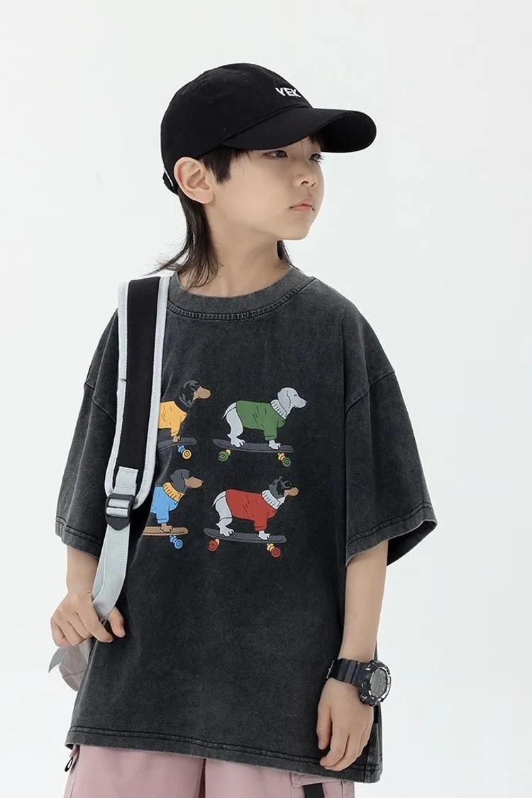小狗砂洗做舊半袖TEE