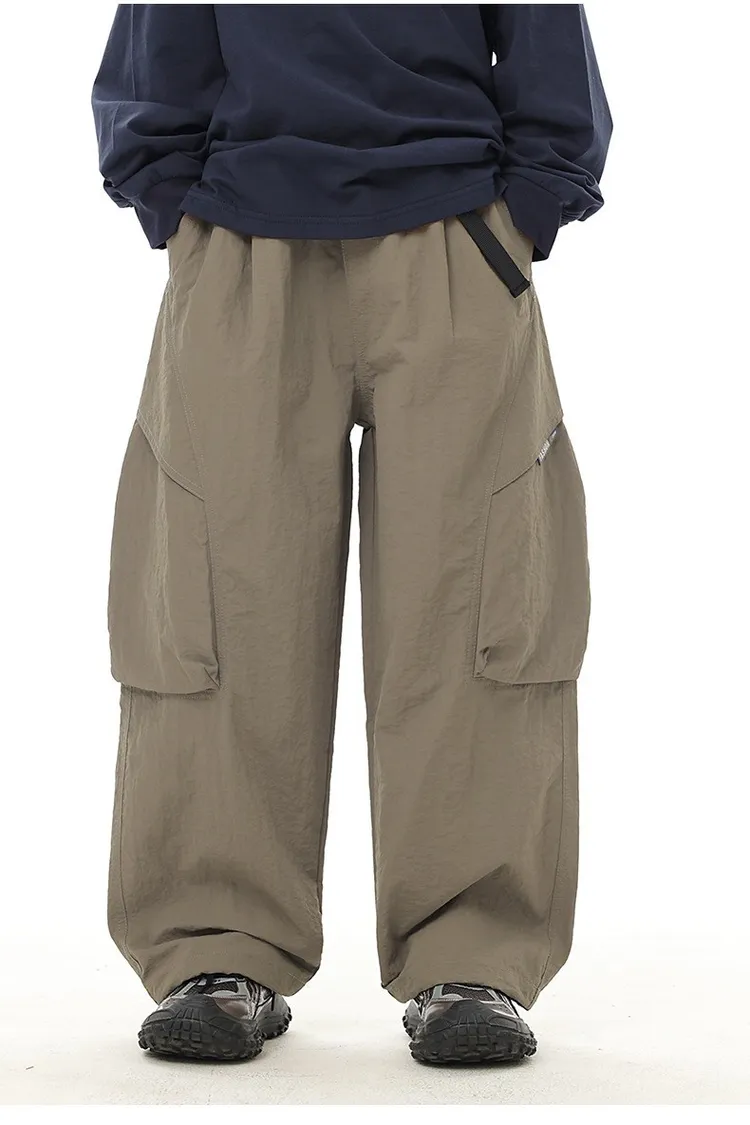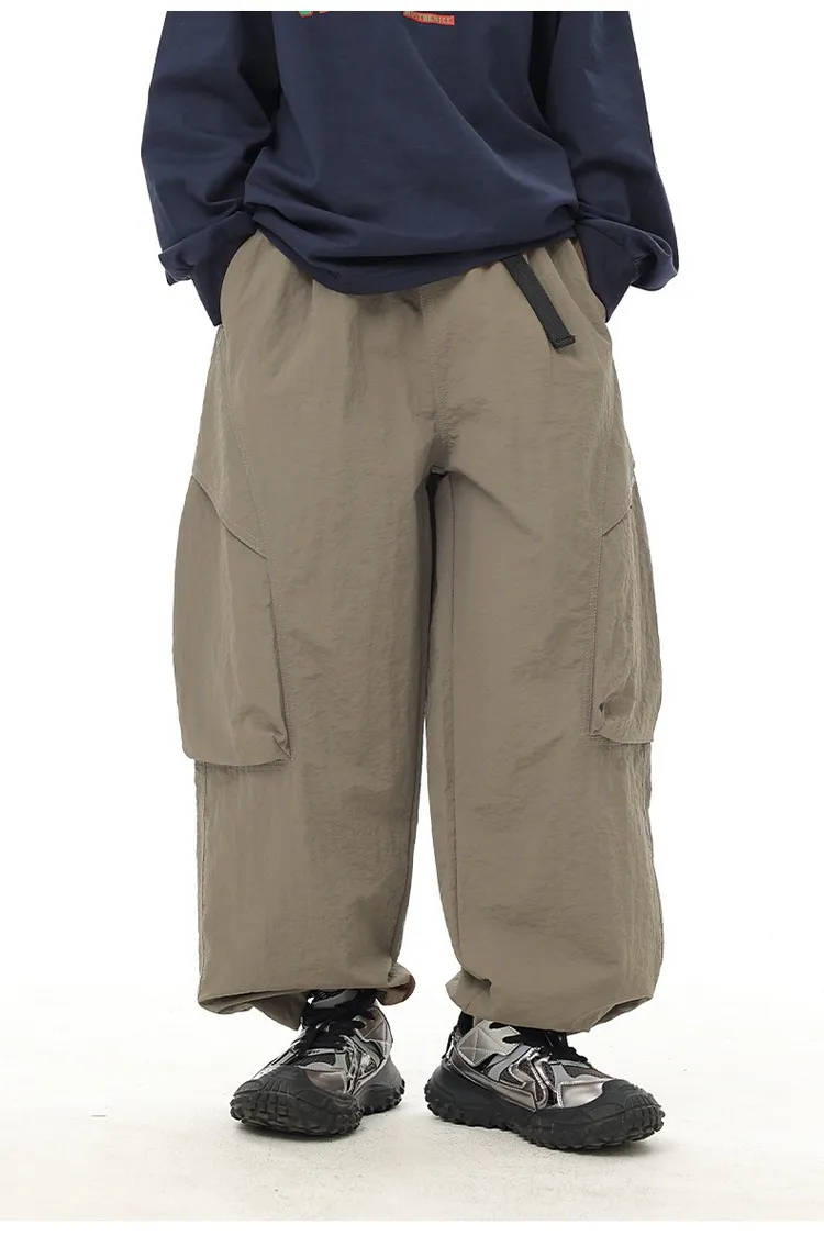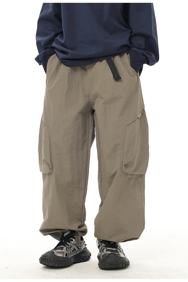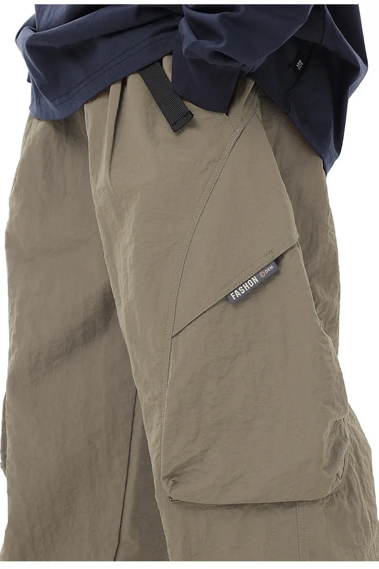織帶簡約口袋水洗棉工裝褲