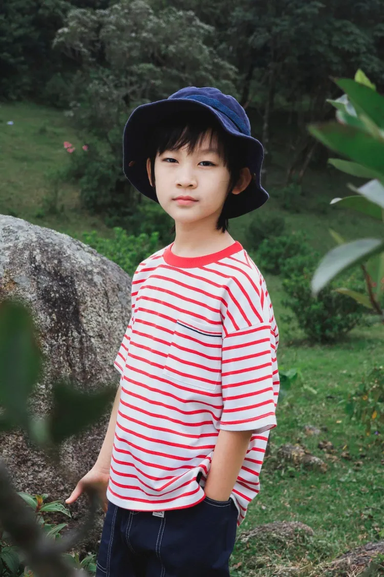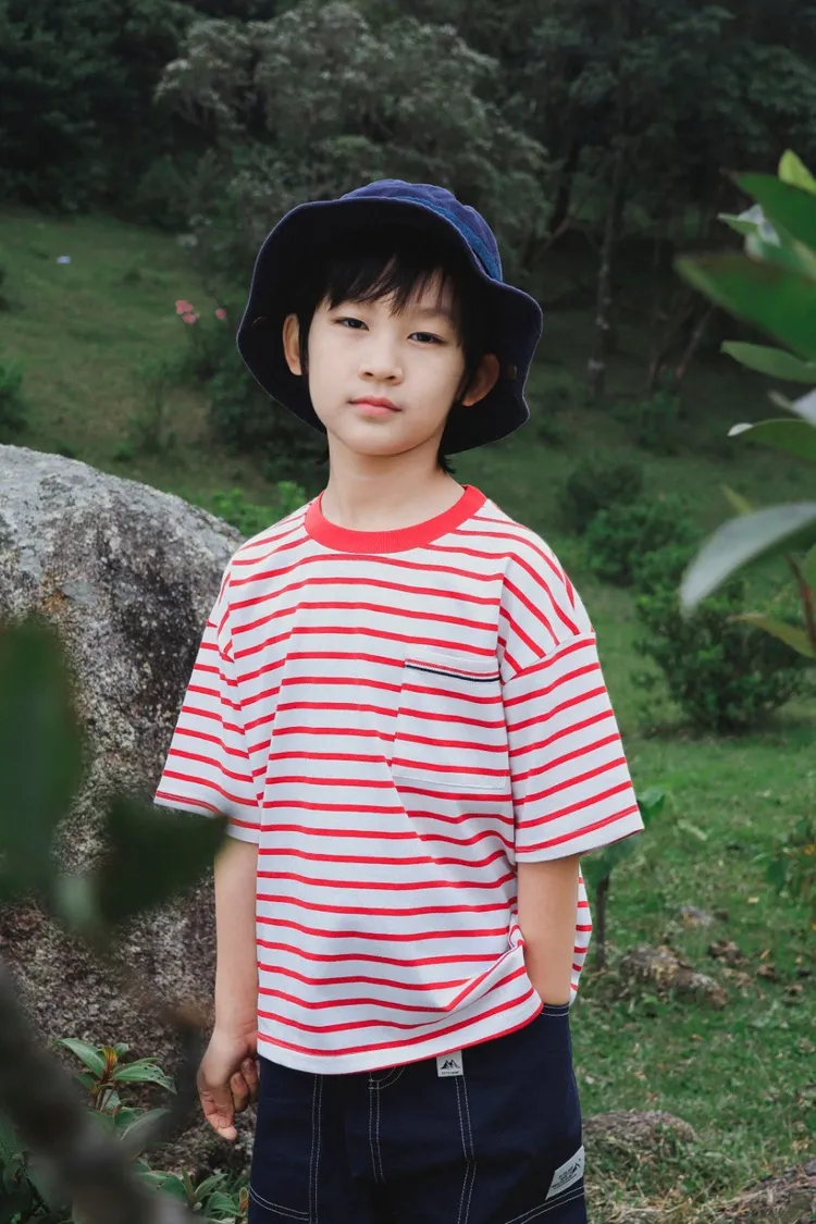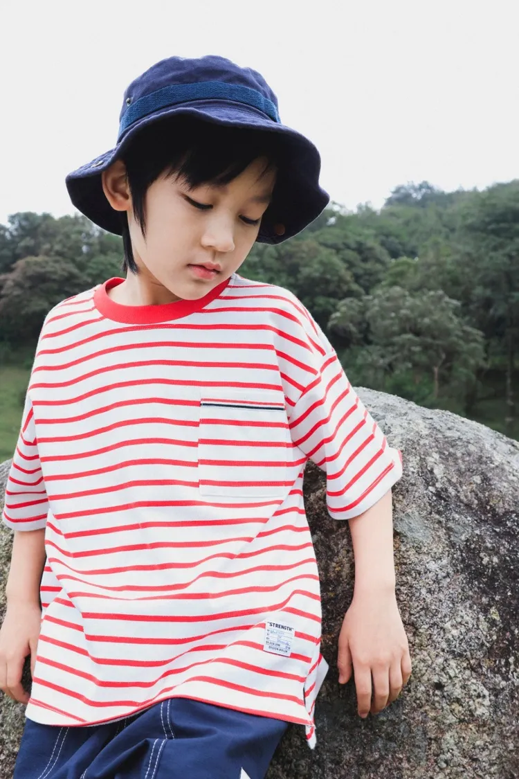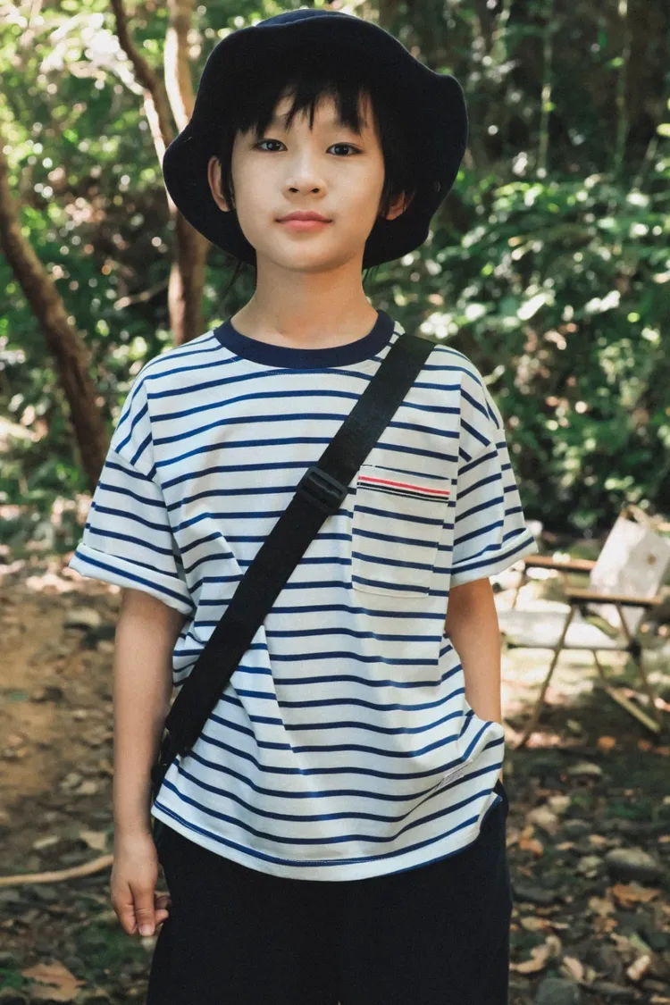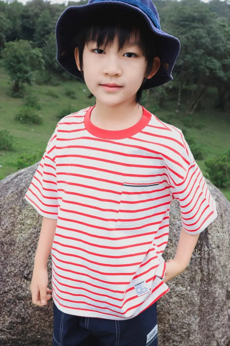 亮眼條紋口袋休閒TEE