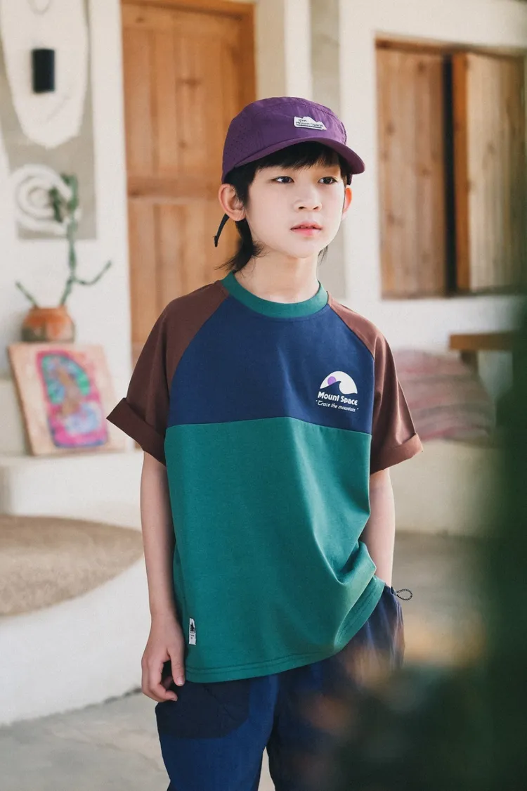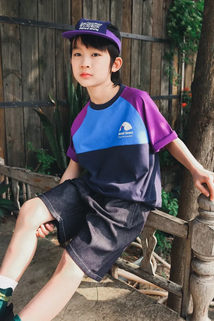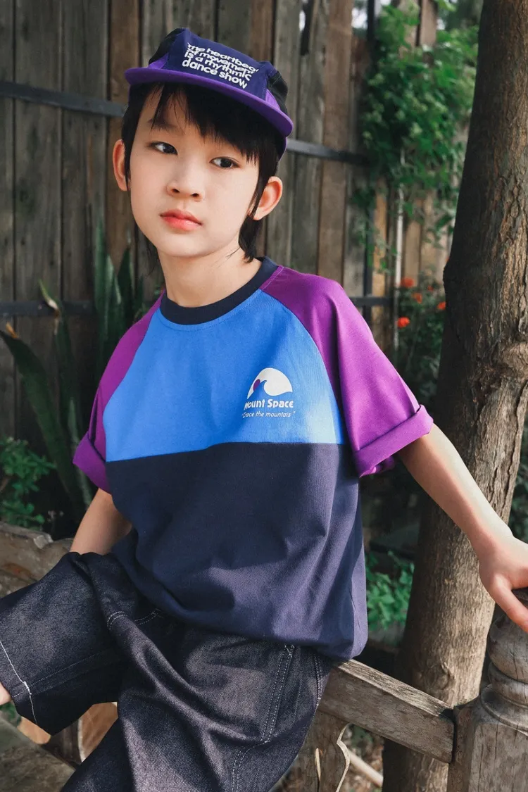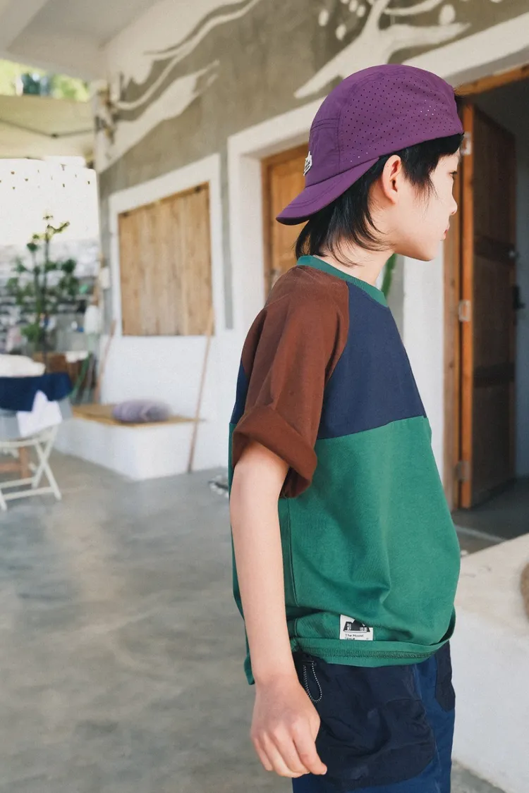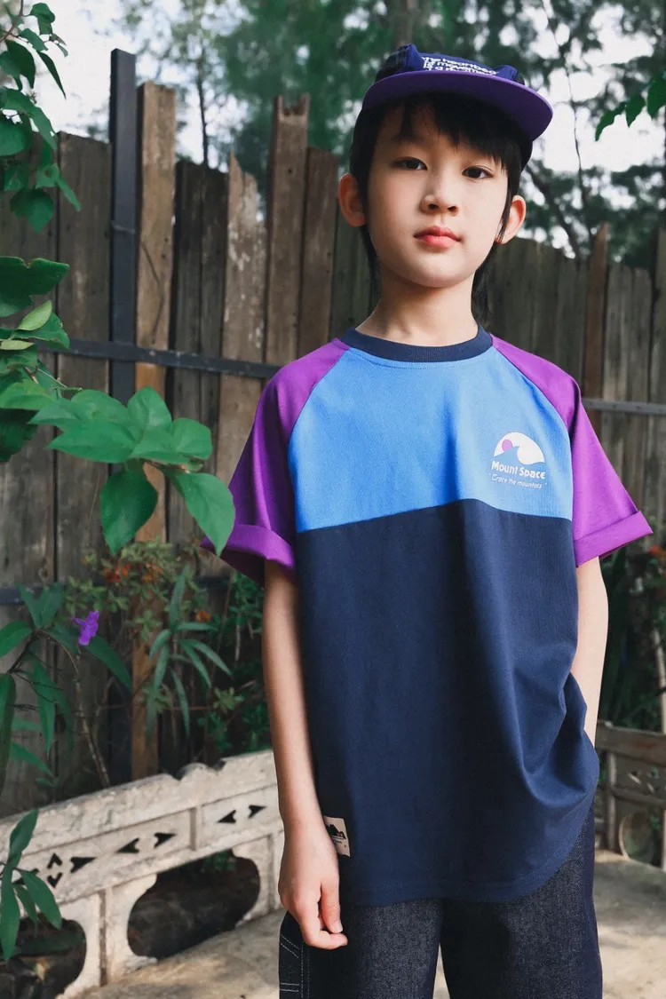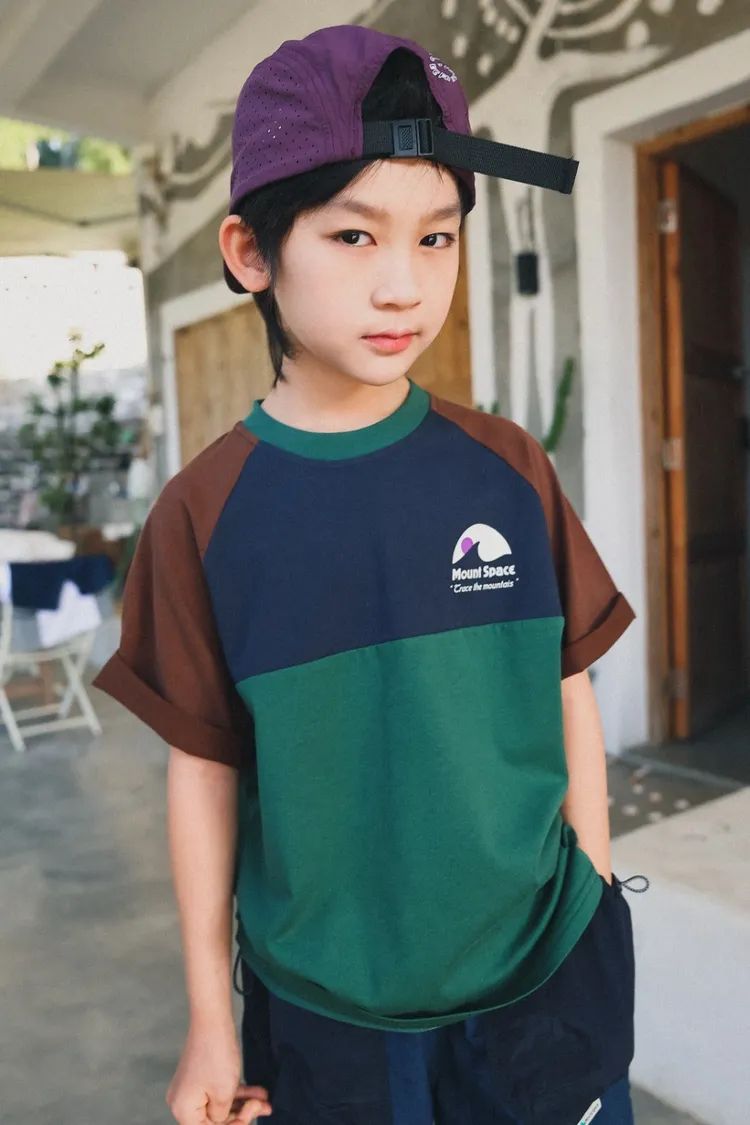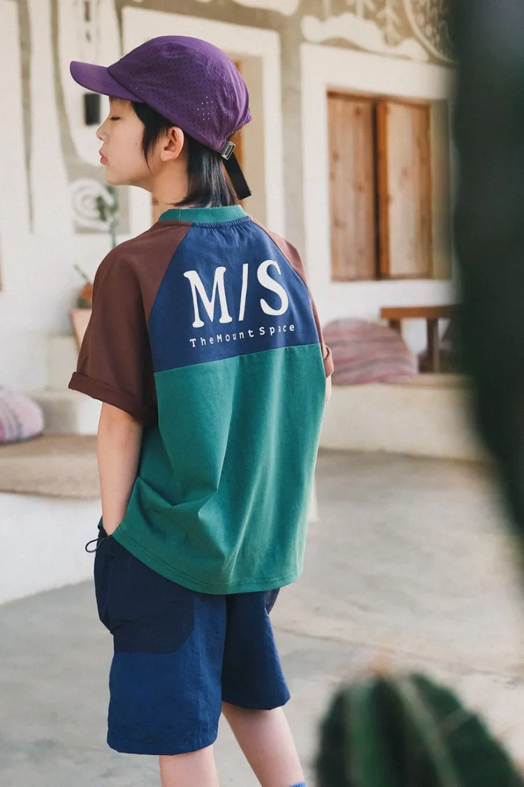 撞色插肩袖全棉字母TEE